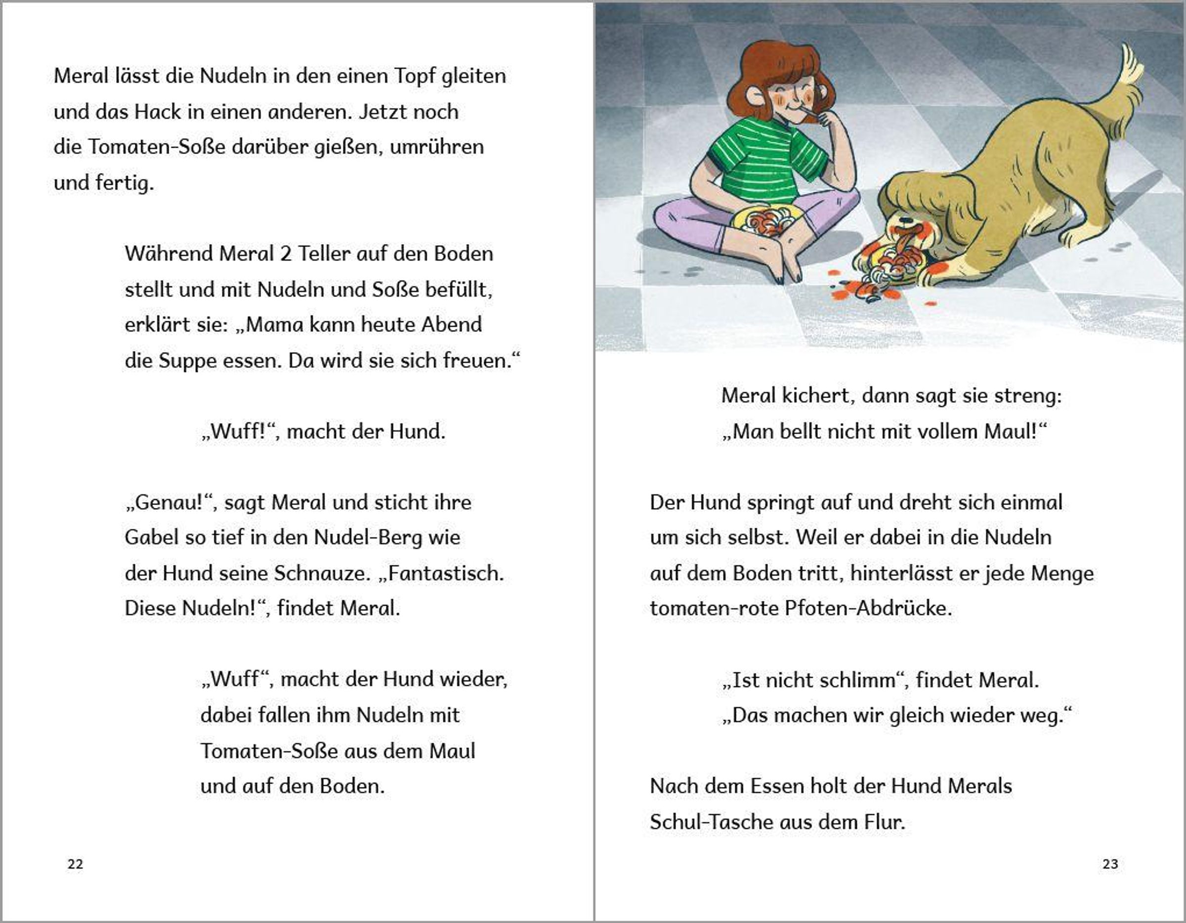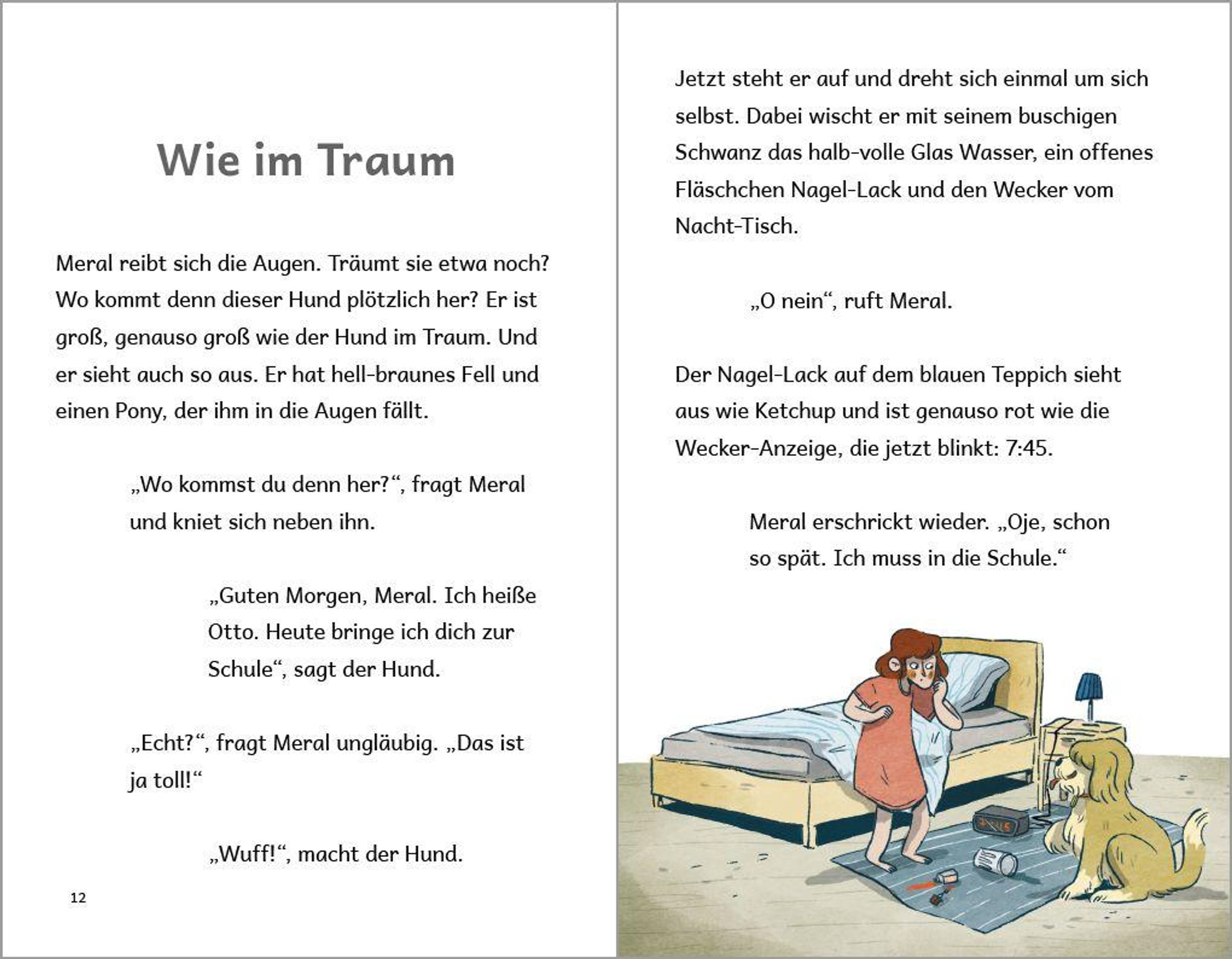 Meral wünscht sich nichts sehnlicher als einen Hund. Eines Morgens wird sie tatsächlich von einem Hund geweckt - und der weicht nicht mehr von ihrer Seite. Wo kommt der so plötzlich her? Meral erlebt die schönsten Hundetage: Im Waldfreibad tauchen sie zusammen nach Ringen, springen vom Dreier und trinken Brause. Ausgerechnet an Merals Geburtstag ist der Hund verschwunden. Doch er hat ein besonderes Geschenk für Meral abgegeben.
