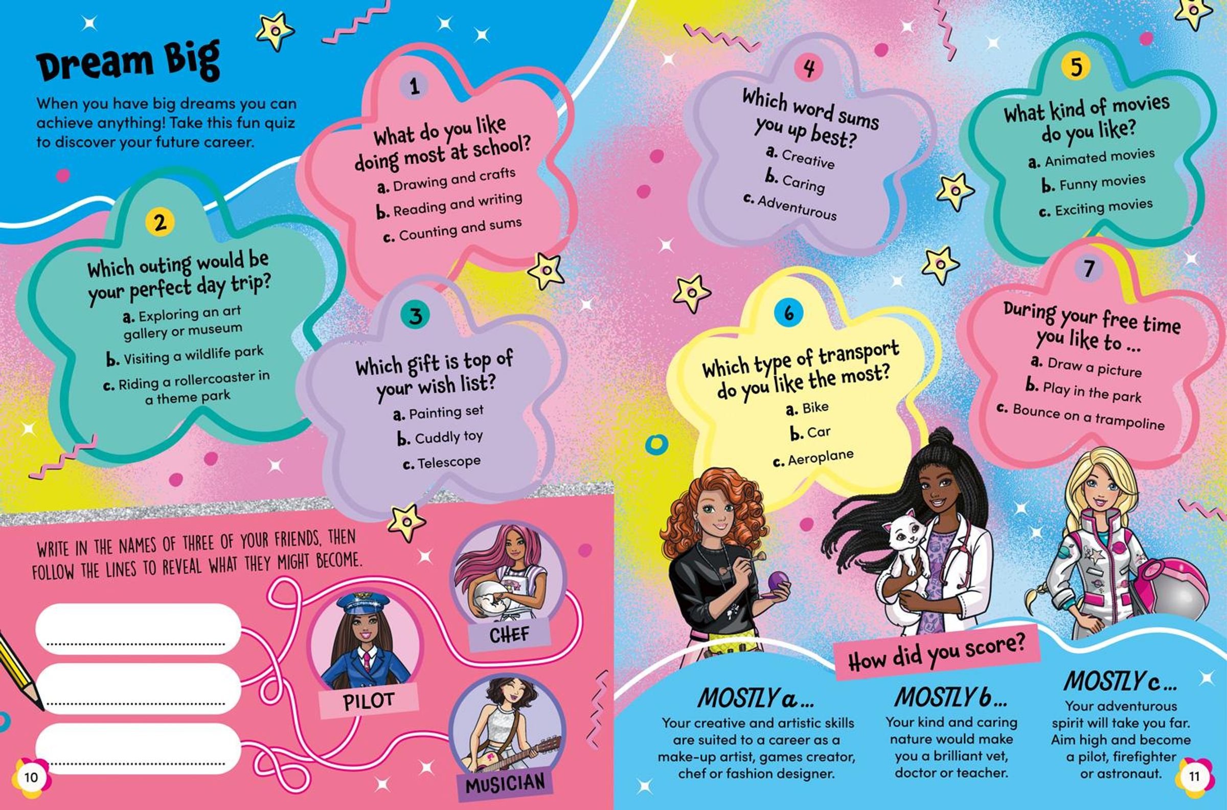 Learn all about the Barbies and their BFFs, tackle lots of fun puzzles, try baking some delicious cookies, craft a colourful dream catcher and read about Barbie's adventures, including stories from the hit Netflix show A Touch of Magic.