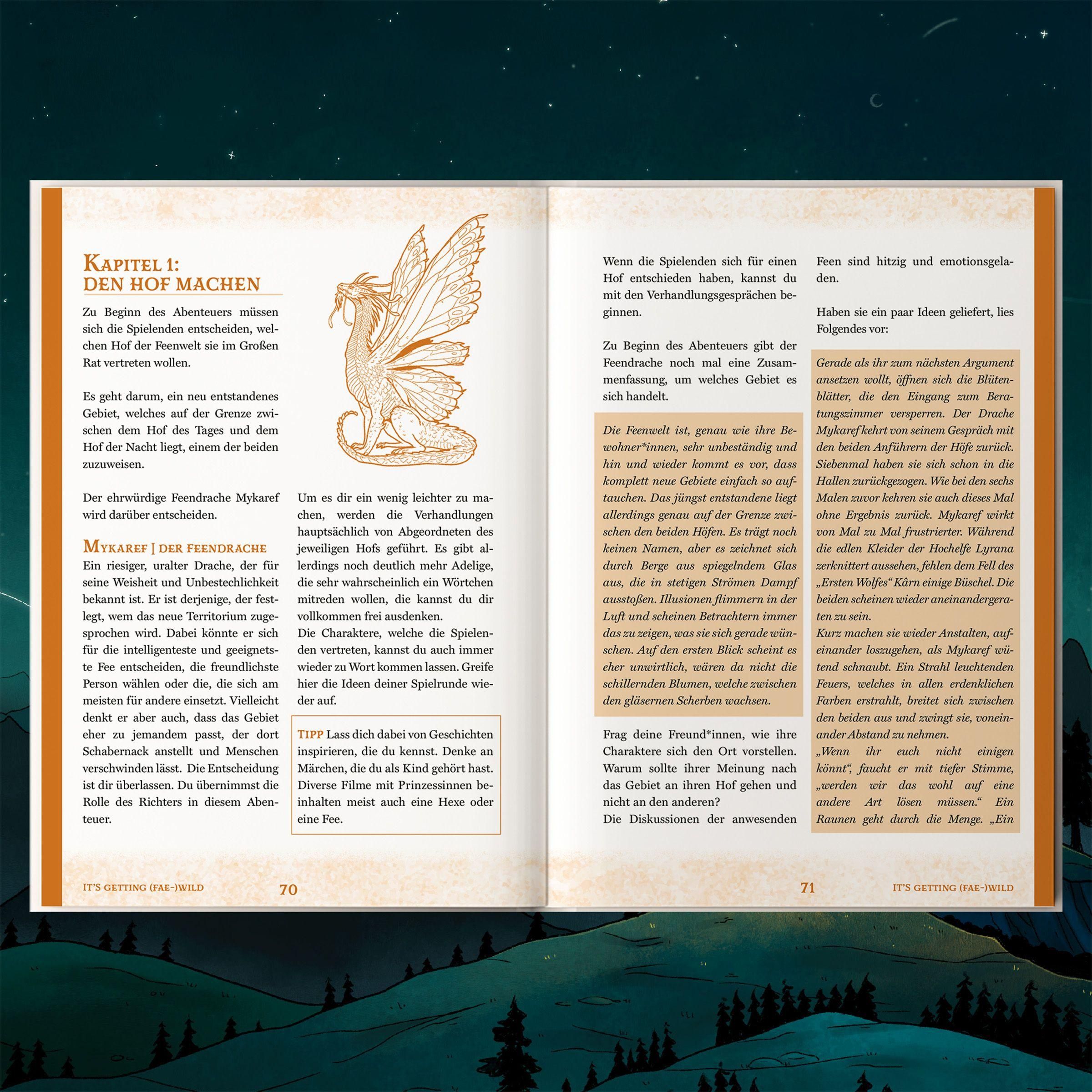 Ein kleines Dorf vor einer uralten Bedrohung retten, auf einem Maskenball eine königliche Intrige aufdecken oder doch lieber den wertvollsten Piratenschatz der sieben Weltmeere bergen? Egal in welche Rolle ihr schlüpfen wollt, 'Dinner & Dice' macht's möglich. Das erste Spielbuch, das kulinarische Krimidinner-Atmosphäre mit simplen Pen & Paper-Mechaniken vereint, verwandelt euren nächsten Spieleabend zu einem Event der Extraklasse - egal ob Pen & Paper-Noviz*in oder Krimidinner-Veteran*in.