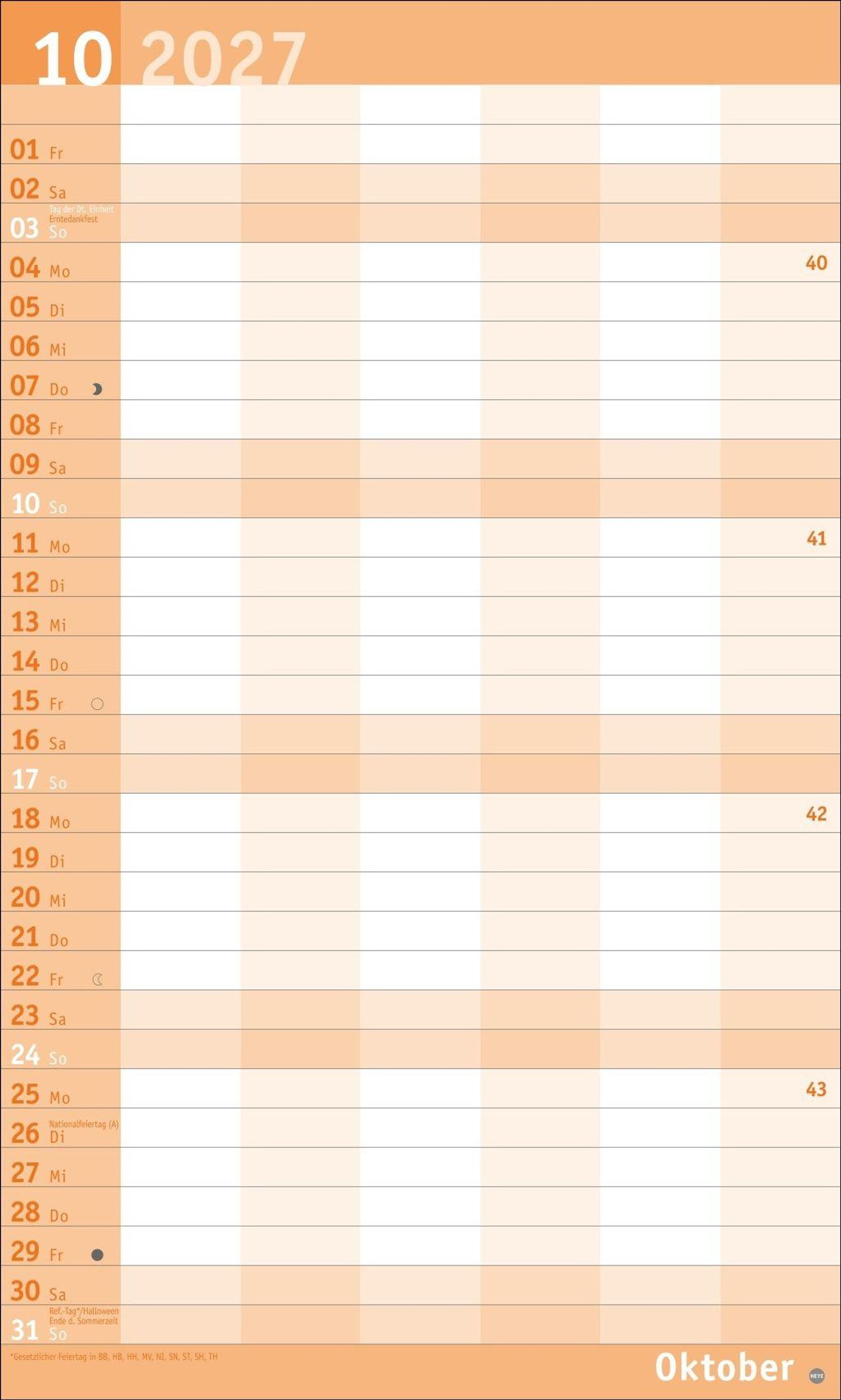 - Familienkalender mit 6 Spalten. Praktischer Familien-Wandkalender mit Schulferien. Extra breiter Terminkalender. 27 x 45 cm.