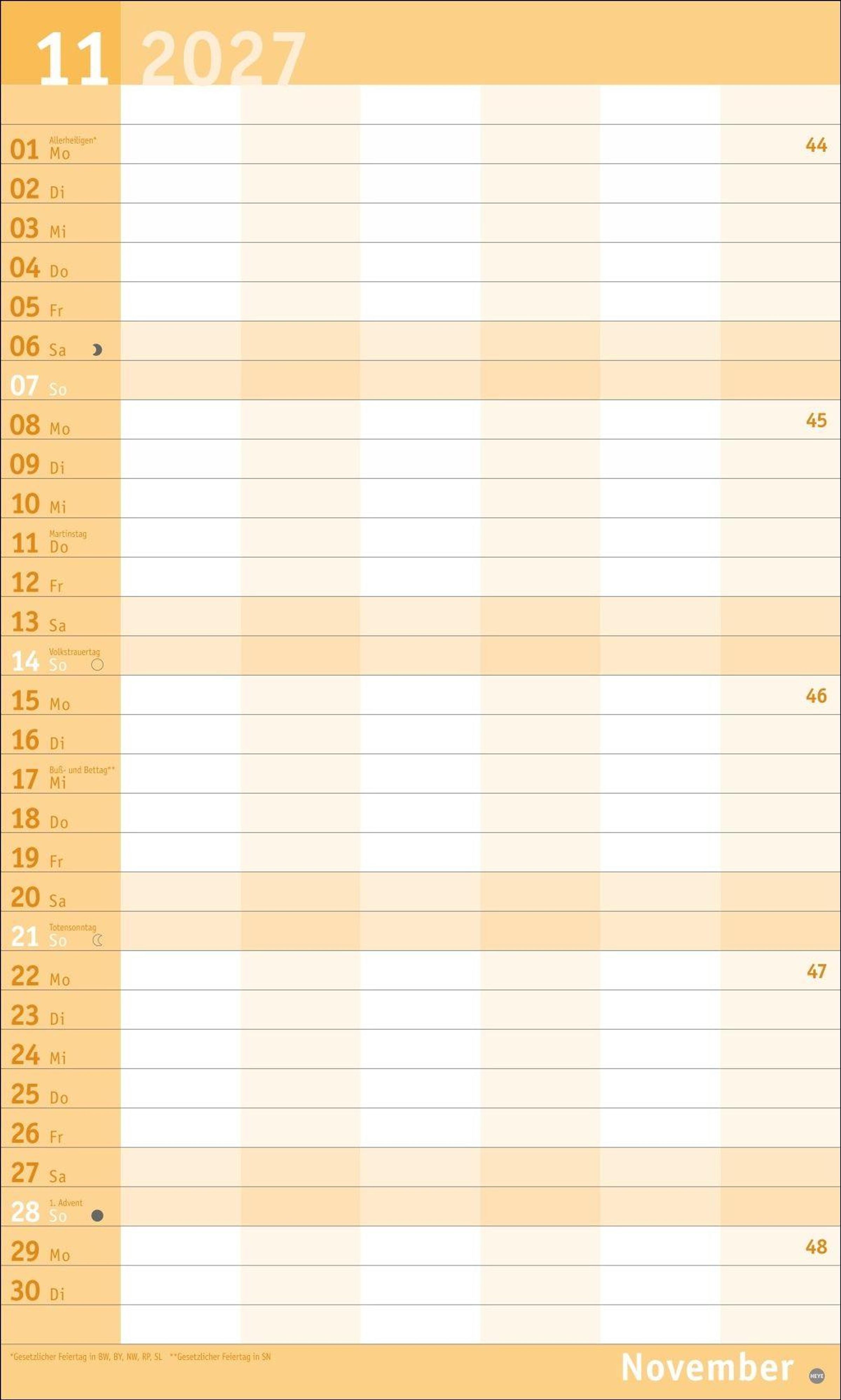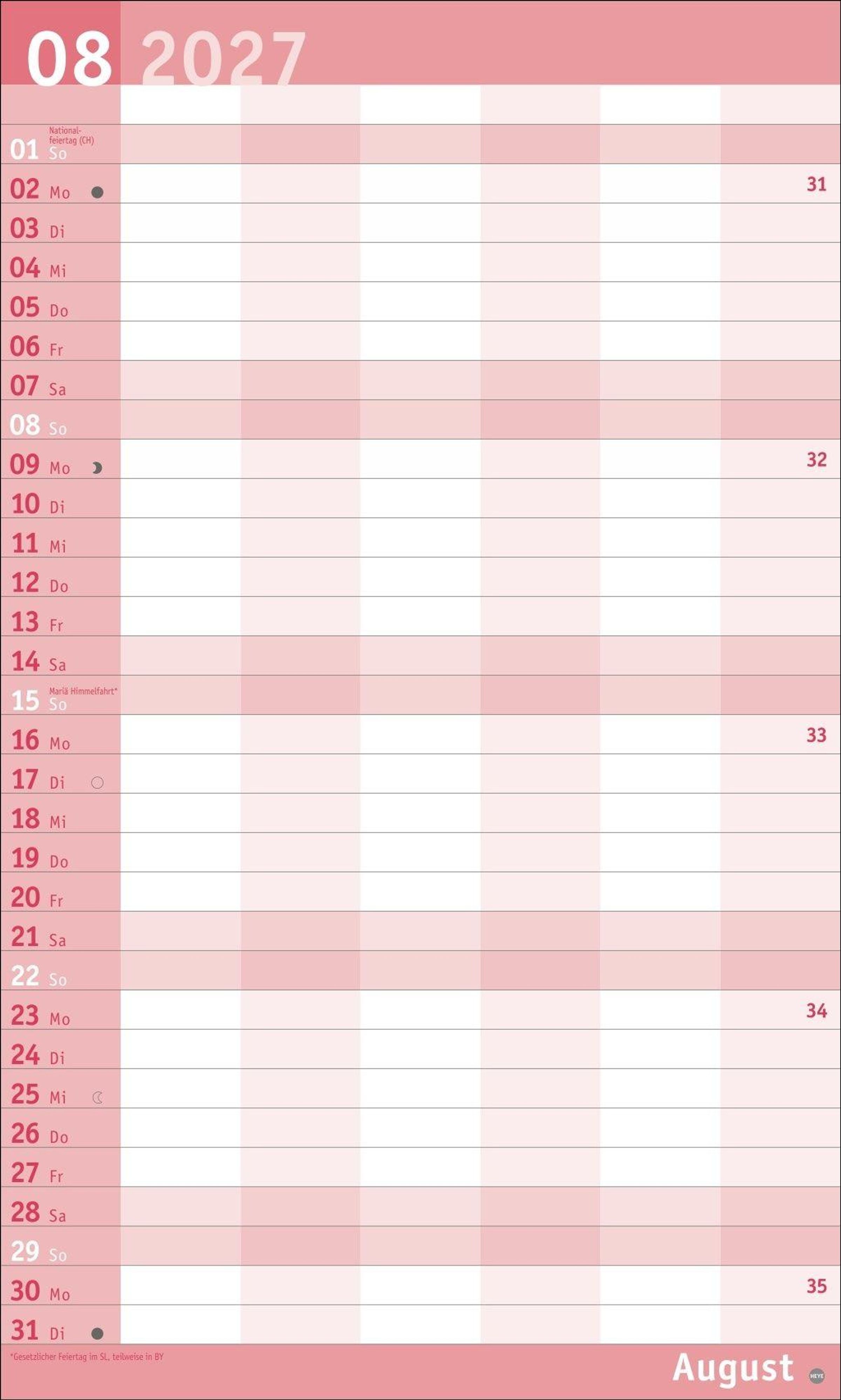 Unser erfolgreiches Konzept für Familienplaner: 6 Spalten mit ausreichend Platz für die ganze Familie im übersichtlichen 27 x 45 cm-Format