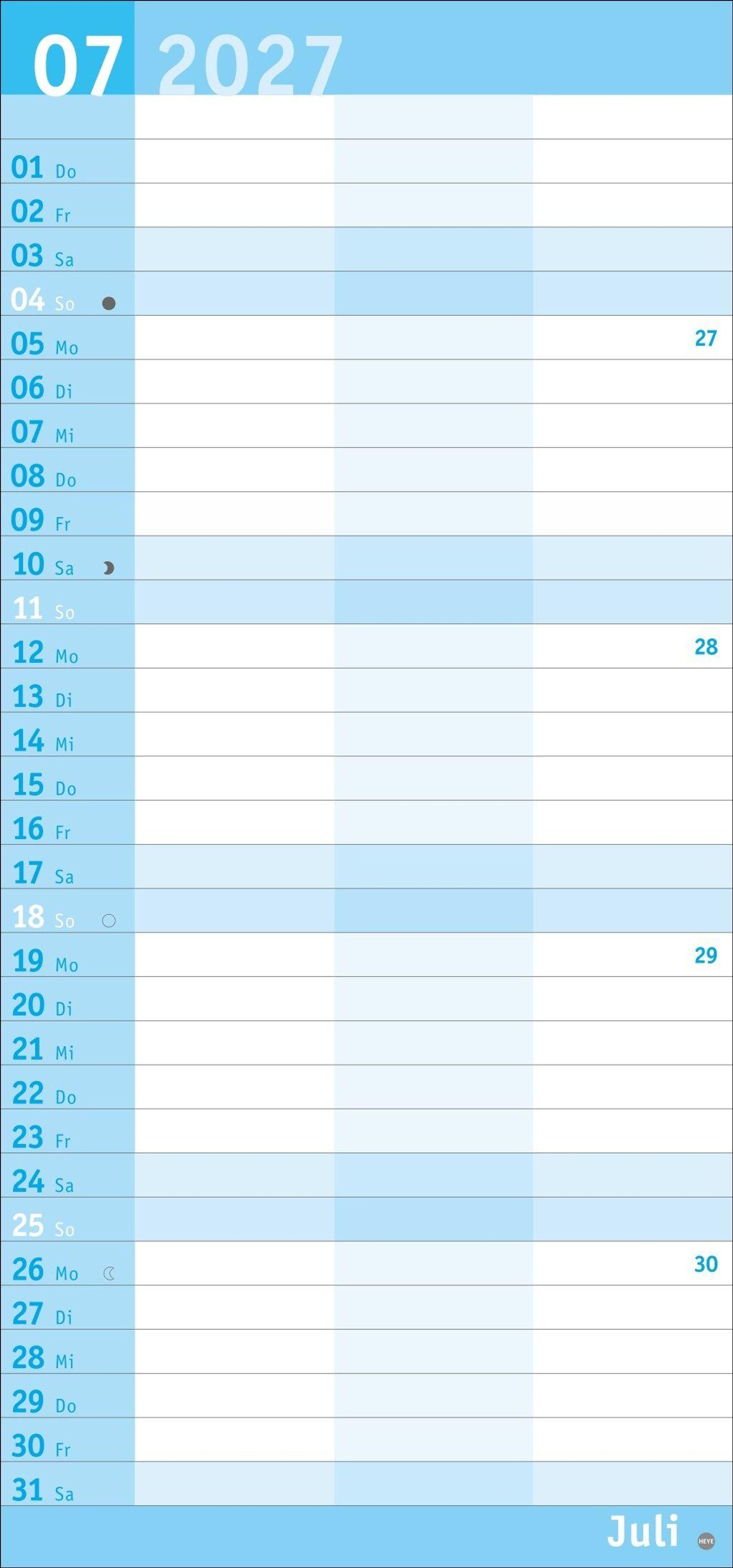 - Praktischer Wandplaner für 2 mit 3 Spalten. Wandkalender mit Schulferien und 3-Monats-Ausblick aufs Folgejahr. Terminkalender 2027 zum Eintragen.