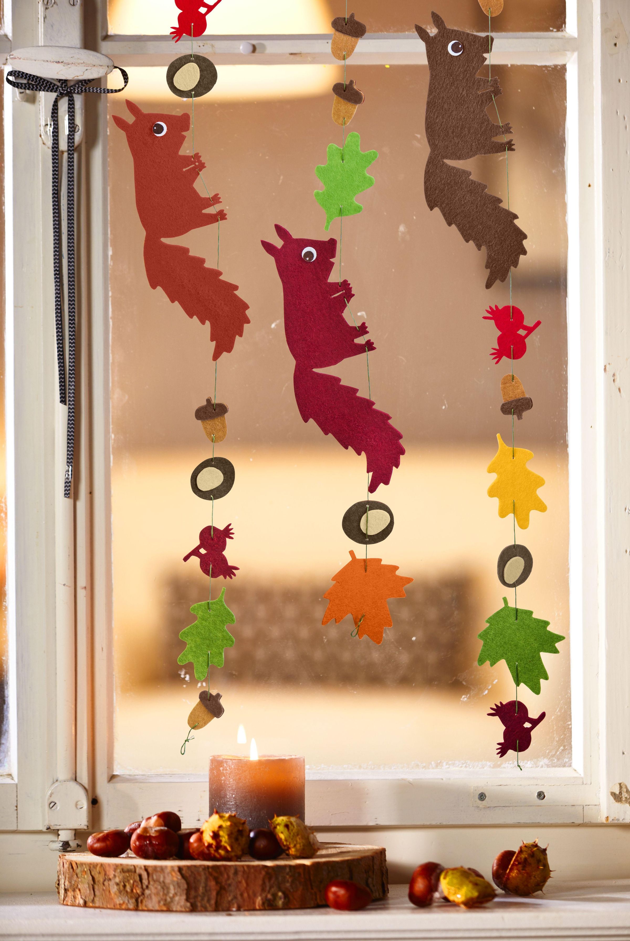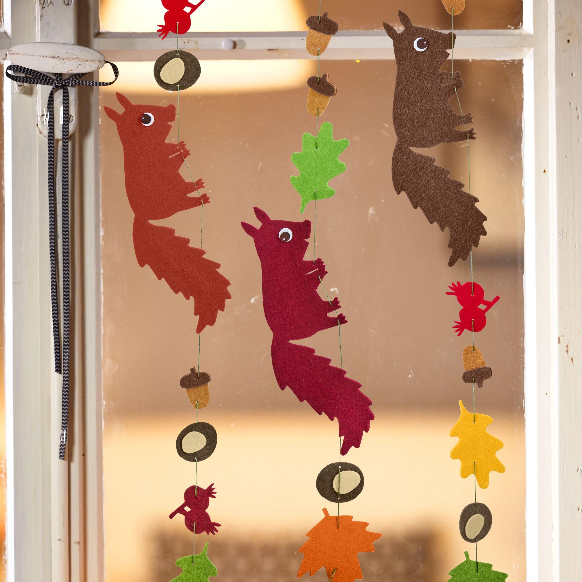 Herbstlicher Bastelspaß für kleine Hände! Mit diesem Set lassen sich niedliche Eichhörnchen auffädeln und drei herbstliche Filzgirlanden gestalten. Die stabilen Filzteile sind leicht zu greifen und ideal, um das Fädeln zu lernen. Perfekt für erste Bastelerfolge! Die fertigen Girlanden sind eine süße Deko zum Aufhängen an Fenster, Tür oder Wand - eine kreative Herbstidee fürs Kinderzimmer.