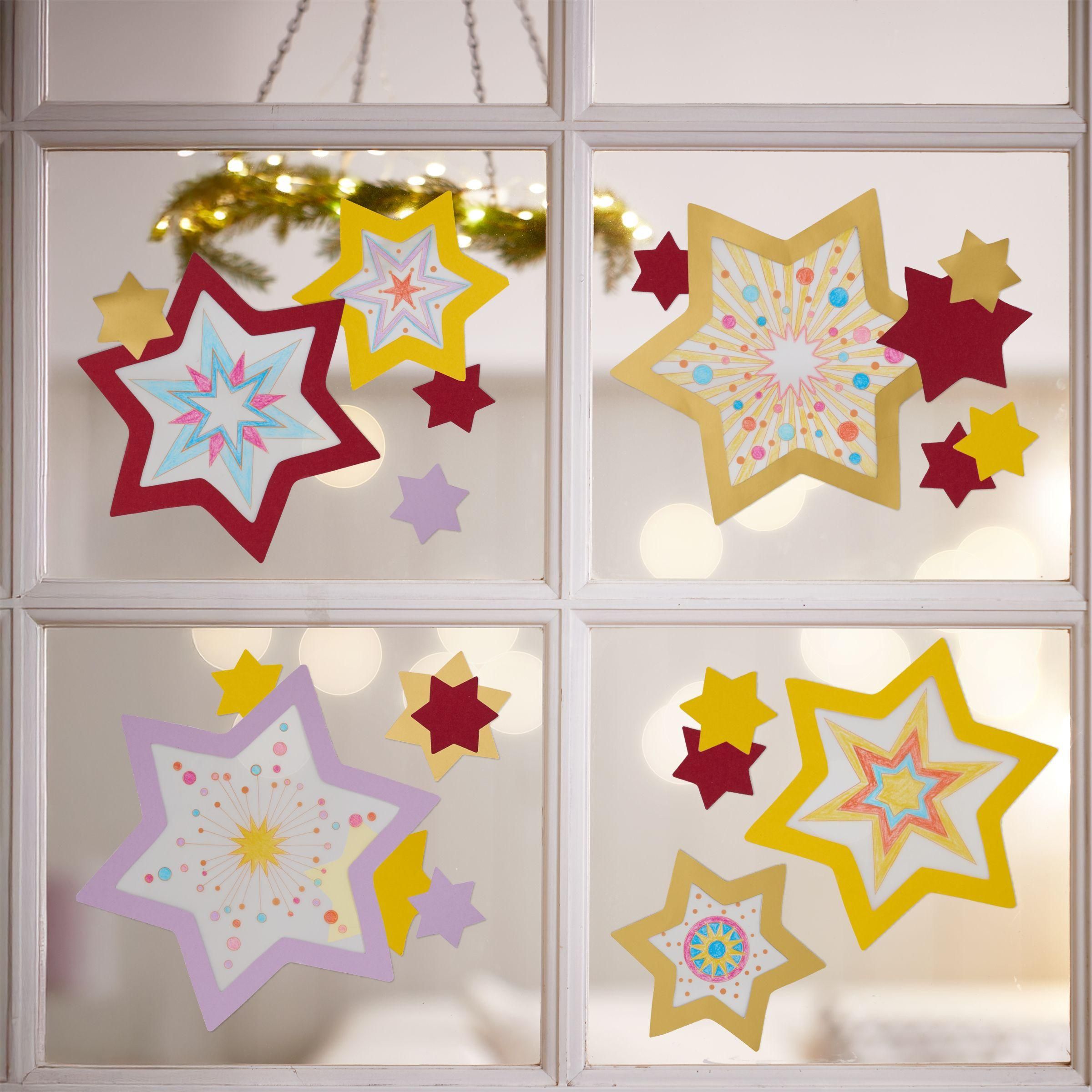 Lass es Sterne regnen! Mit diesem Bastelset entsteht ein traumhaftes Fensterbild voller funkelnder Sterne - ideal als schöne Deko für Fenster oder Wände. Die vorgestanzten Stern-Motive werden einfach mit Transparentpapier zusammengeklebt und können nach Belieben bemalt und verziert werden. So entsteht im Handumdrehen eine zauberhafte Fenster- oder Wanddekoration, die besonders in der Advents- und Weihnachtszeit für stimmungsvolle Akzente sorgt.