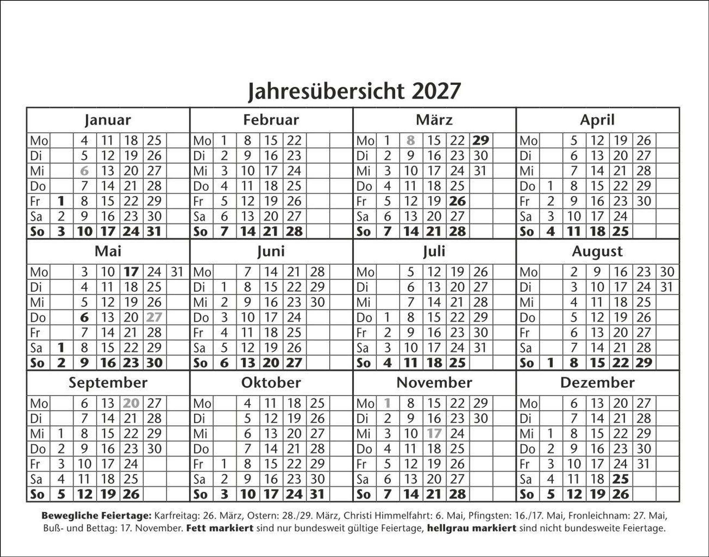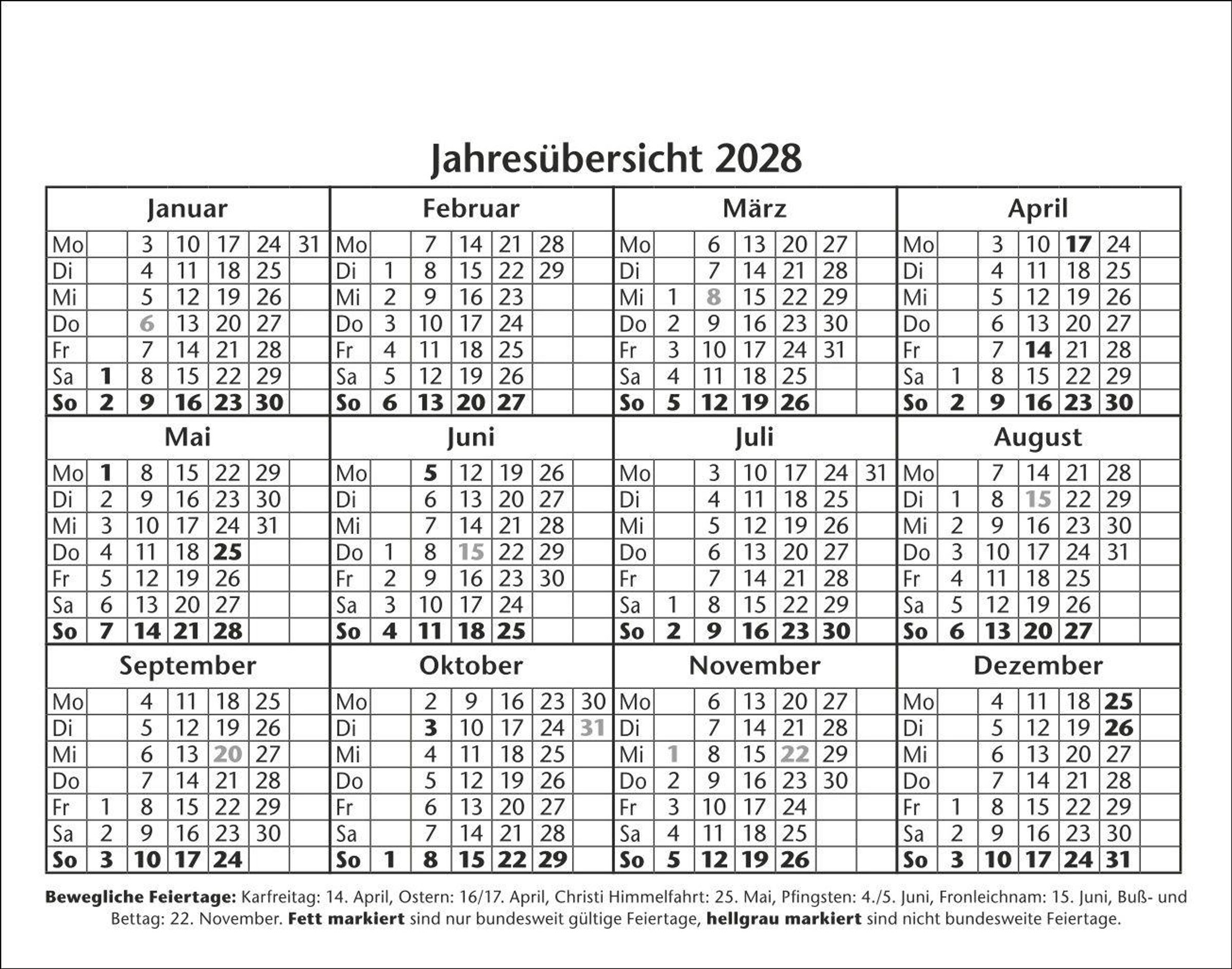 Jeder Wochentag ein Kalenderblatt, Samstag / Sonntag auf einem Blatt.