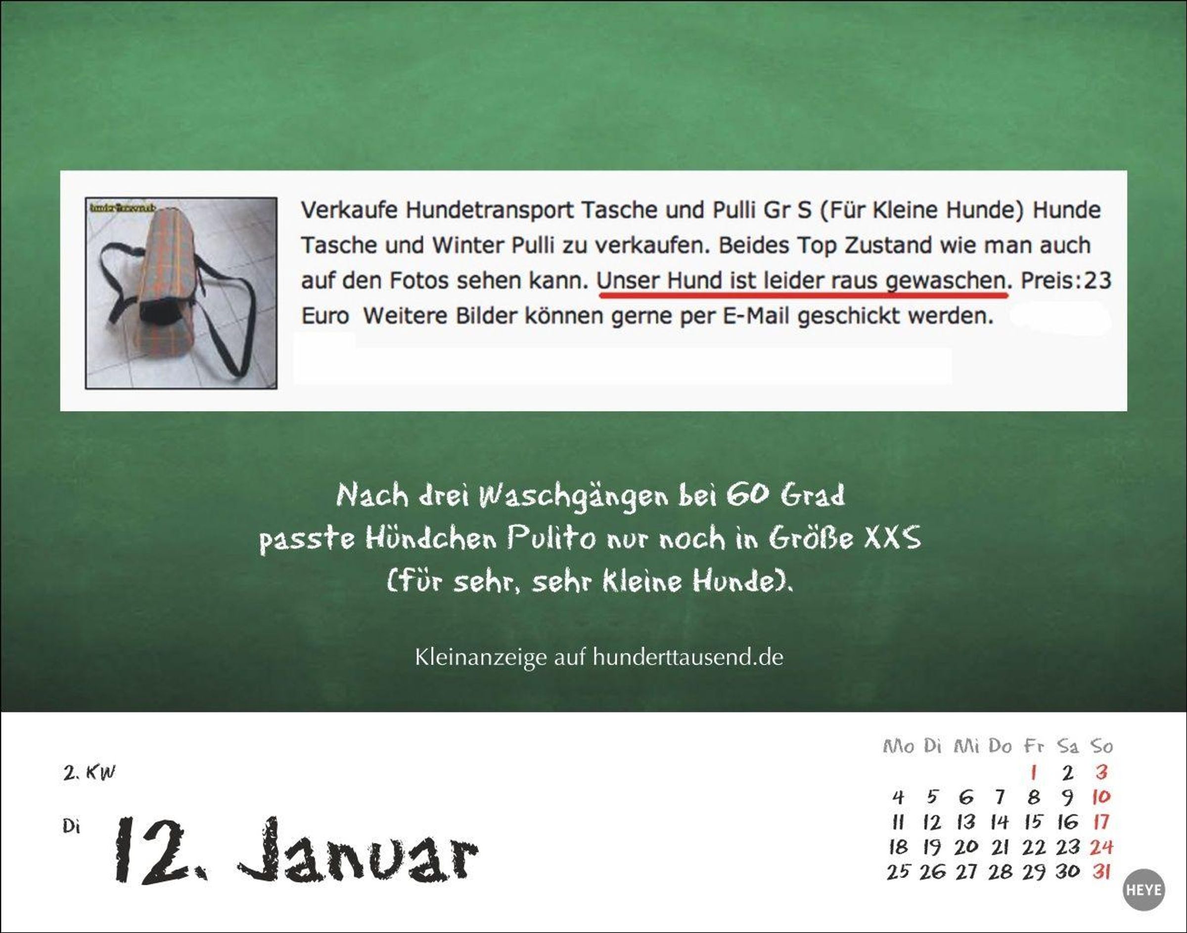 - "Jeden letzten Dienstag im Montag". Witziger Kalender voller Sprachverdreher und Schreibpannen der deutschen Sprache. Tischkalender für jeden Tag. Auch zum Aufhängen.