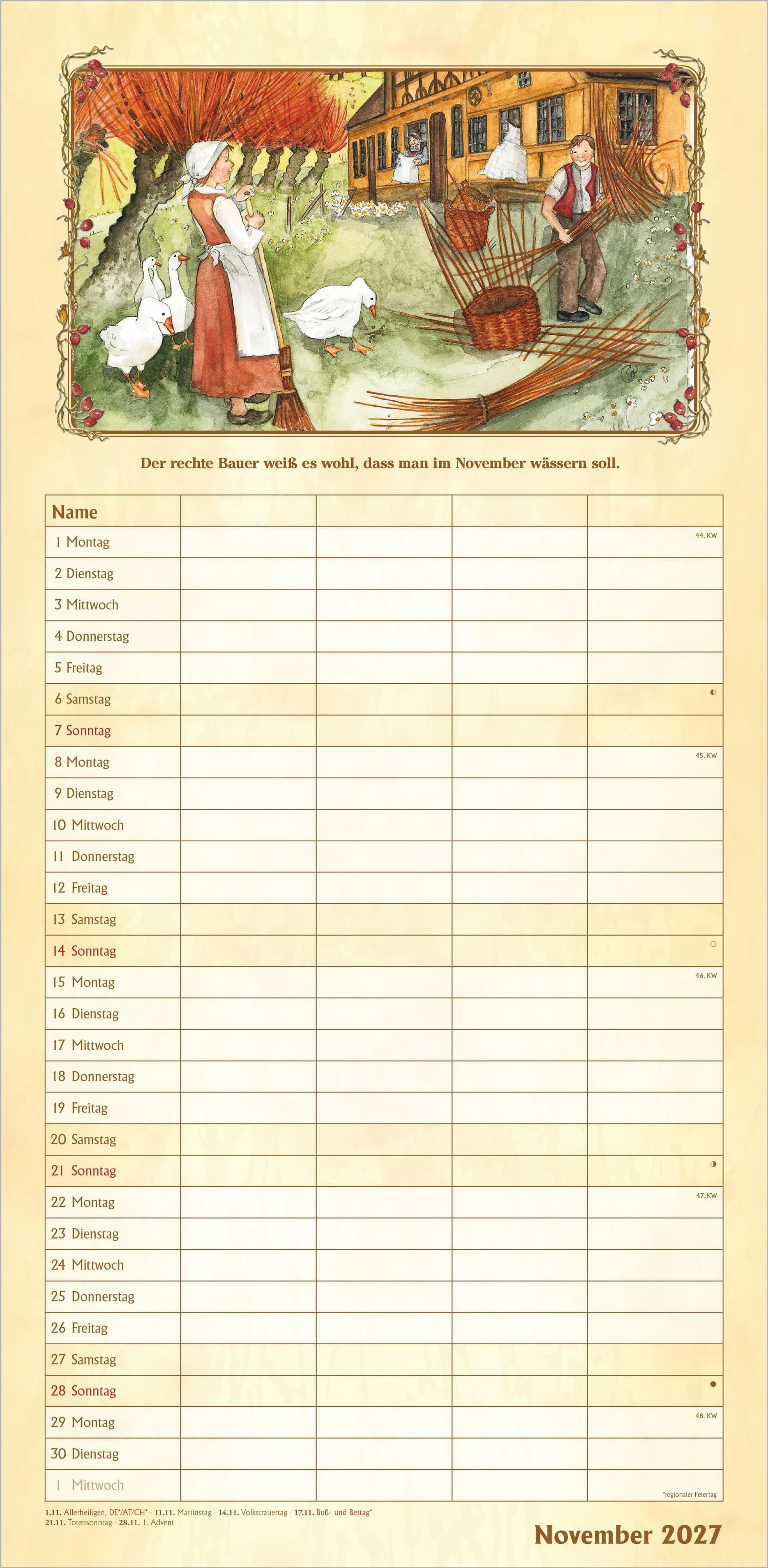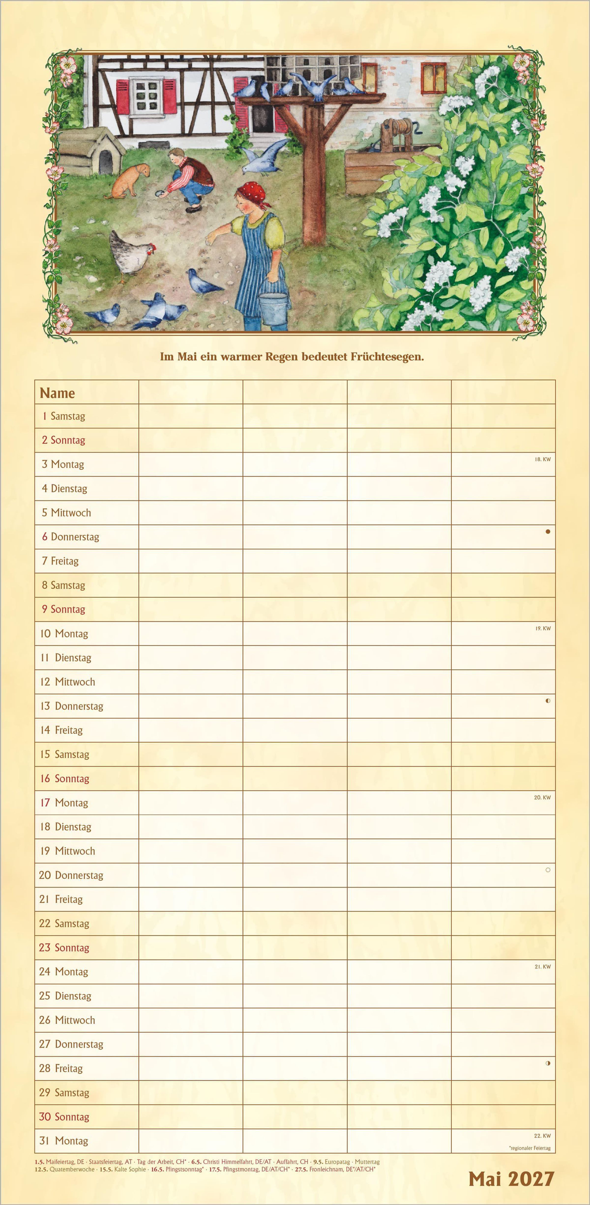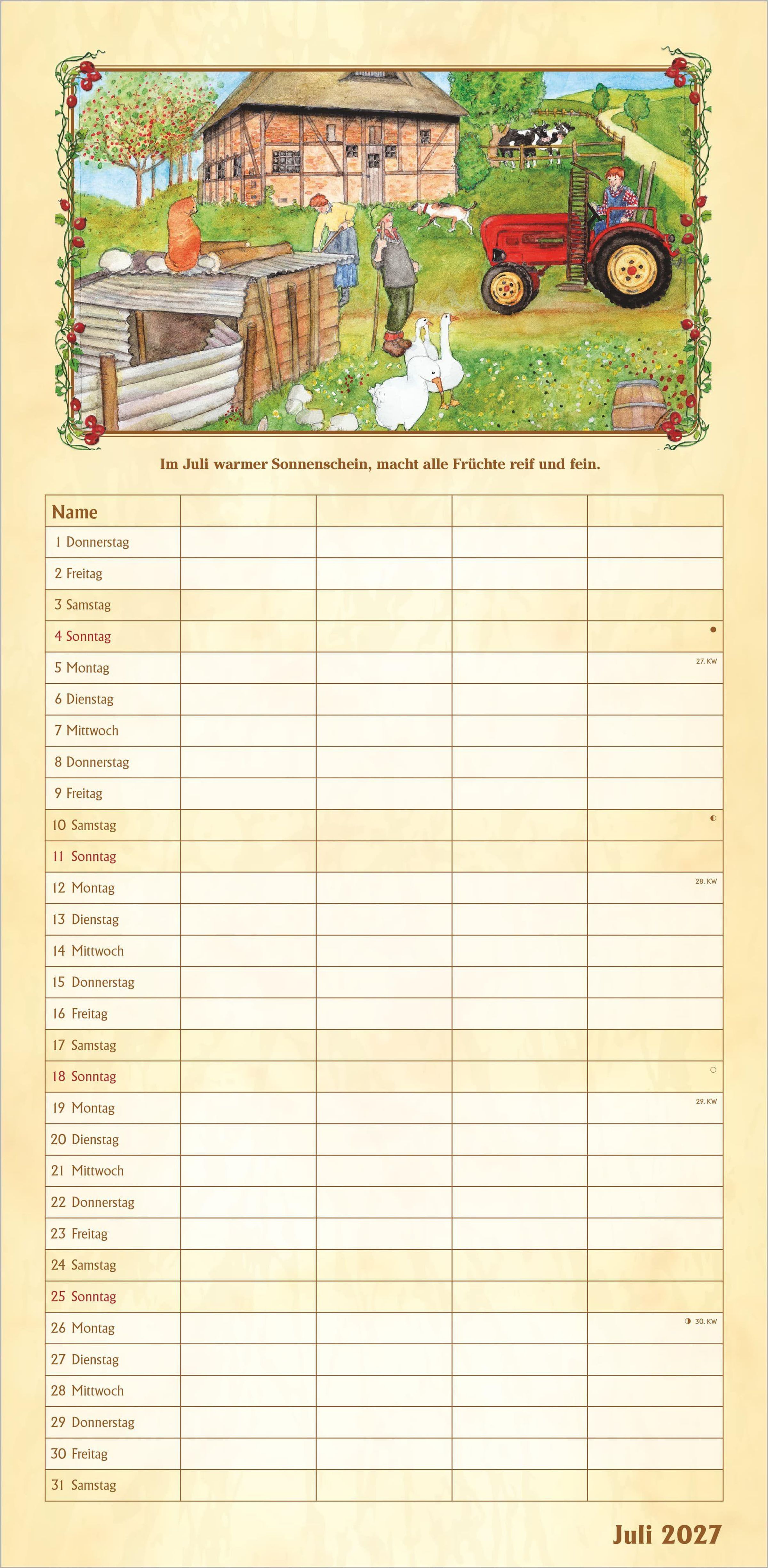 Der Bauernkalender Familienplaner 2027 ist die perfekte Kombination aus funktionaler Terminplanung und gelebter Tradition -- ein praktischer und inspirierender Begleiter für das ganze Jahr.