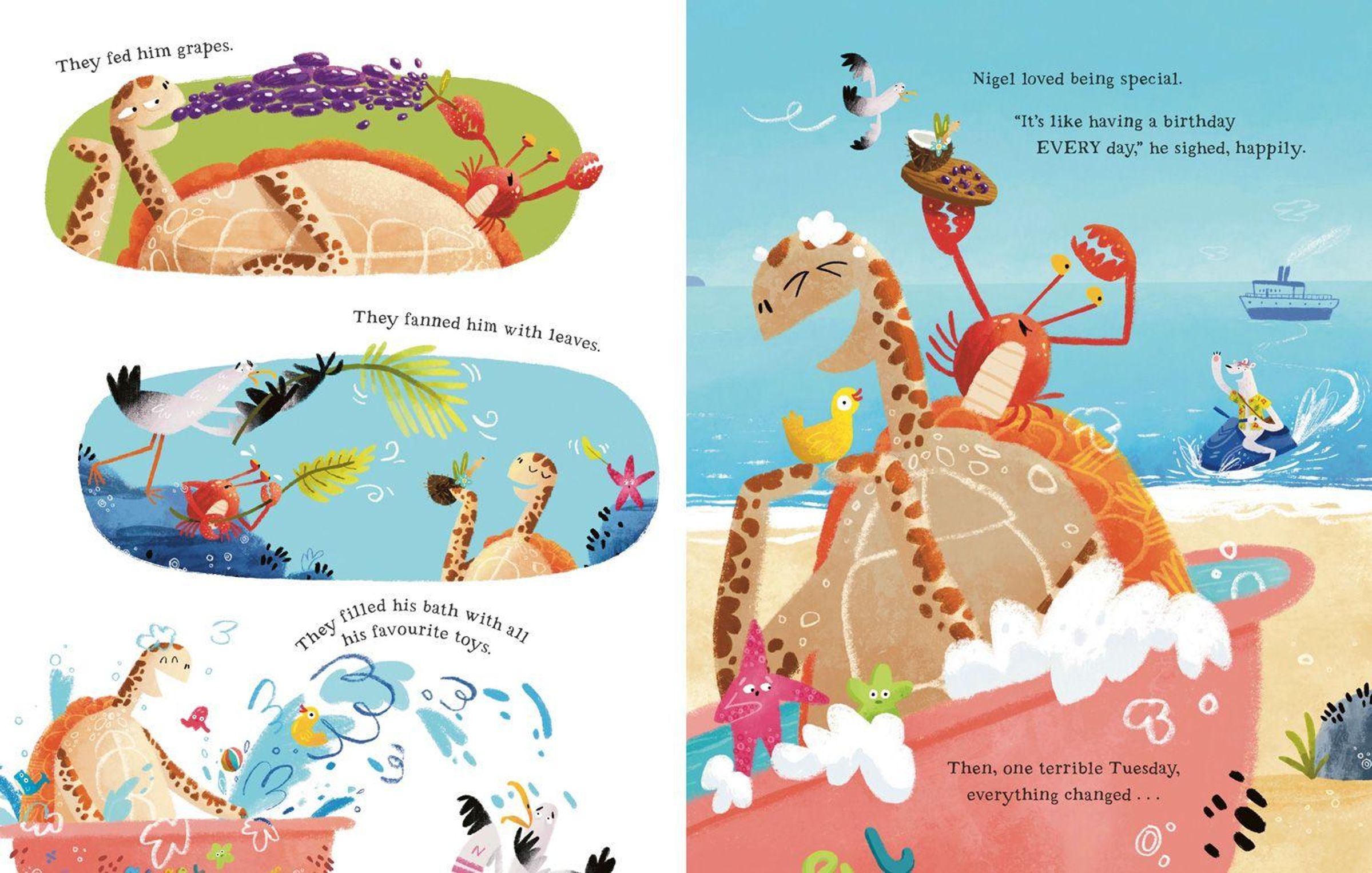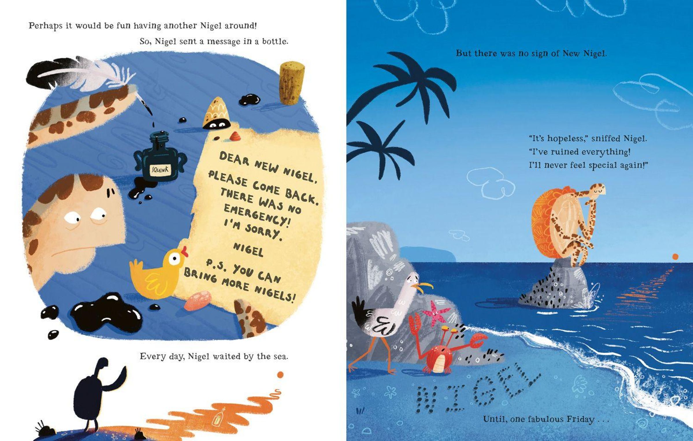 Nigel (a hawksbill turtle) thinks he's the last Nigel on Earth - and he is enjoying it! That is, until New Nigel arrives ...
