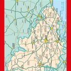 Die thematische Karte enthält detaillierte Informationen über Ortschaften und das verbindende Strassennetz.