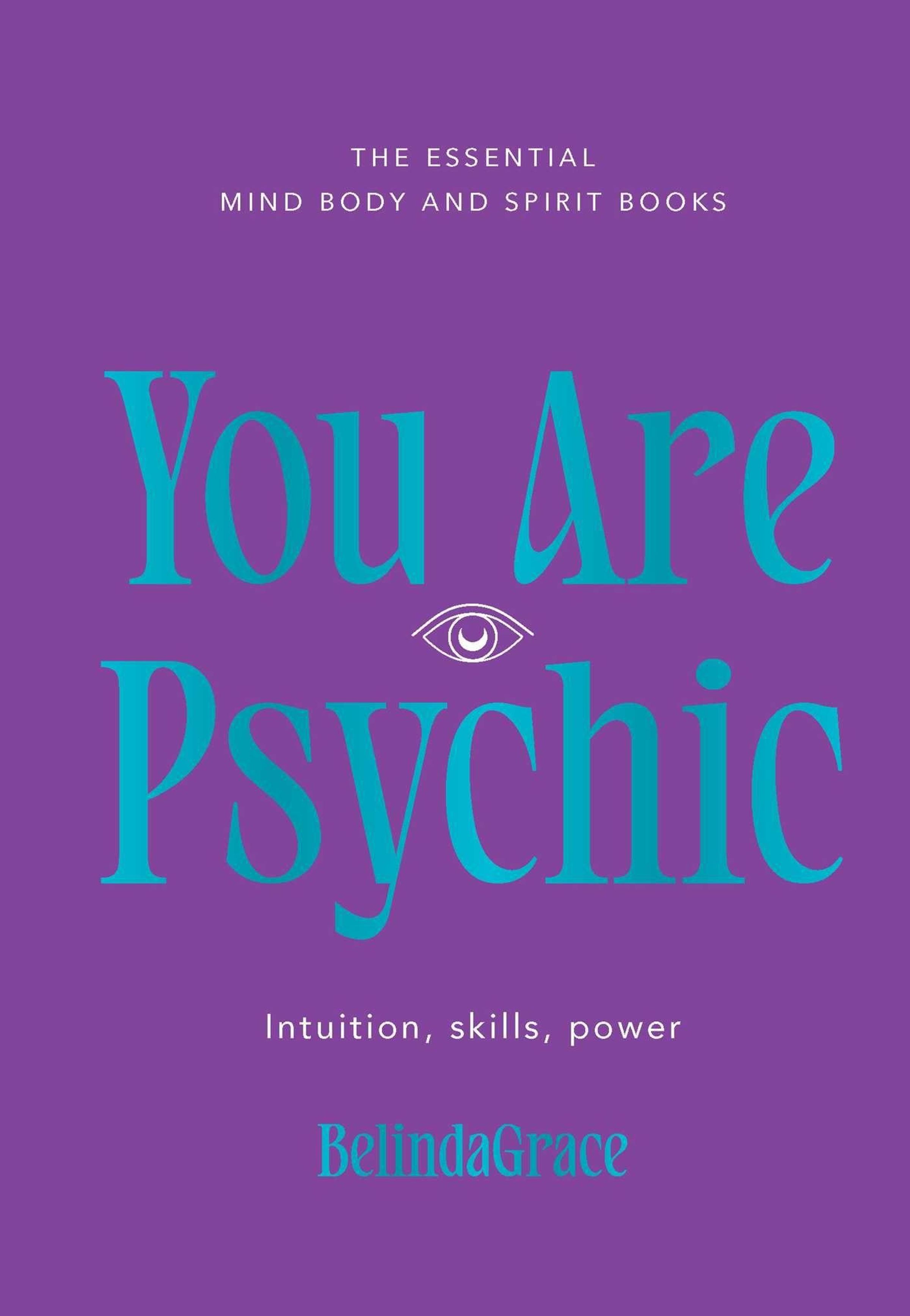 "You Are Psychic" und "BelindaGrace" in Türkis auf lila Hintergrund, darunter ein Auge-Symbol., Buch