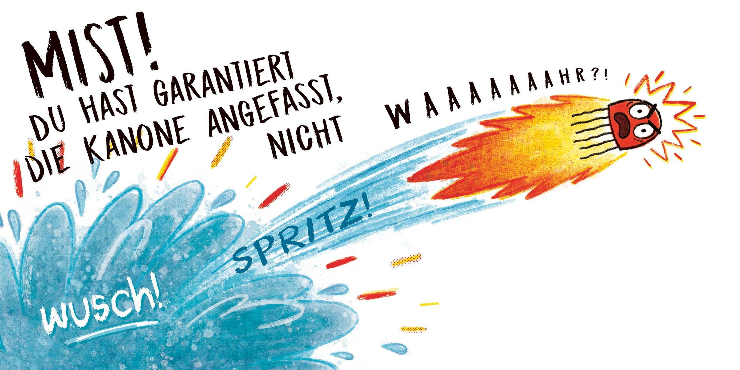 Komm mit und begleite die kleine Qualle auf ihrer gefährlichen Reise. Aber wehe, du weckst die schlafenden Wasserschlangen, spielst an der versunkenen Kanone herum, oder machst irgendetwas anderes, dass dieses gefährliche Buch für die kleine Qualle noch gefährlicher macht!