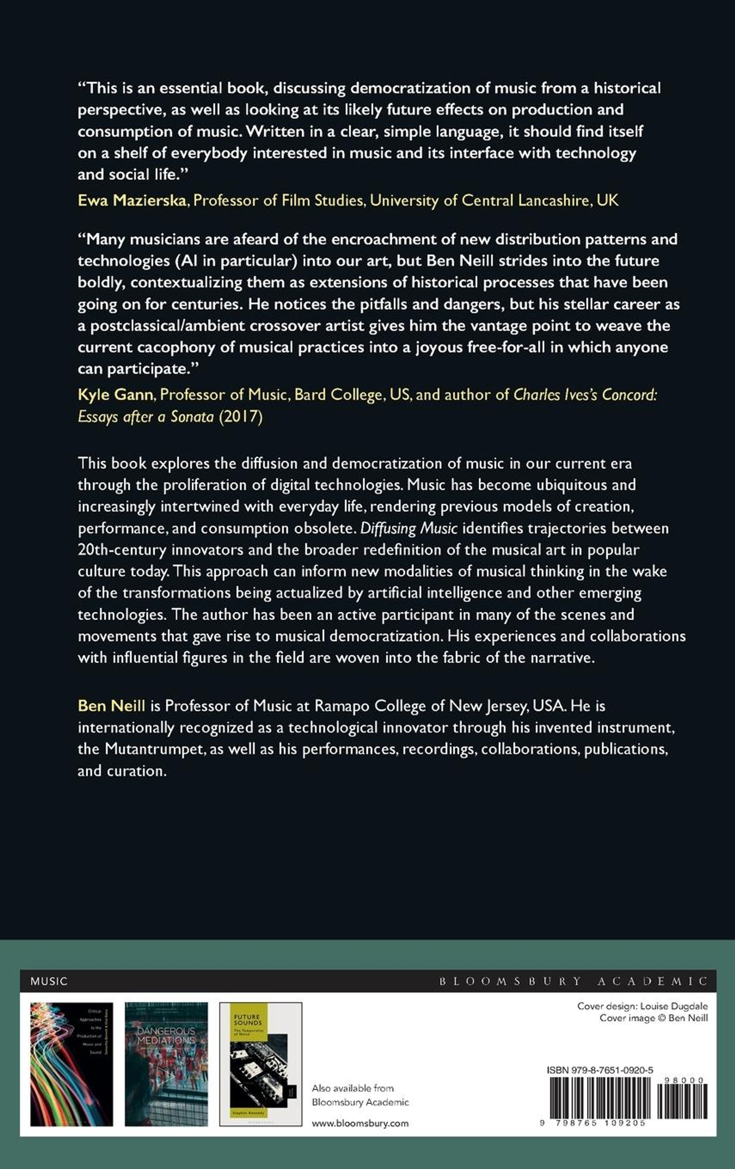 Diffusing Musicidentifies trajectories between 20th-century innovators and the broader redefinition of the musical art in popular culture through technology today. This examination gives context for the advancement of new creative practices and approaches to the art and business of music that are appropriate for current and future technological configurations, and offers new insights on important historical figures and movements. It asserts the prescience and value of experimental music by identifying its powerful influence on the digital milieu in which we all now exist, and presents possibilities for new definitions of musical creativity and distribution as musicking becomes more and more ubiquitous.