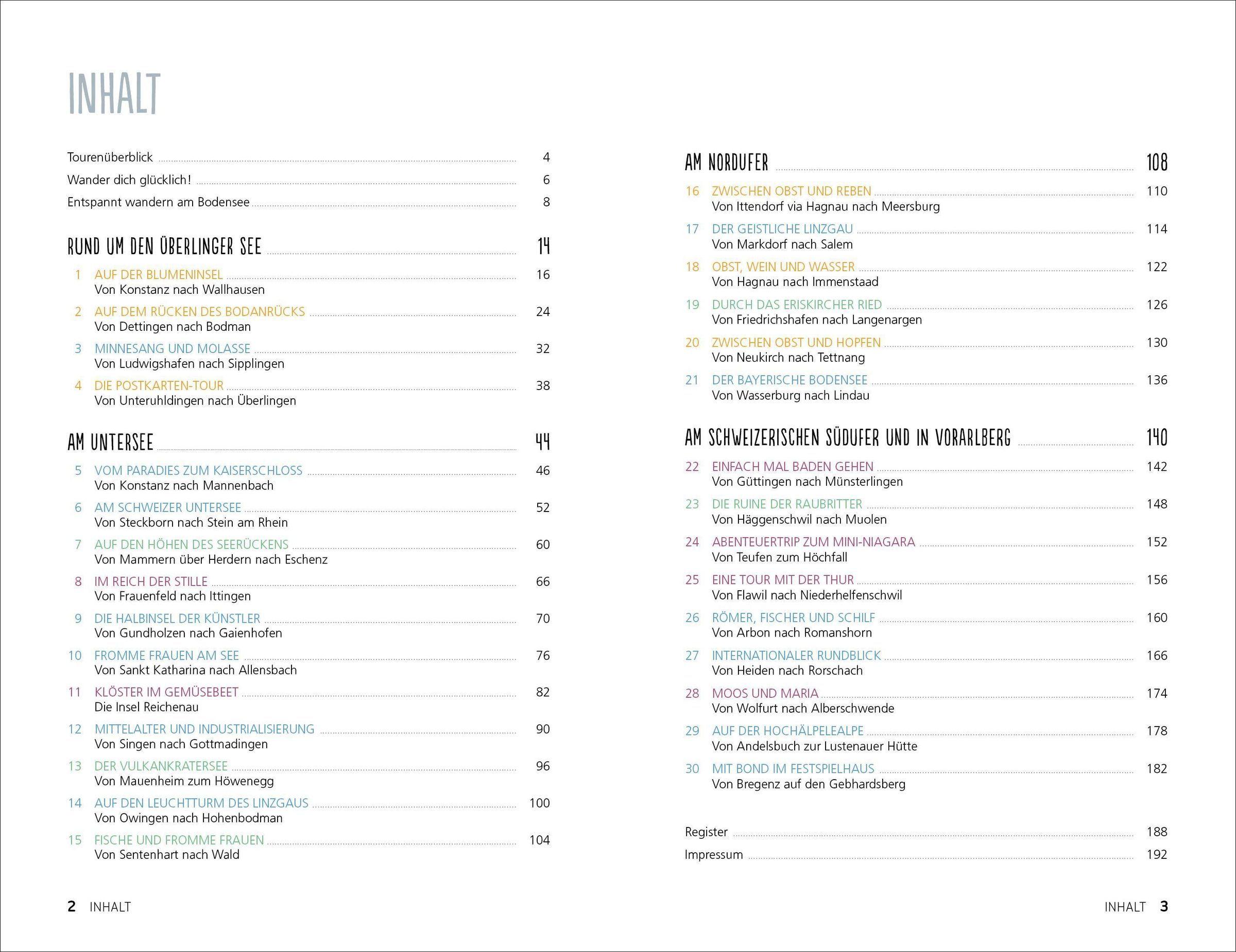 Wer gerne genussvoll über stille Wege schlendert, wer Ruhe und Natur abseits der touristischen Massen genießen möchte, wer Entspannung sucht, der wird auf diesen 30 Wanderungen rund um den Bodensee sein Glück finden! Entdecke herrliche Wanderrouten abseits der bekannten Wege, durch Moorlandschaften, vorbei an barocken Kirchen und Schlössern durch natürliche Idyllen und vielfältige Gegenden im Vier-Länder-Eck - mit echter Wohlfühlgarantie!