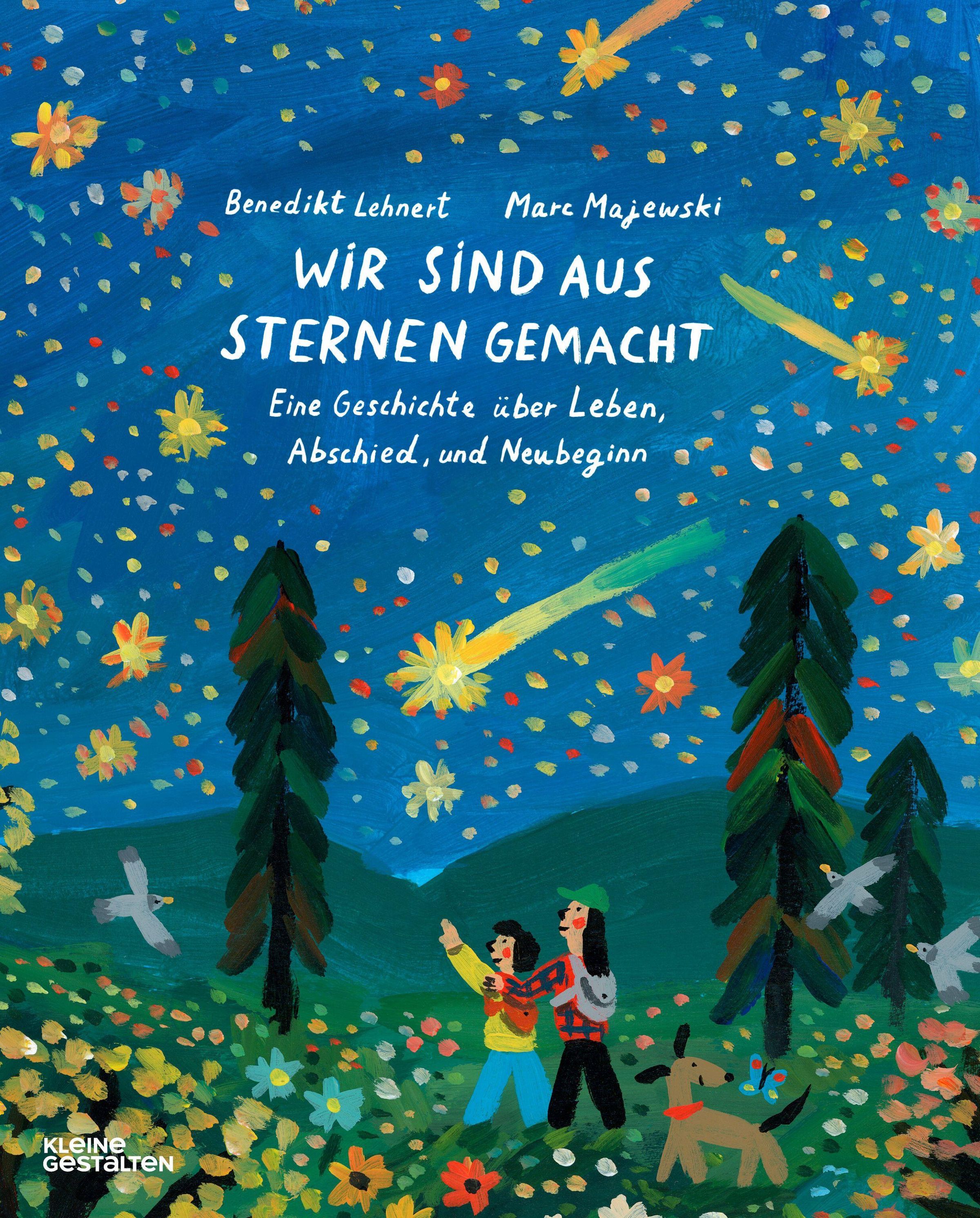 „Wir sind aus Sternen gemacht“ von Benedikt Lehnert und Marc Majewski. Sternennacht, Menschen, Hund, Bäume., Buch