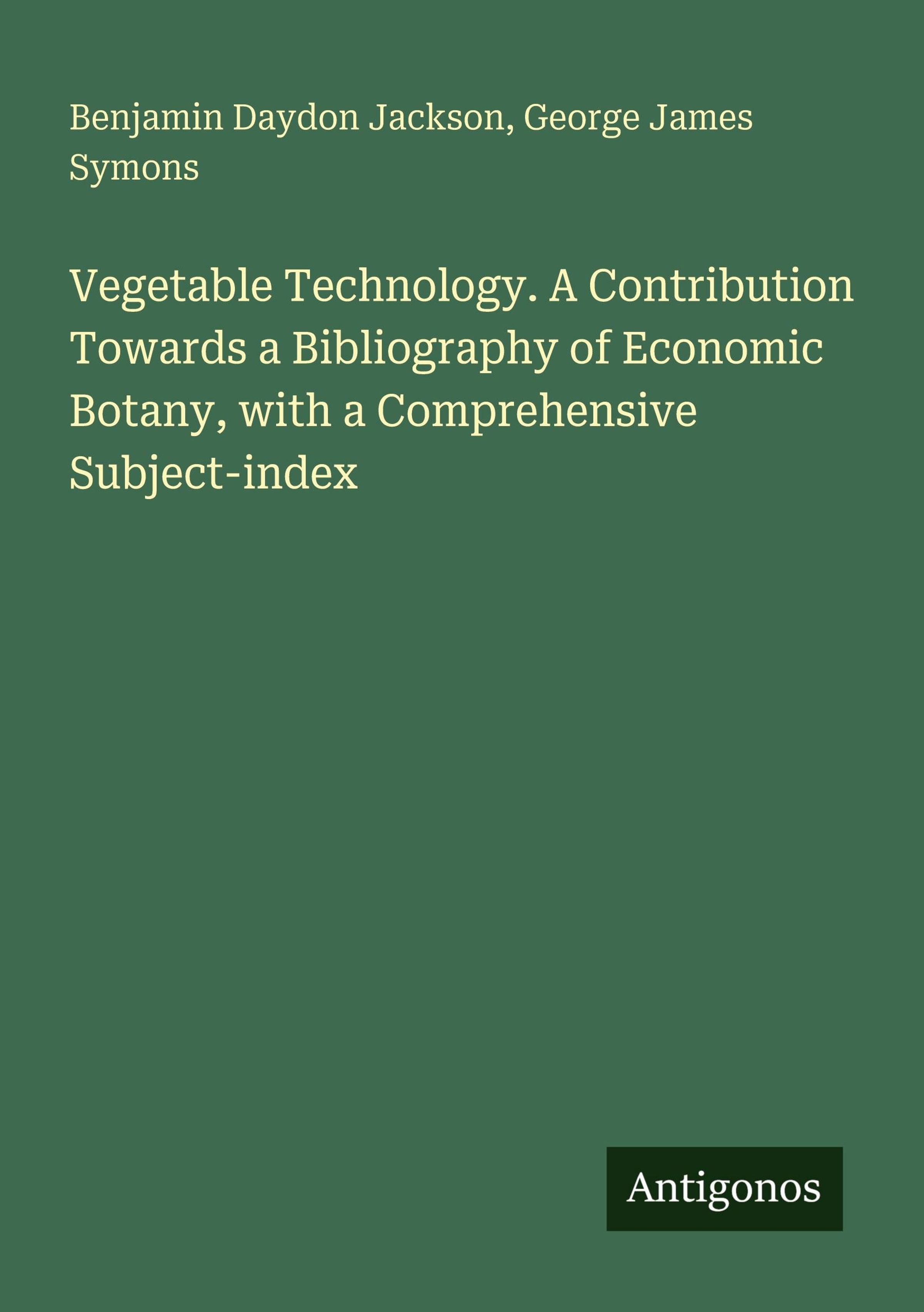 Benjamin Daydon Jackson: Vegetable Technology. A Contribution Towards a Bibliography of Economic Botany, with a..., Kartoniert / Broschiert