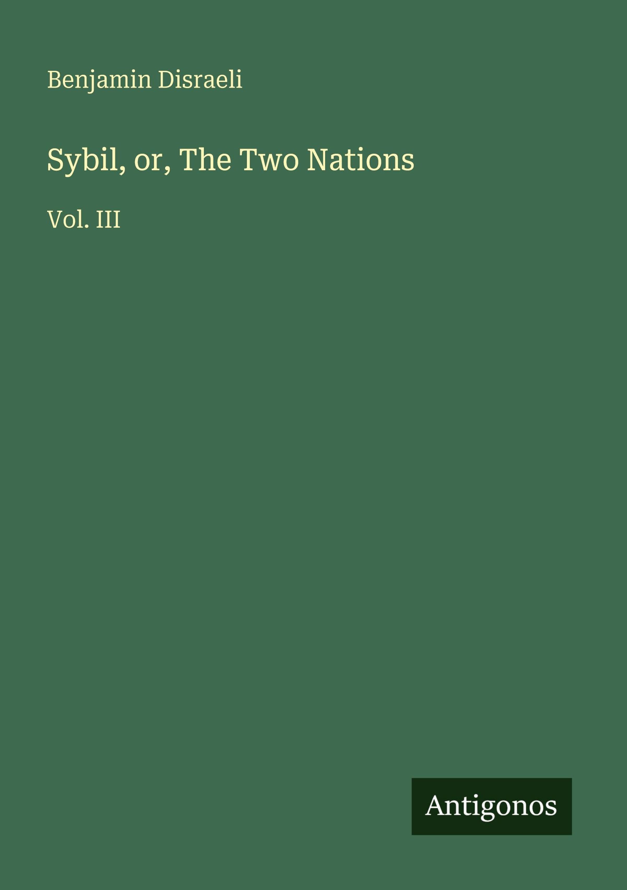 Benjamin Disraeli: Sybil, or, The Two Nations, Vol. III. Grüner Hintergrund, kleines Logo unten rechts: Antigonos., Buch