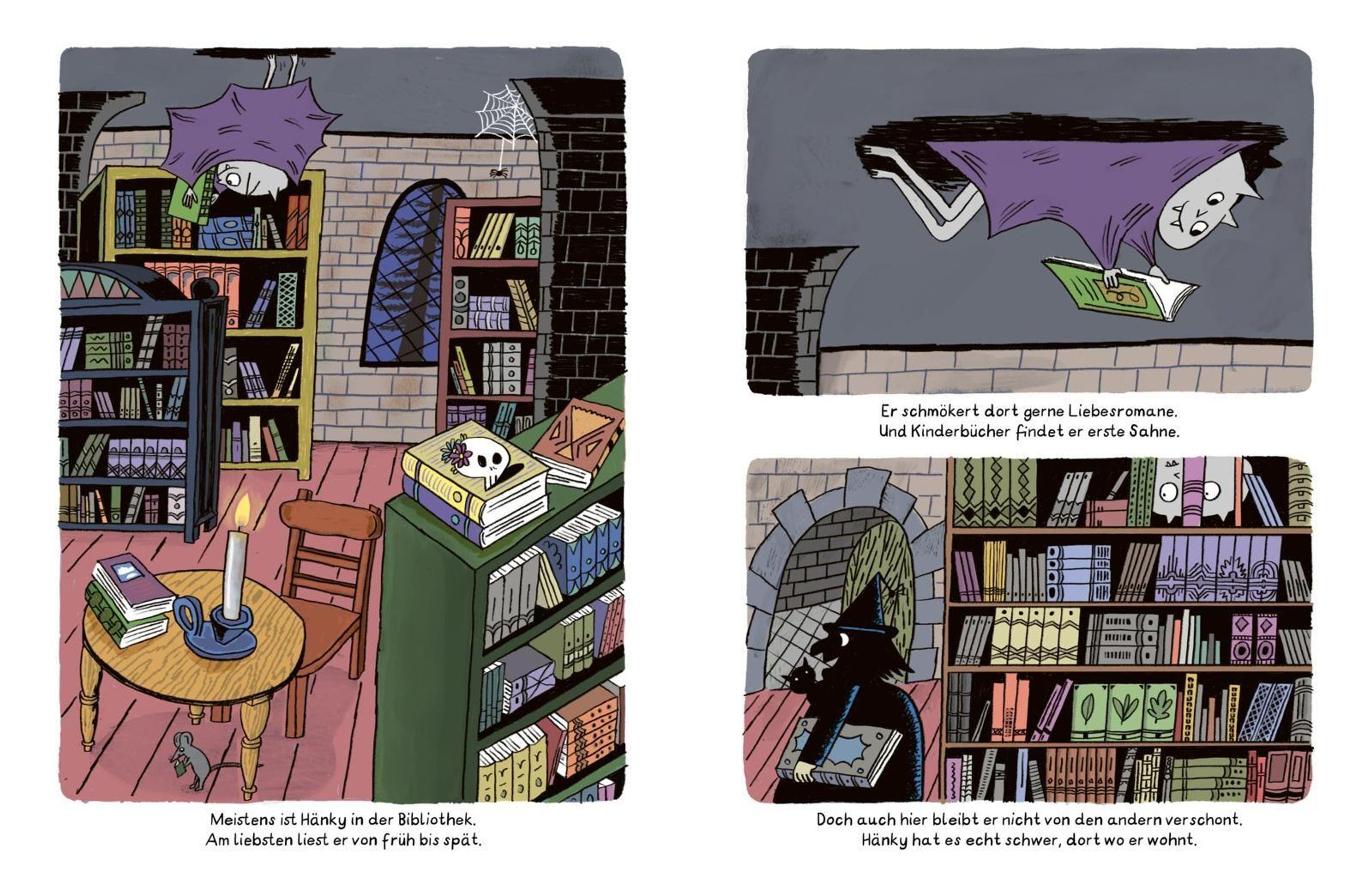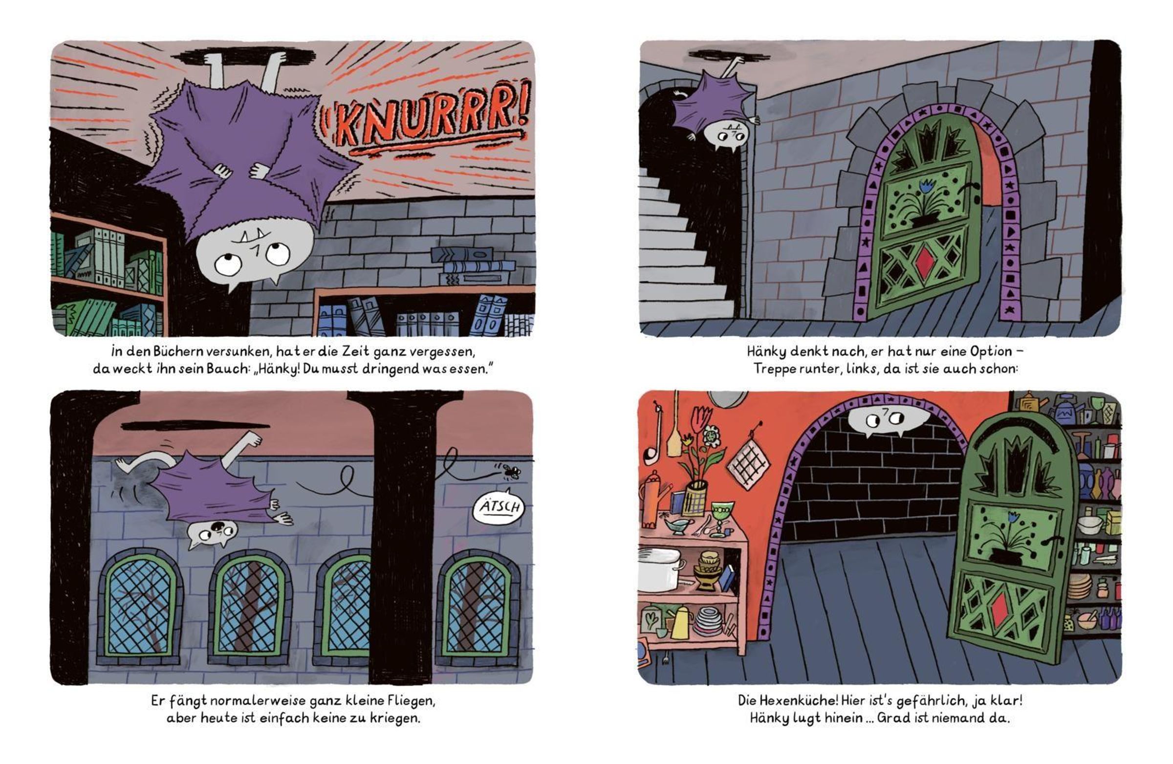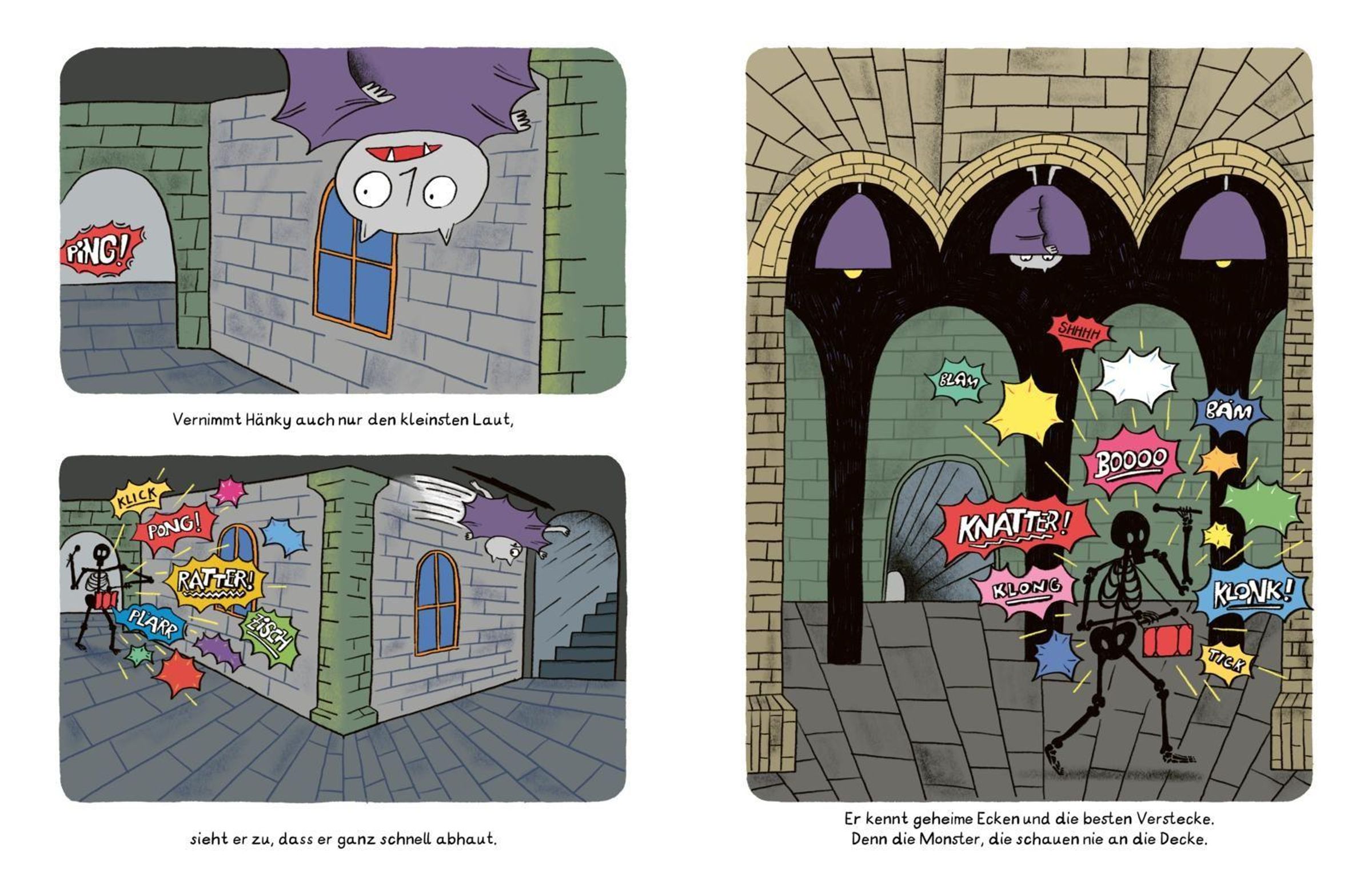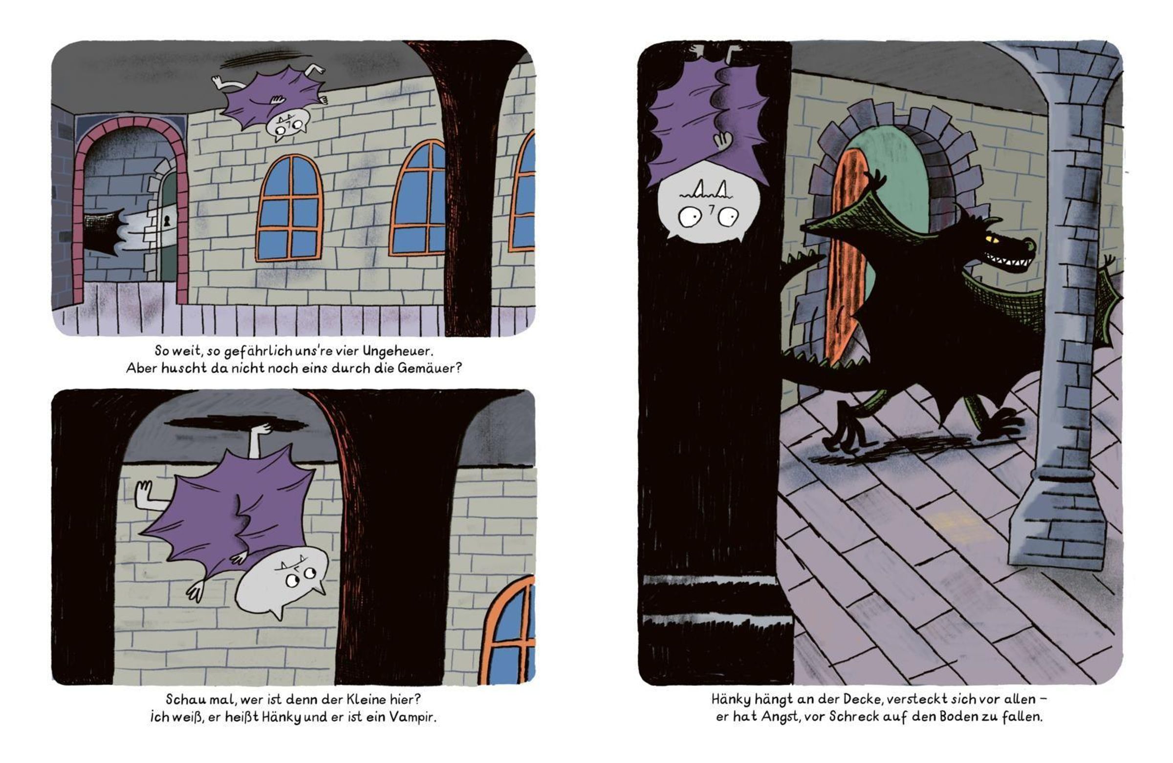 Hänky, der kleine Vampir, liebt Bücher und Tomaten! Gruselige Gestalten liebt er nicht. Denen möchte Hänky am liebsten gar nicht begegnen. Leider wohnt er mit gleich vier davon zusammen. Fürchterlich, schauerlich, unheimlich und schrecklich sind seine Mitbewohner*innen -glaubt Hänky. Jedenfalls so lange bis er sie kennenlernt. Normalerweise versteckt Hänky sich ja vor der Hexe, dem Skelett, dem Gespenst und der Drachendame. Aber als er sie eines Tages aus Versehen trifft, merkt er ganz schnell, dass diese Megamonsterbanausen vor allem eines sind: Total liebenswert!