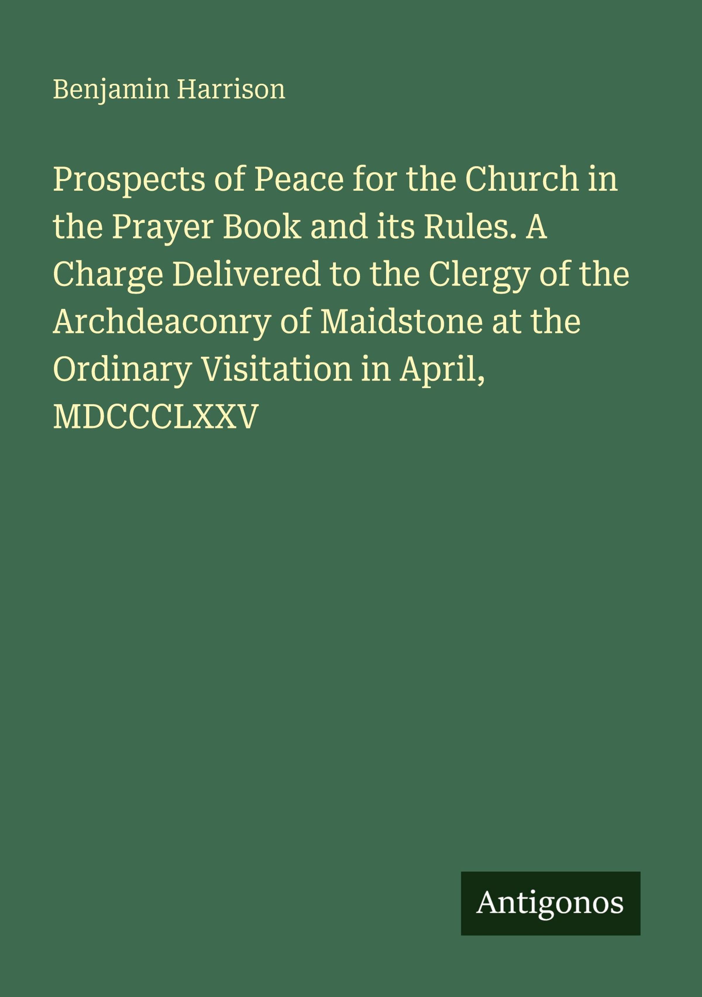 Prospects of Peace for the Church in the Prayer Book and its Rules. A Charge Delivered to the Clergy of the Archdeaconry of Maidstone at the Ordinary Visitation in April, MDCCCLXXV