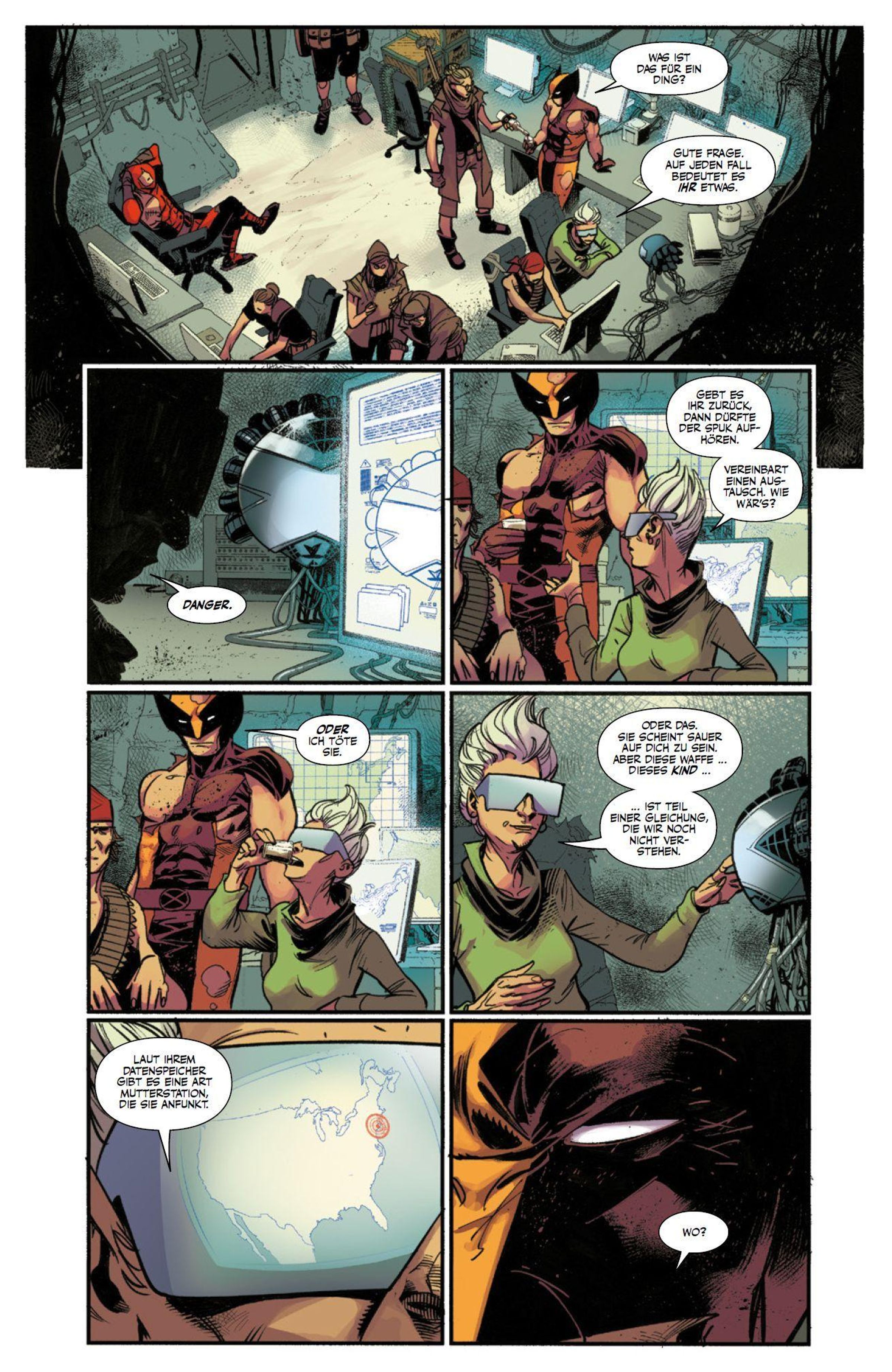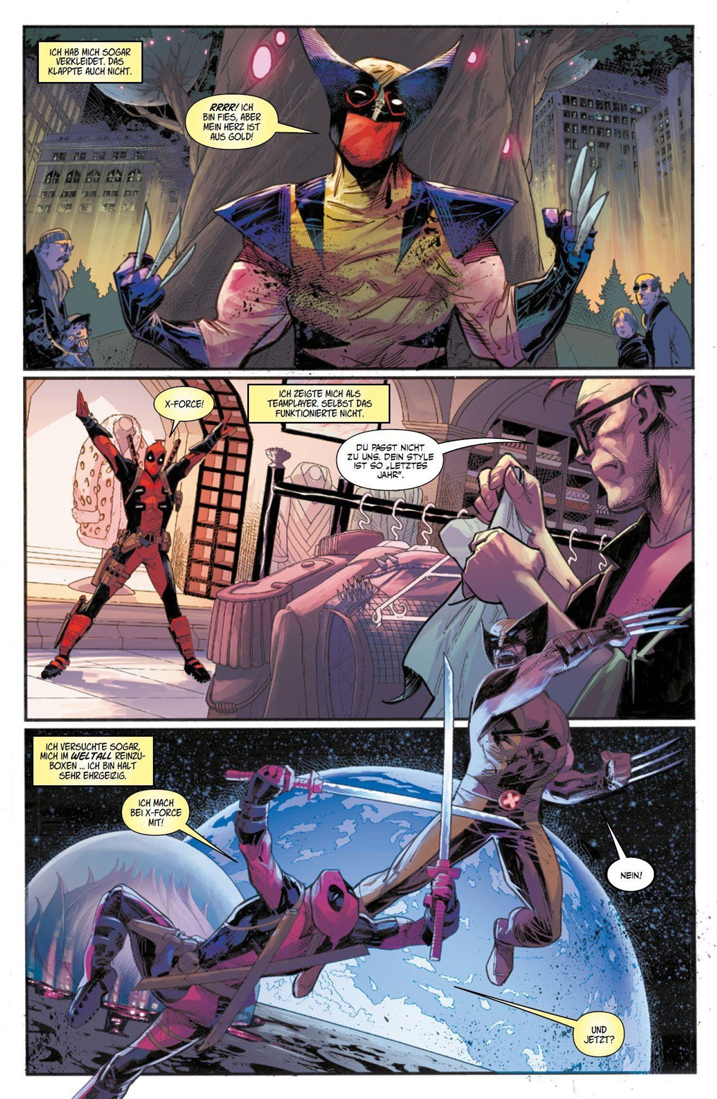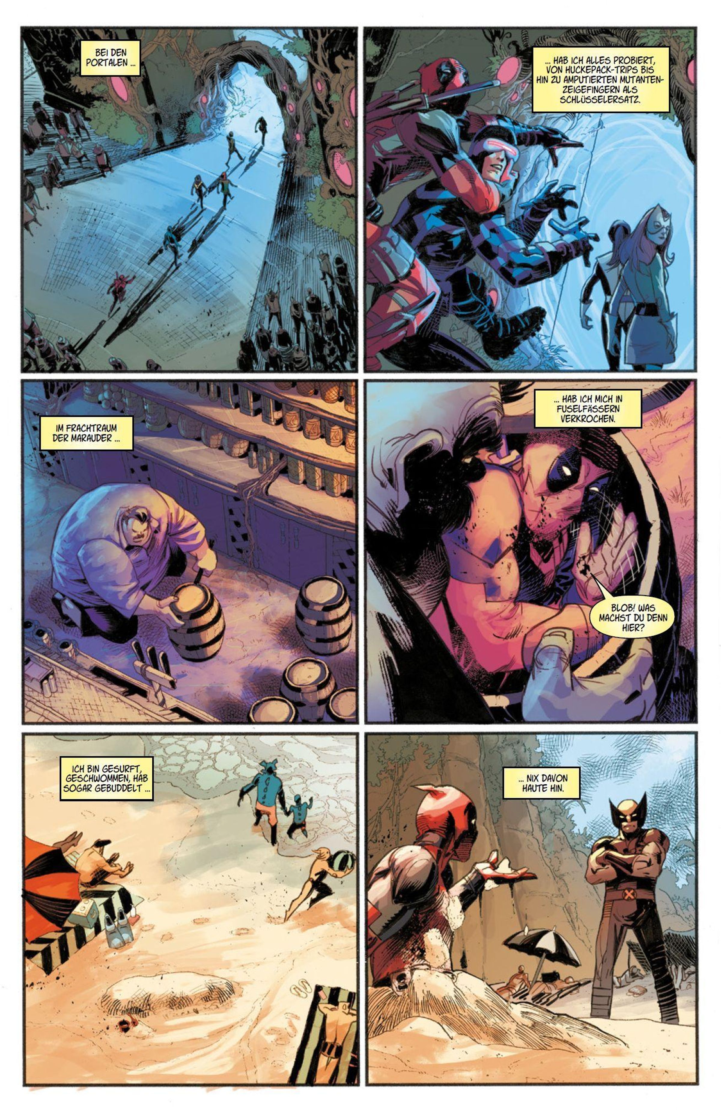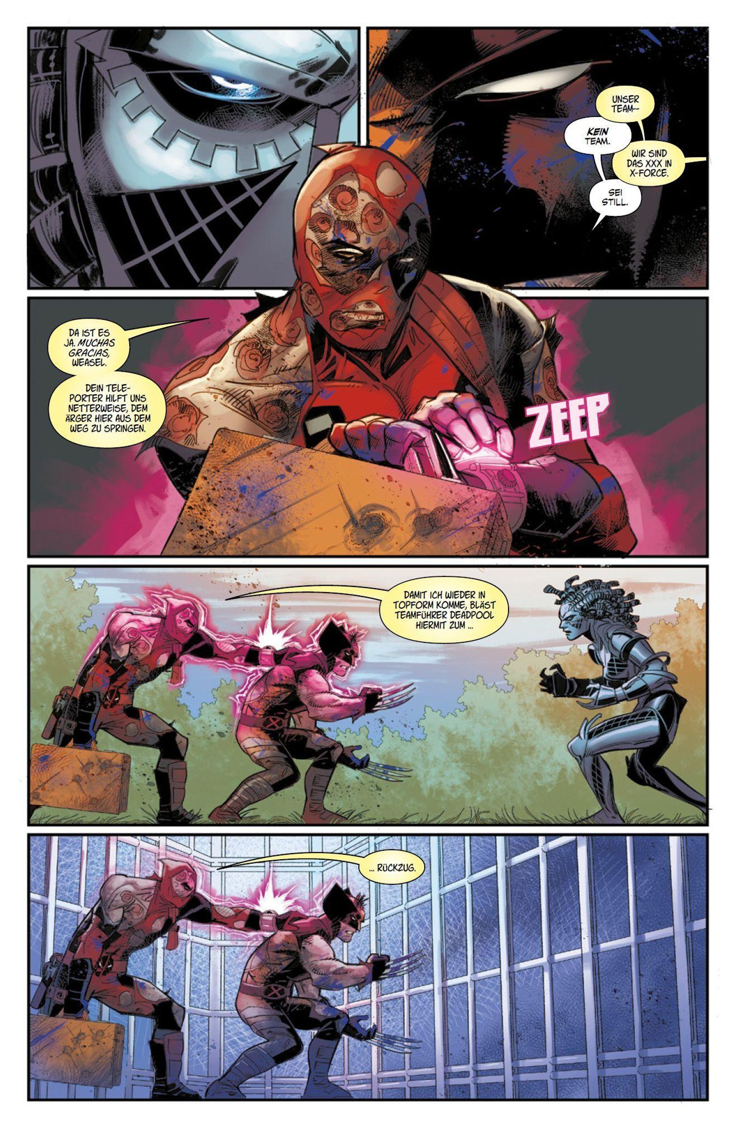 Nach einem Tipp folgt Logan einer CIA-Beauftragten nach Maryland. Doch alles, was er vor Ort findet, sind tote Agenten, defekte Roboter-Replikas der X-Men, ein mysteriöser Koffer und ... Deadpool! Der Söldner mit der großen Klappe ist einem Komplott auf der Spur. Während eine alte Bekannte ganz Krakoa zu bedrohen scheint, kennt Wade nur ein Ziel. Er will Mitglied von X-Force werden. Deadpool kehrt zurück in Glanz und Gloria in einem packenden Action-Spektakel von Benjamin Percy, Adam Kubert, Federico Vicentini und anderen.