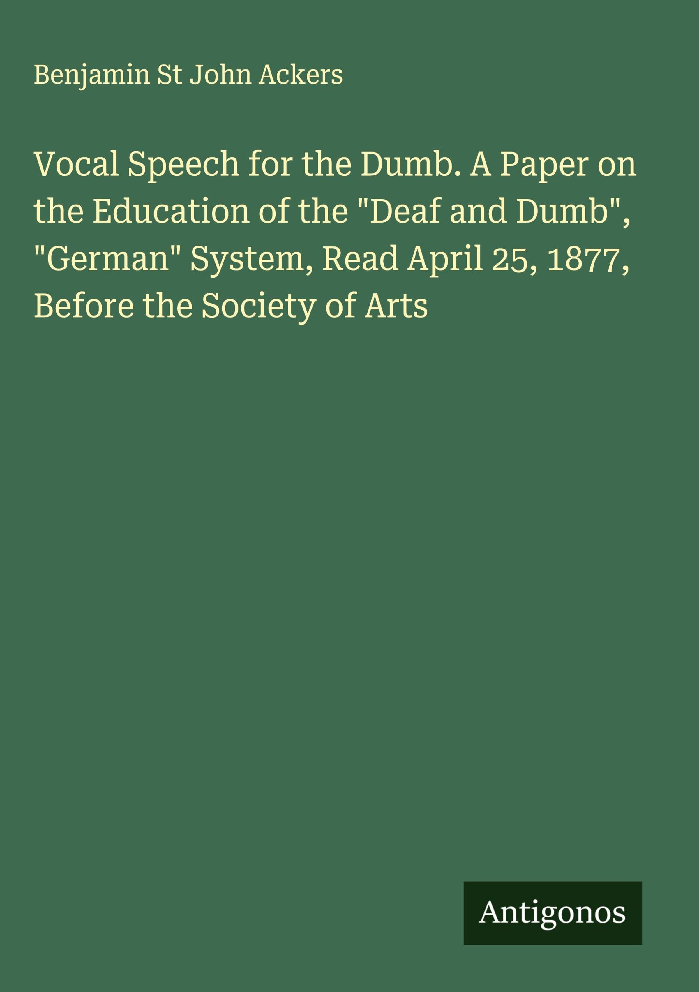 Benjamin St John Ackers: Vocal Speech for the Dumb. A Paper on the Education of the "Deaf and Dumb", "German"..., Gebunden