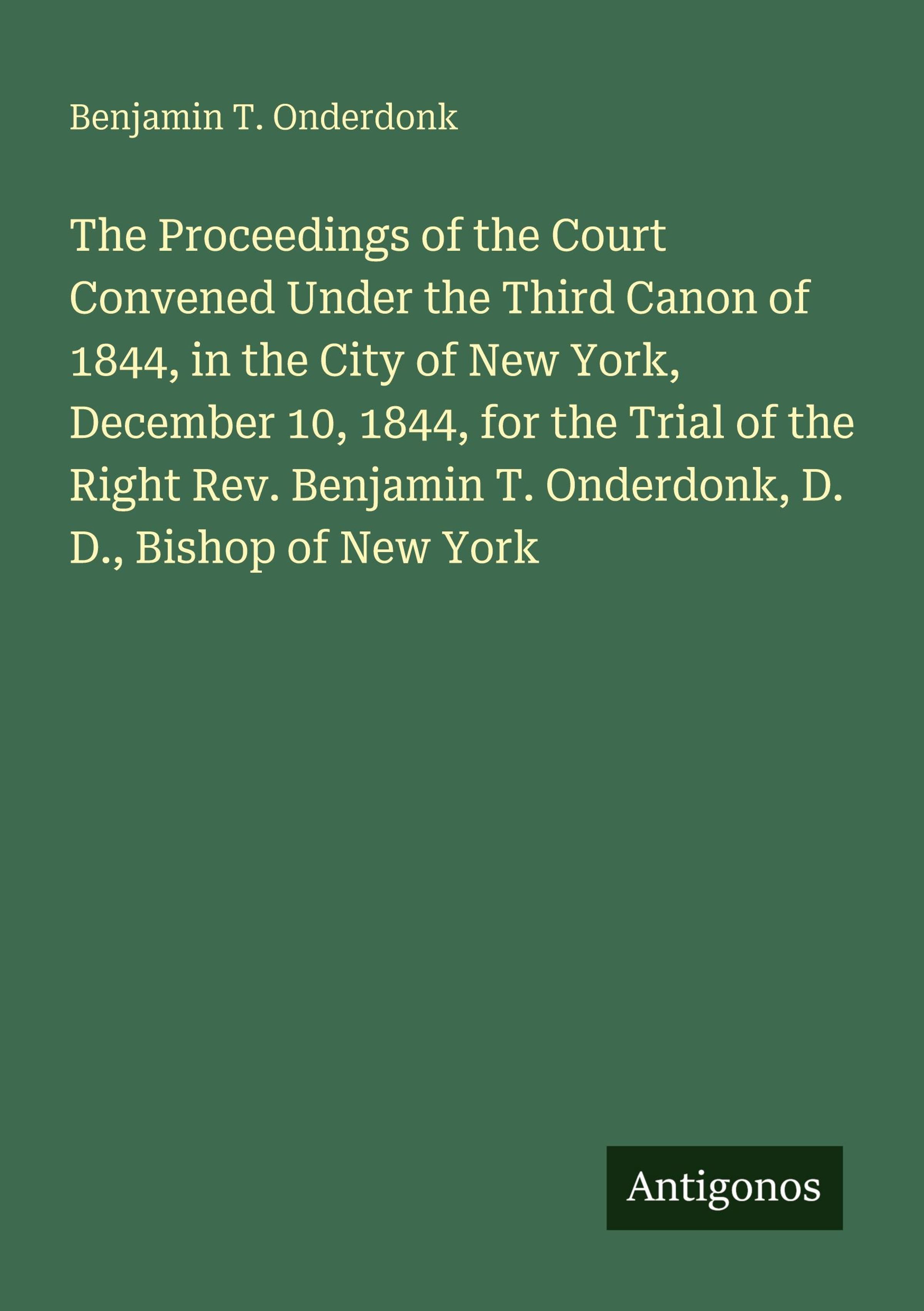 The Proceedings of the Court Convened Under the Third Canon of 1844, in the City of New York, December 10, 1844, for the Trial of the Right Rev. Benjamin T. Onderdonk, D. D., Bishop of New York