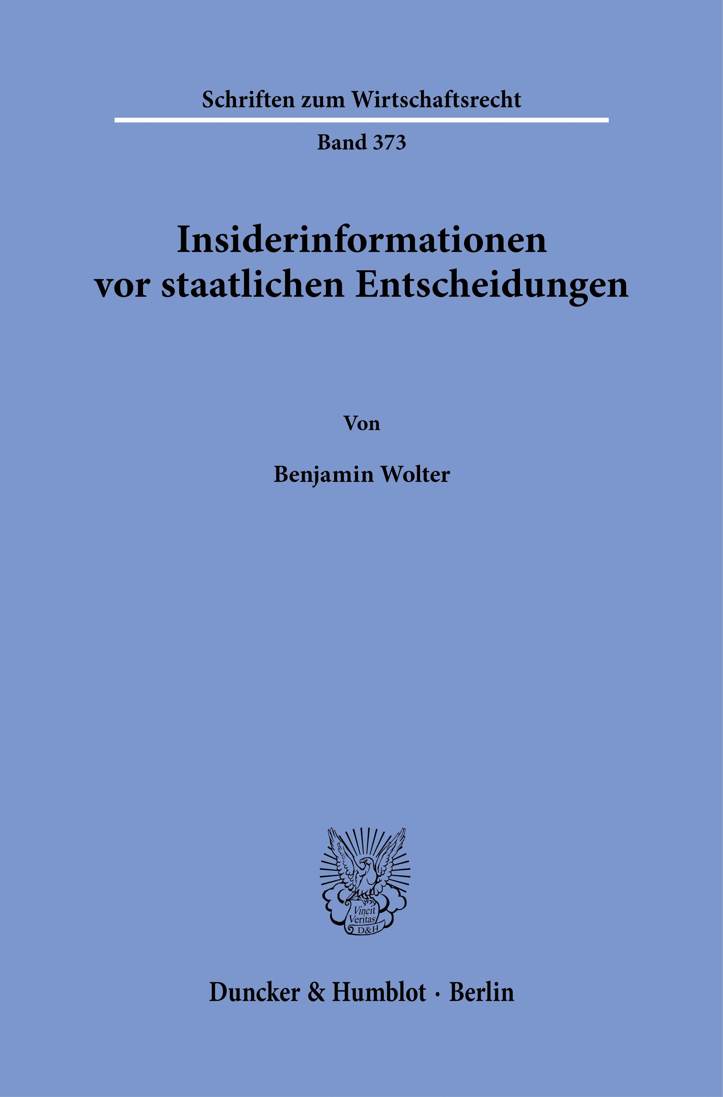 Benjamin Wolter: Insiderinformationen vor staatlichen Entscheidungen, Kartoniert / Broschiert