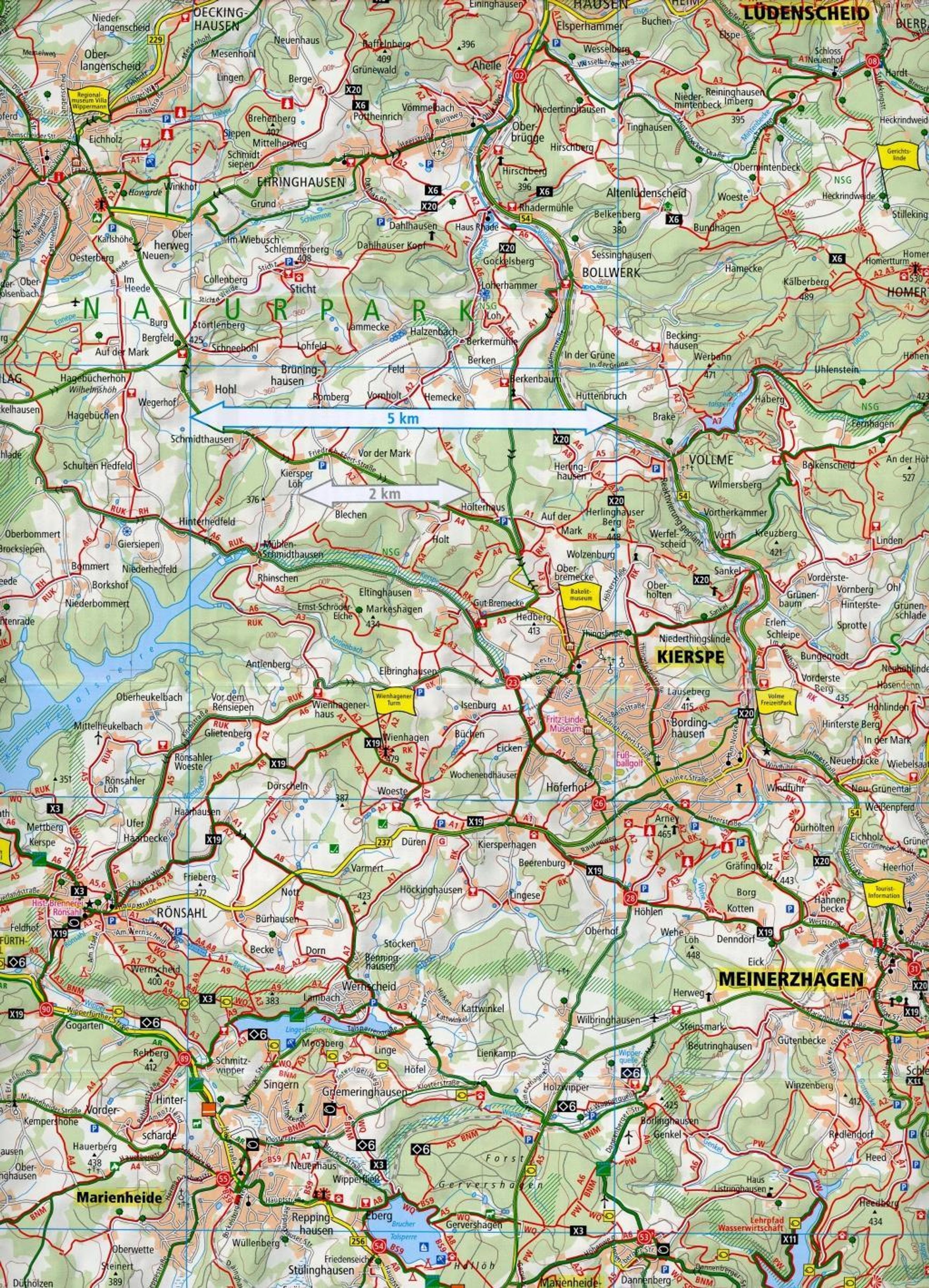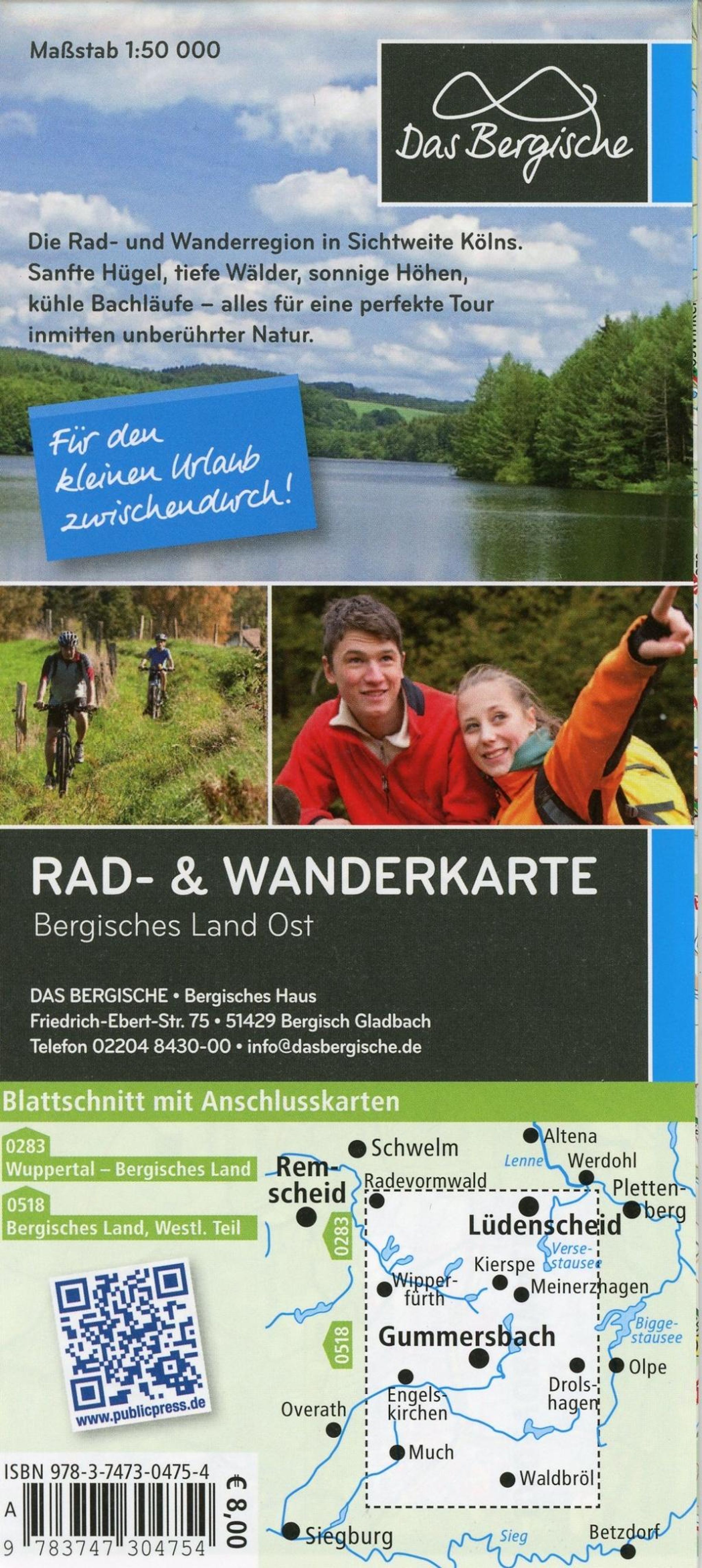 Im Naturpark Bergisches Land gibt es ein gut ausgebautes Radwege- und Wanderwegenetz: Von familienfreundlichen Rundwegen über sportliche Höhenrouten bis zu Themenradwegen ist alles dabei. Geprägt ist die Landschaft von bewaldeten Höhenzügen, Talsperren, Wasserläufen, reizvollen Ortschaften, Wiesen und Feldern. Bietet der Kartenteil eine gute Orientierung in der Region, informiert die Rückseite der Rad- und Wanderkarte Bergisches Land, Östlicher Teil umfassend über die dortigen Highlights.