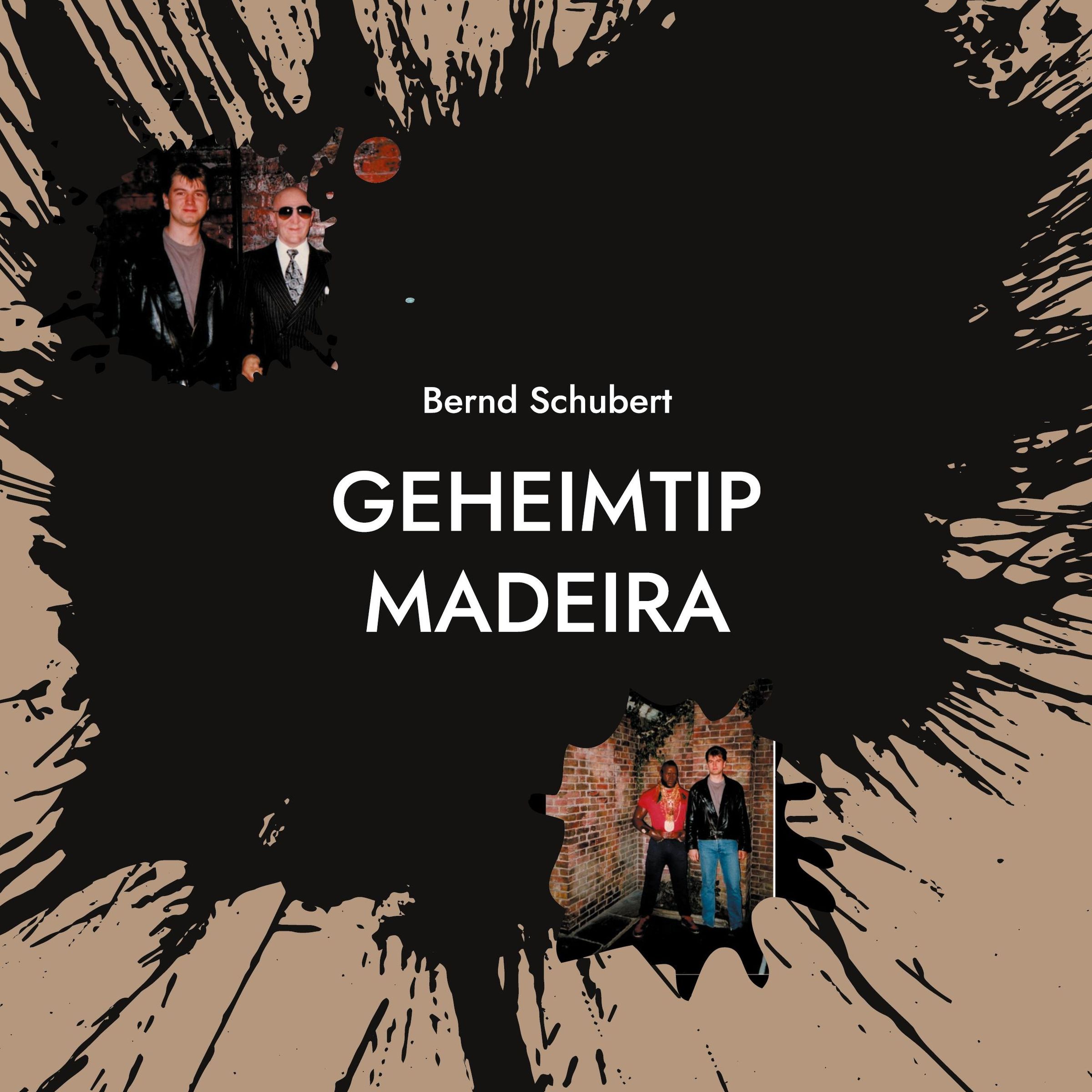 Text: "Bernd Schubert GEHEIMTIP MADEIRA". Zwei Fotos von Menschen auf schwarzem, gesprenkeltem Hintergrund., Buch