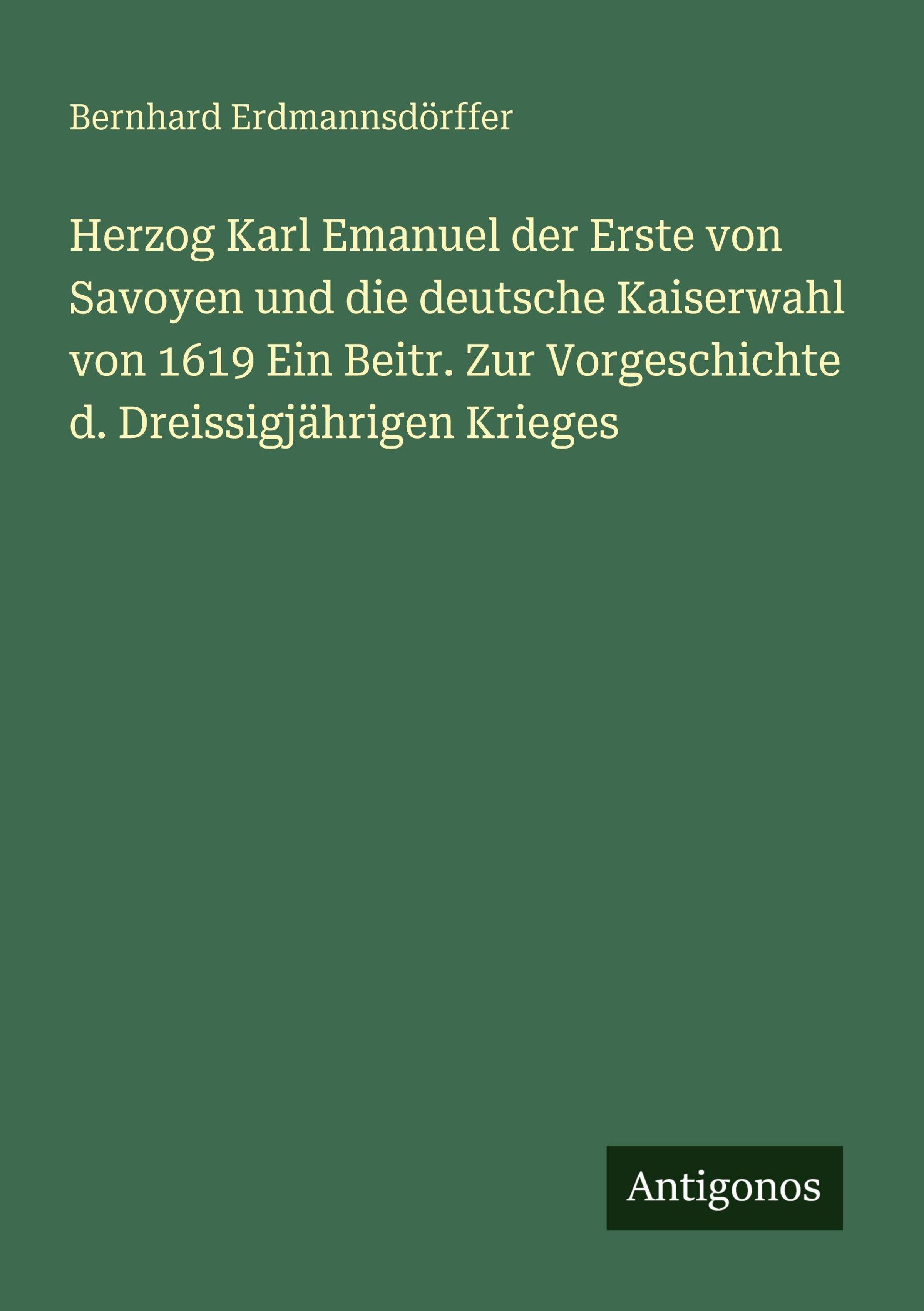 Herzog Karl Emanuel der Erste von Savoyen und die deutsche Kaiserwahl von 1619 Ein Beitr. Zur Vorgeschichte d. Dreissigjährigen Krieges