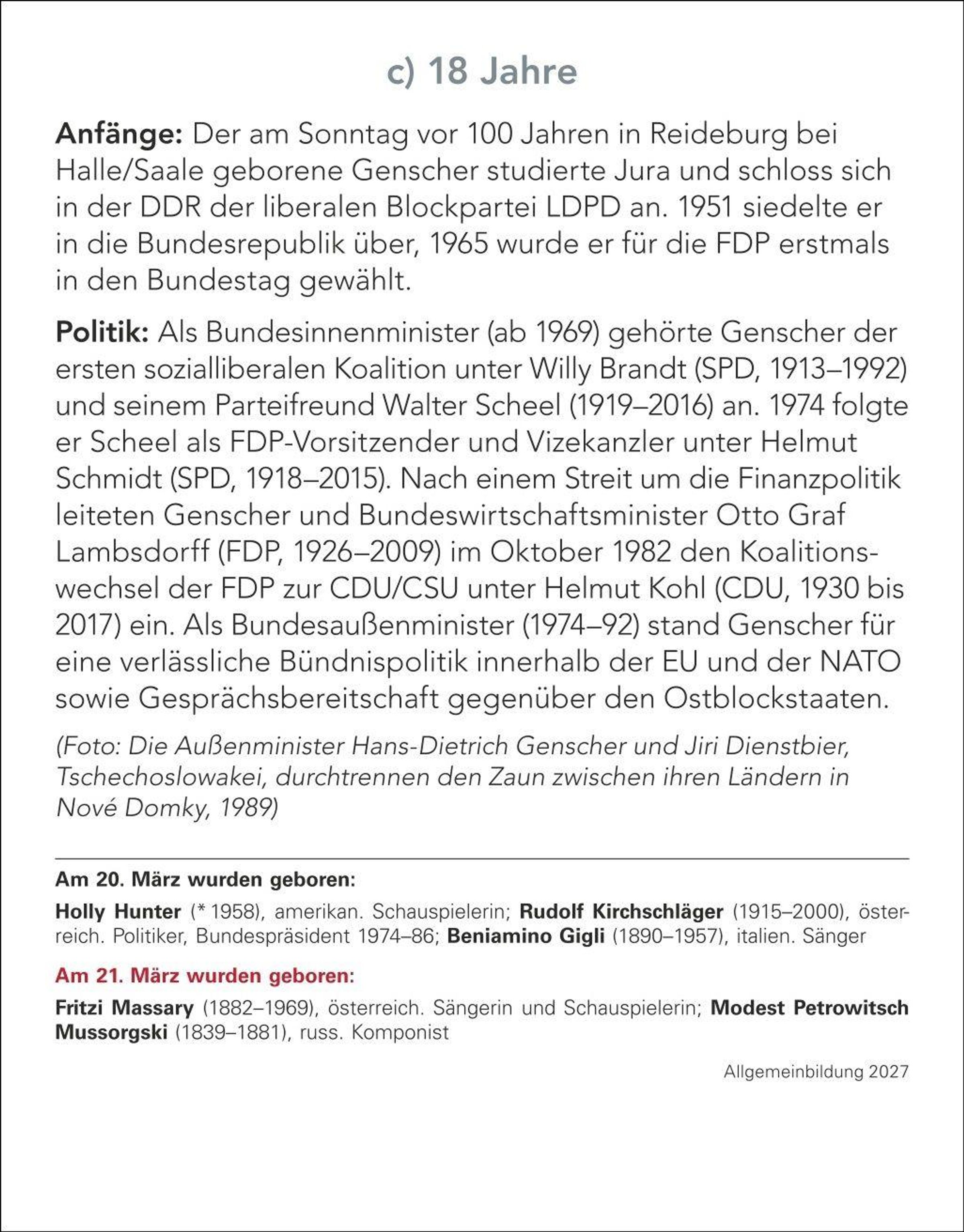 Allgemeinbildung 2027: Der beliebte Original-Kalender von H