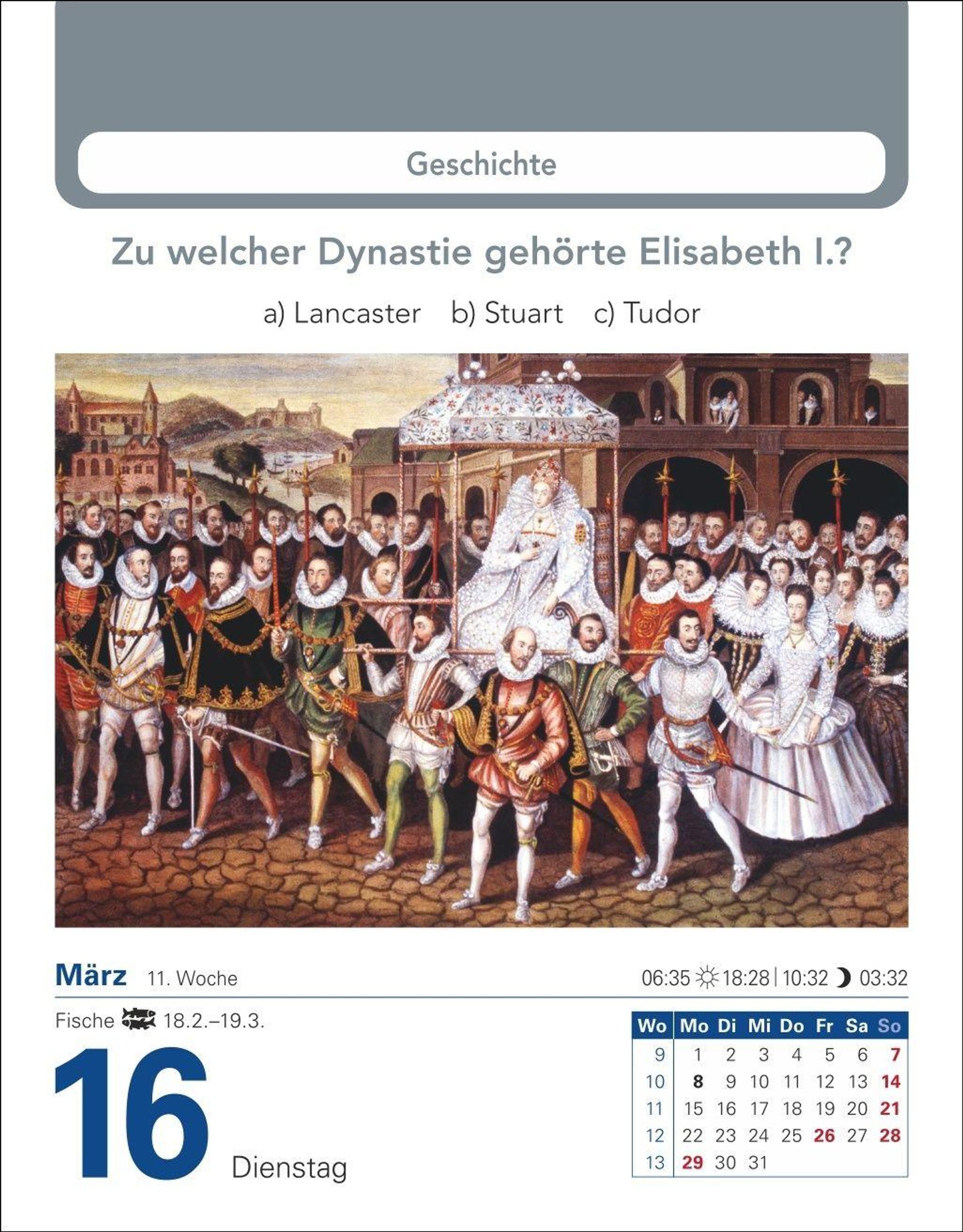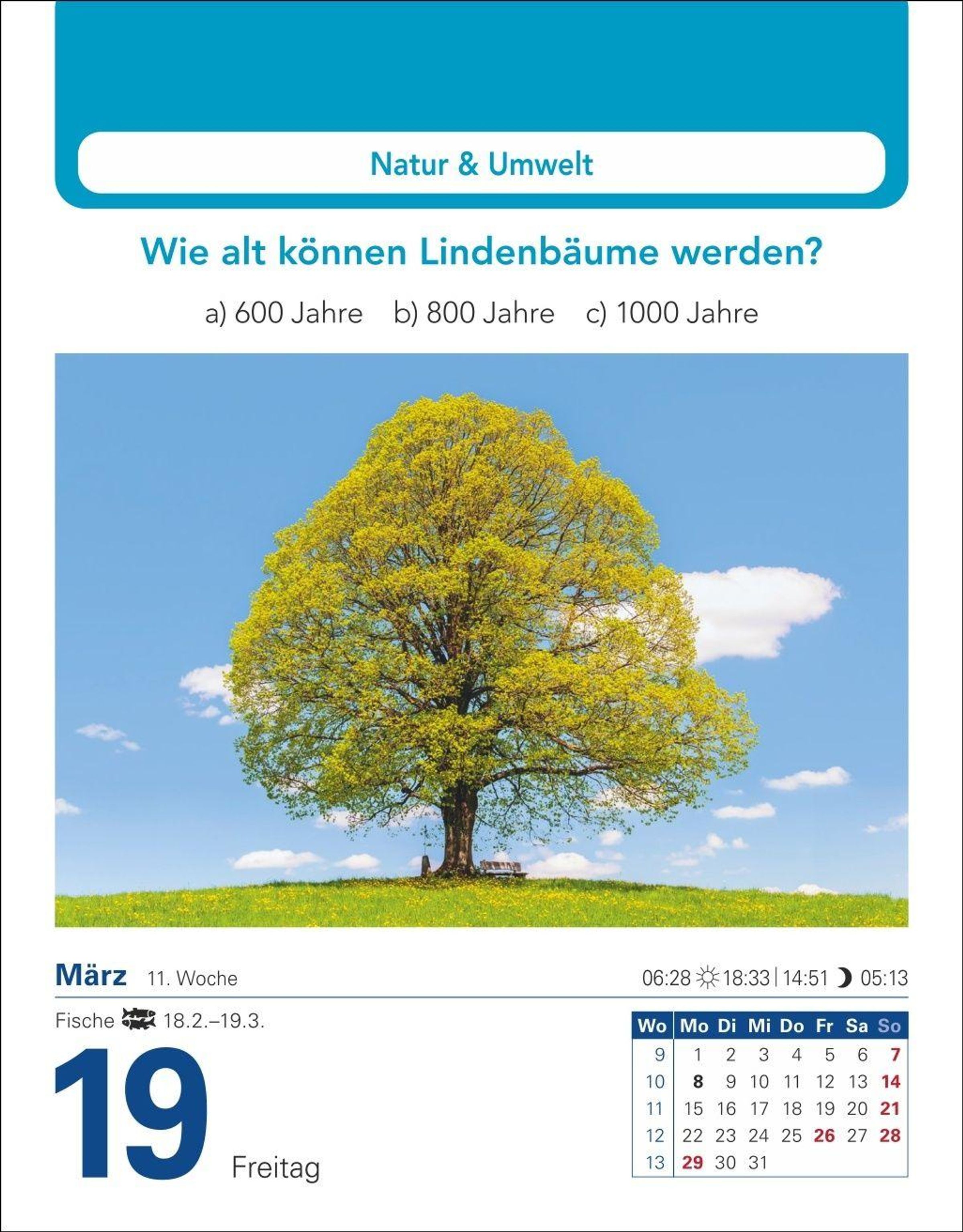 Tagtäglich neuen Fakten auf die Spur kommen: Tischkalender mit über 300 Quizfragen aus den breiten Themenbereichen Politik und Zeitgeschichte, Gesellschaft, Wissenschaft, Kultur, Sport und Freizeit