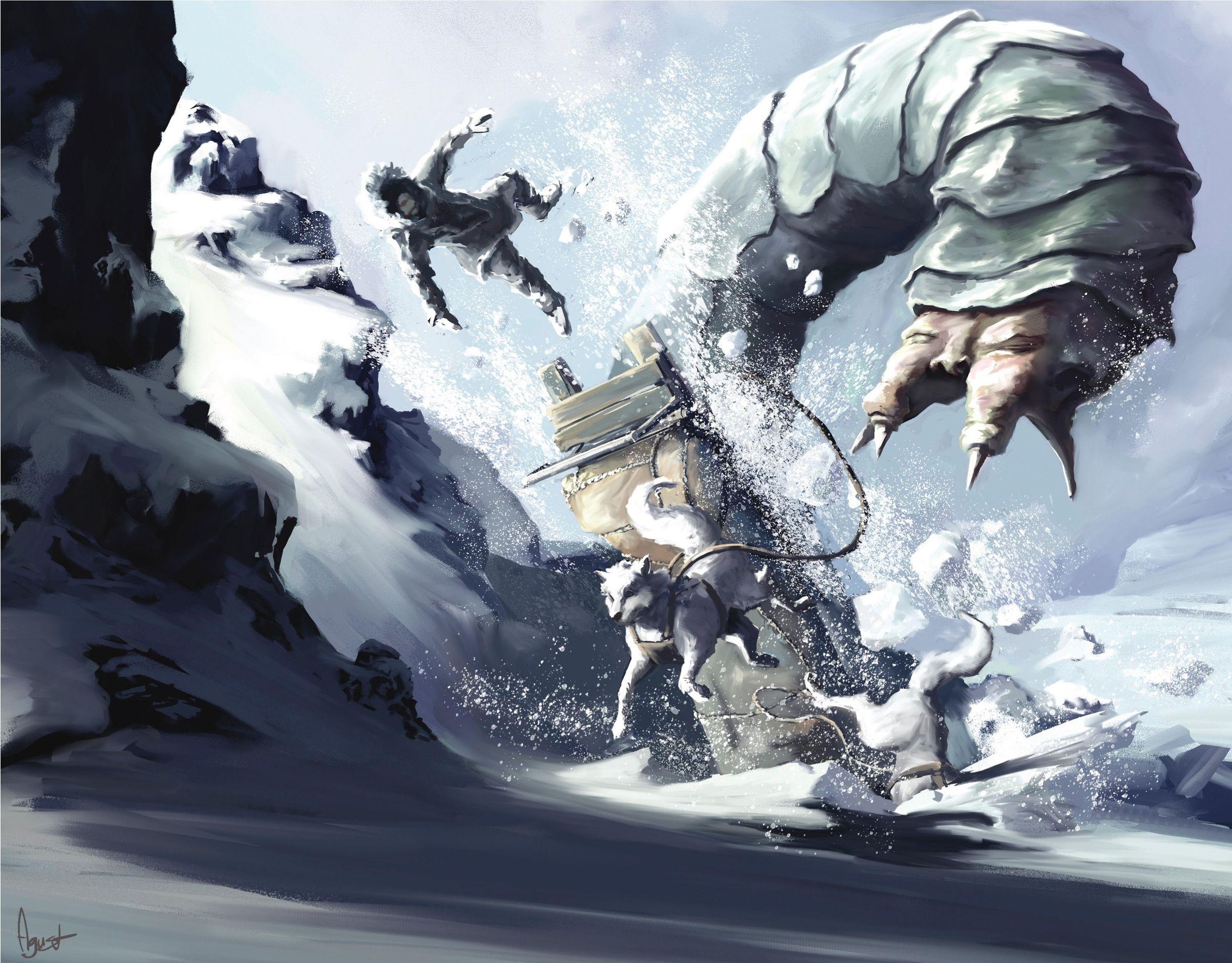 Über 60 Kreaturen werden in diesem reich illustrierten Kompendium beschrieben: von AAJUMAAQ , dem furchterregenden Hilfsgeist mit Hundeschädel, dessen lange schwarze Finger alles verwesen lassen, was sie berühren, bis UMIARISSAT , den gefährlichen Bootsleuten, die sich in Robben verwandeln. Die Geschichten von ANGAKKUT , den Schamanen, die in Trance zwischen den Welten reisen, enthüllen eine komplexe spirituelle Dimension. SASSUMA ARNAA wacht über die Meerestiere, ANINGAAQ lenkt vom Mond aus die Geschicke der Menschen, und der AMAROQ , ein Riesenwolf, durchstreift die Wollgrasebenen am Eisschild.