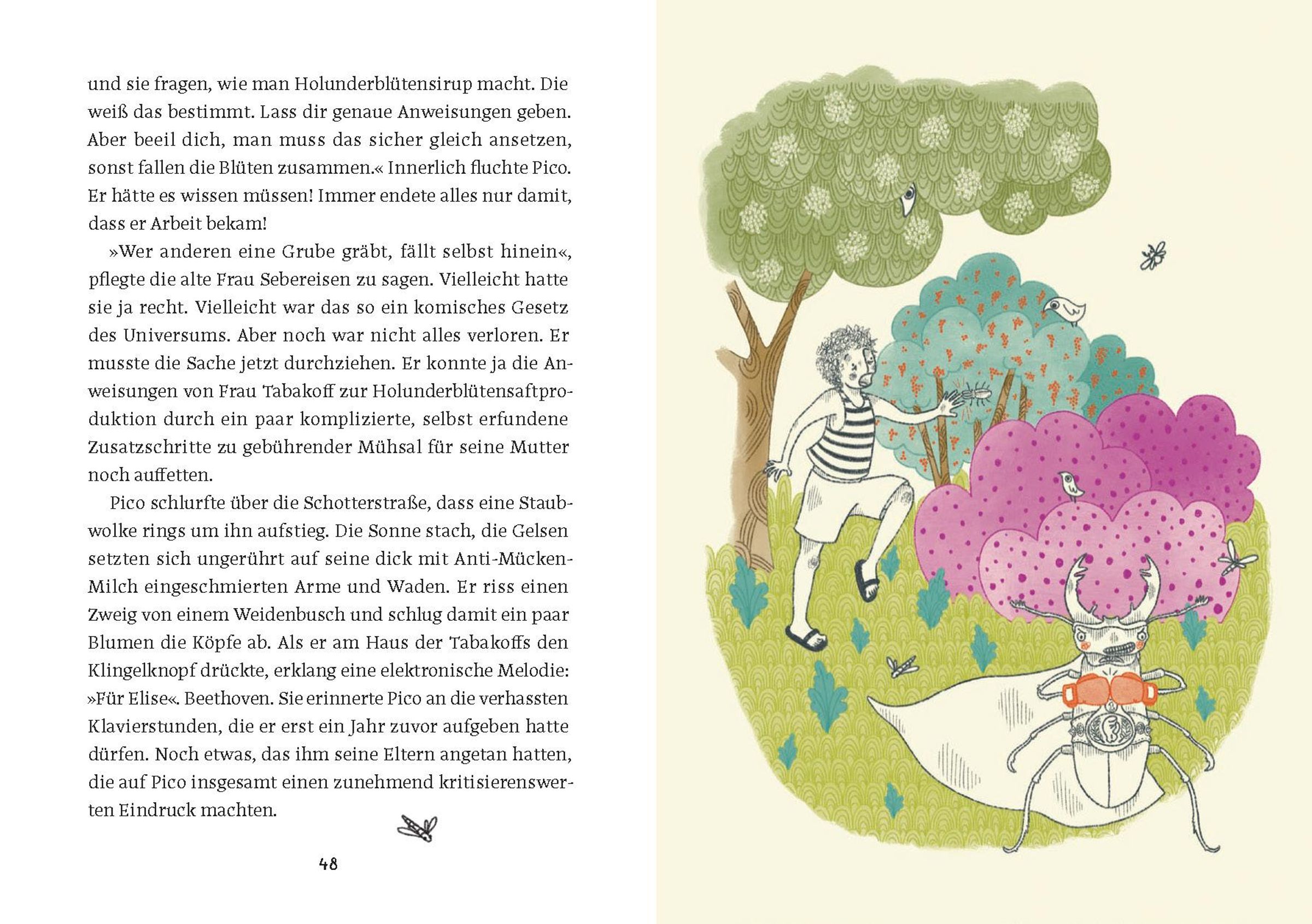 Biber auf dem Vormarsch! Sommerferien in den Donauauen? Picos Eltern haben den All-Inclusive-Urlaub am Mittelmeer abgesagt und beschlossen, in einer modrigen Hütte nahe dem Naturschutzgebiet zu hausen. Mücken statt Meeresgischt, Ruderboot statt Speedboat und "Lackelwasser" statt Pool-Landschaft. Die schlimmsten Sommerferien aller Zeiten sind vorprogrammiert. Zum Glück gibt es die Nachbarstochter Juanita, mit der Pico die Gegend erkundet. Nachmittags pirschen sie durch die Donauauen und entdecken neben Kormoranen und rabiaten Hirschkäfern auch Biber, die sie sich in der Nachbarschaft ziemlich unbeliebt machen. Sie fällen Bäume, stehlen Karotten und haben zu guter Letzt sogar Picos Hausfasan auf dem Gewissen. Es wundert also wirklich niemanden, als eines Tages Flumy, das älteste Biber-Männchen, erschlagen im Gebüsch aufgefunden wird. Doch wer war der Täter? Verdächtig ist so gut wie jeder. Pico und Juanita beschließen, den Schuldigen zu fassen.