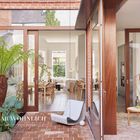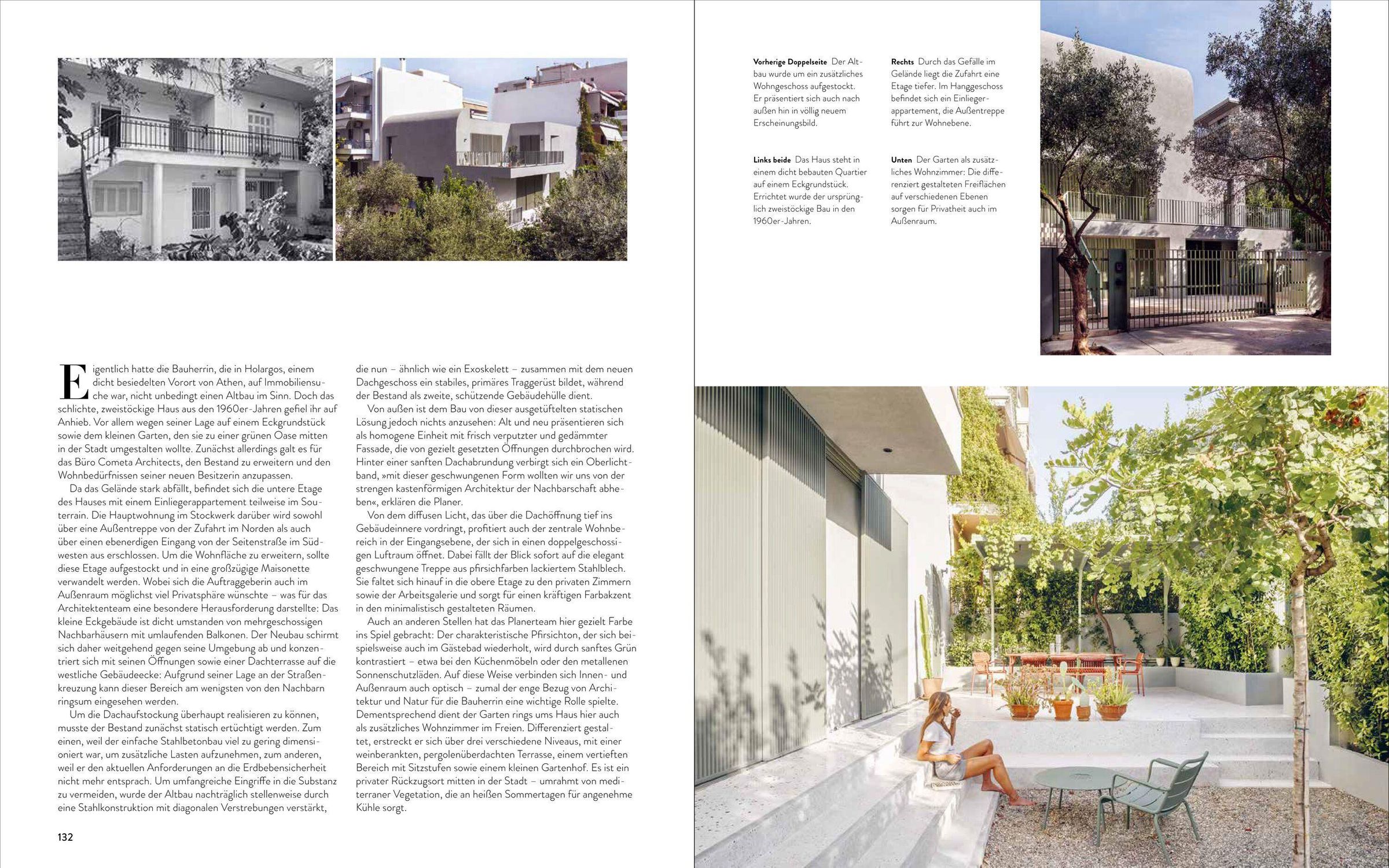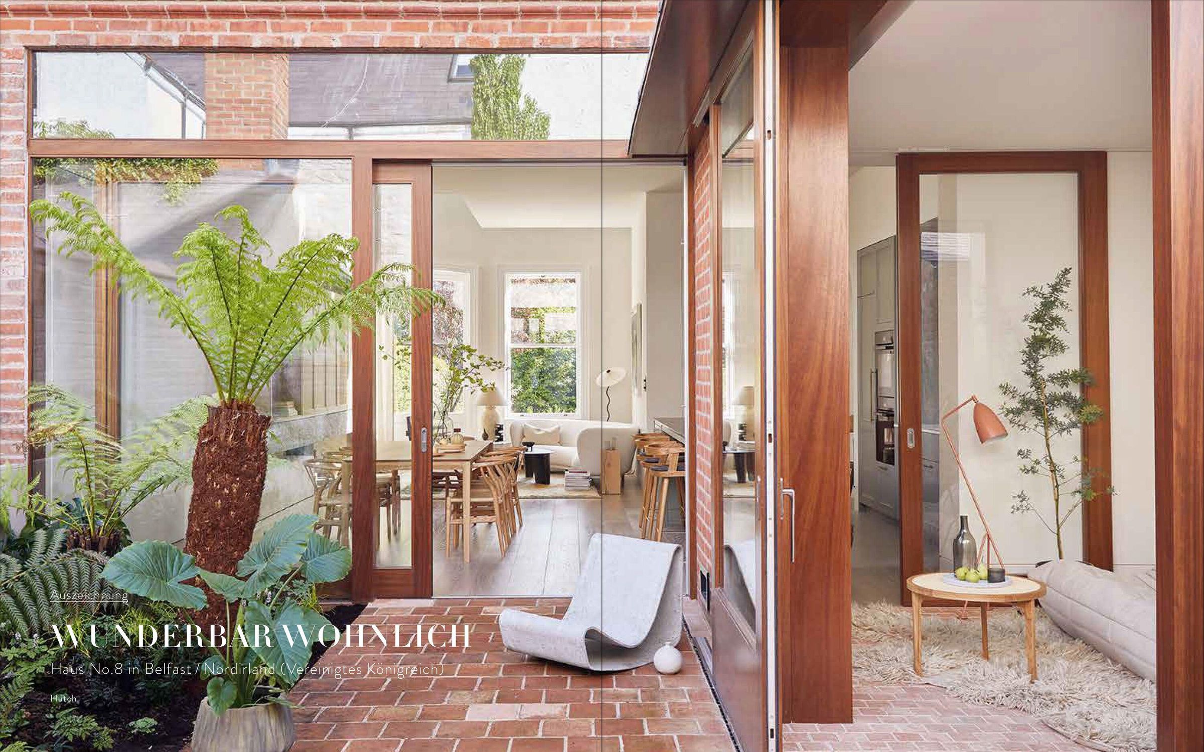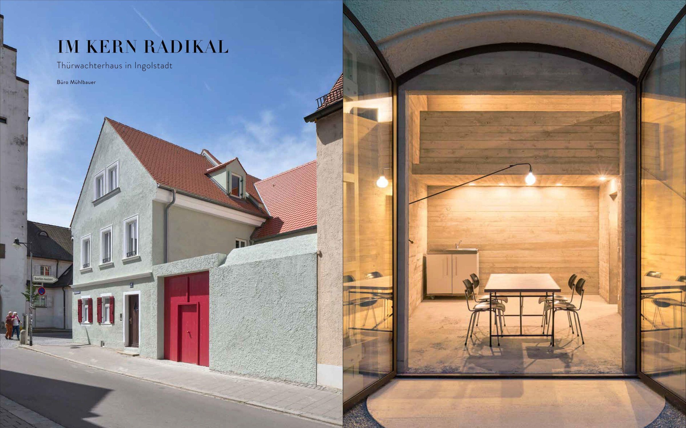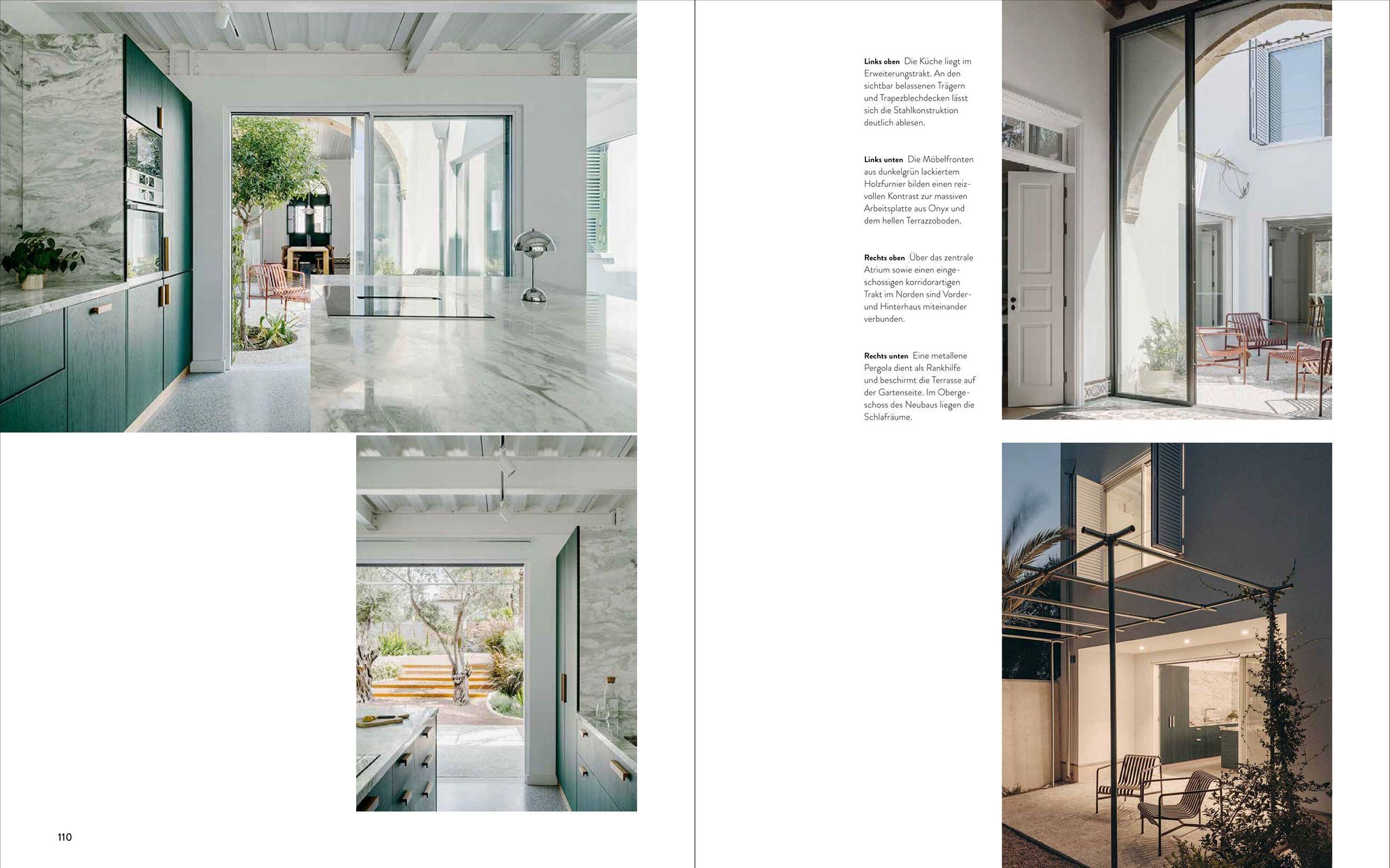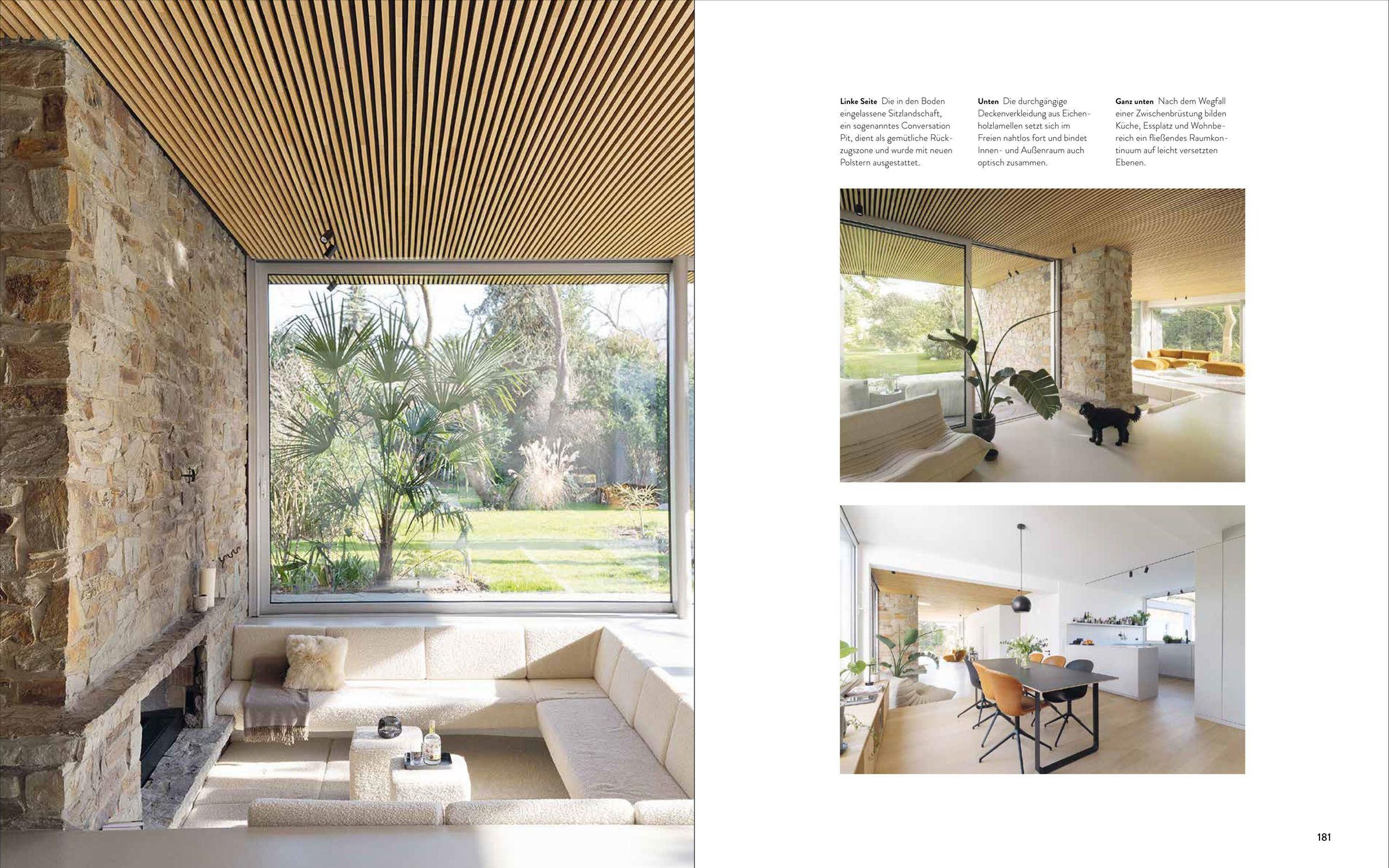 Titel: "HÄUSER. DIE BESTEN UMBAUTEN". Moderne Küche mit Holz- und Backsteinakzenten, minimalistisches Design, Prestel-Verlag., Buch