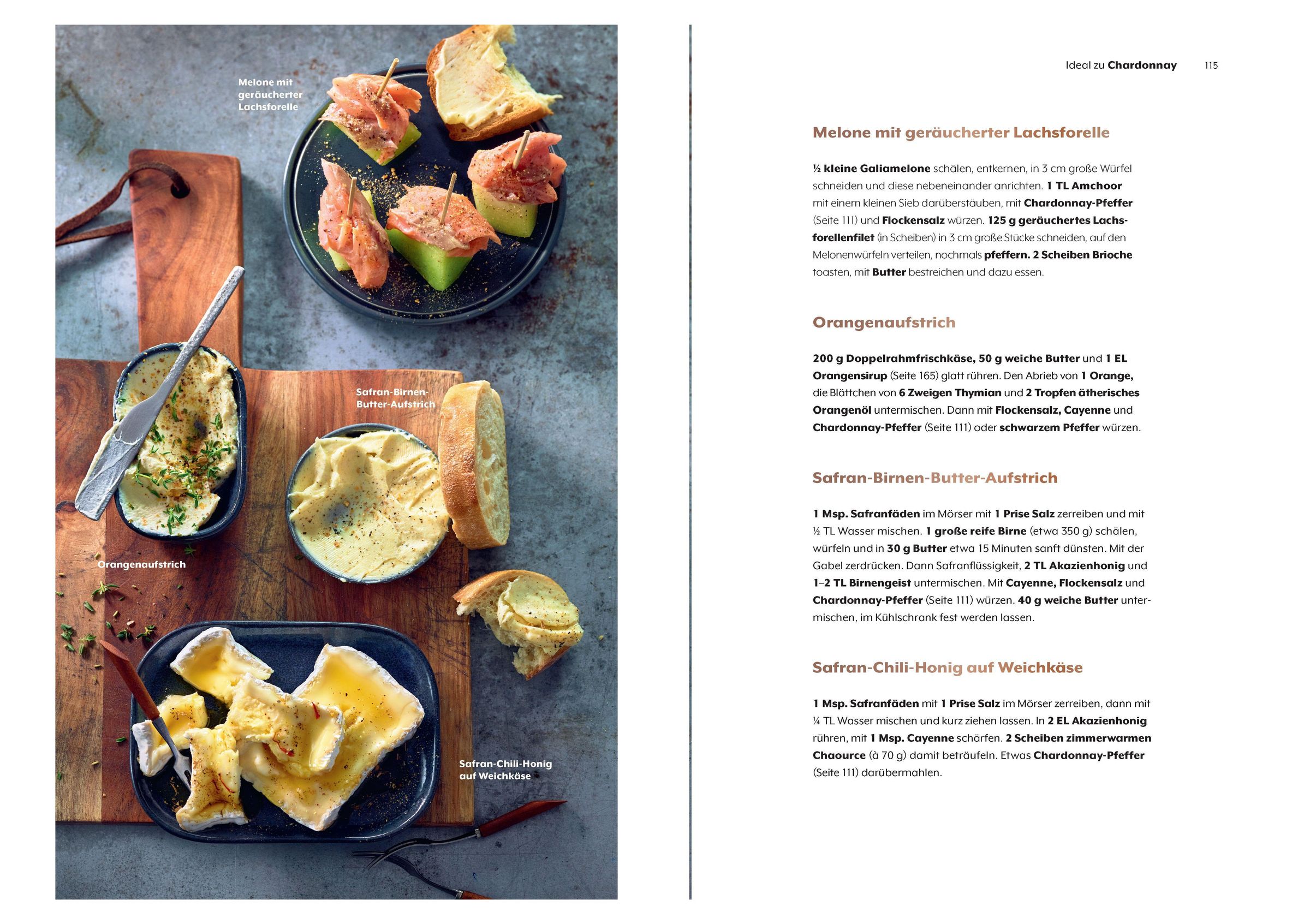 - Auf die Rebsorten abgestimmte Zutaten und Gewürze