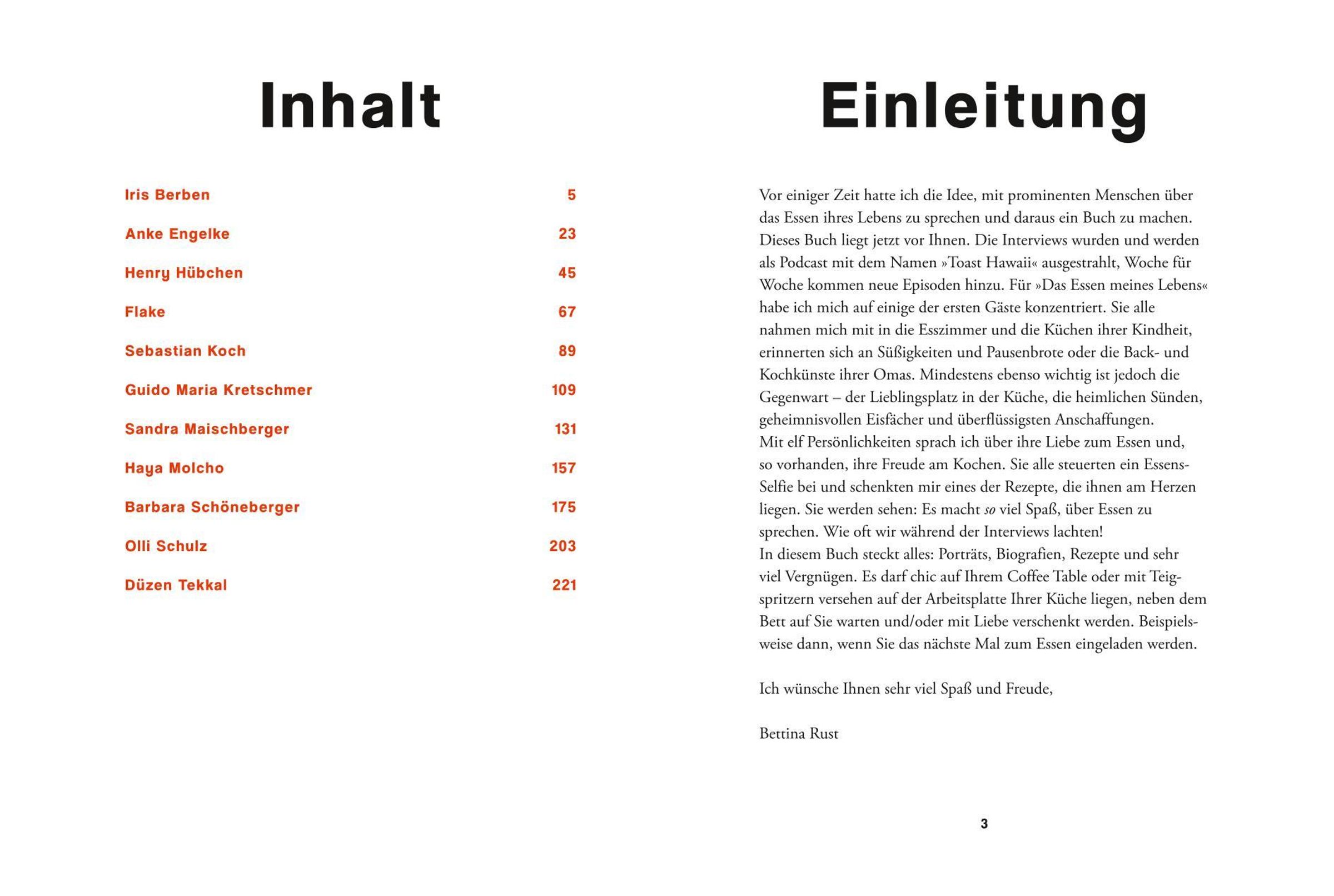 ... auf diese eingängige Formel könnte man das Erfolgsrezept der Moderatorin und Journalistin Bettina Rust bringen, die in ihrem Podcast "Toast Hawaii" hochkarätige Gäste in ihrer Küche empfängt. Prominente wie Anke Engelke, Guido Maria Kretschmer, Olli Schulz oder Iris Berben erzählen über ihre ganz persönlichen kulinarischen Vorlieben oder Abneigungen, aber auch über ihre Wünsche und Träume, ihre Erinnerungen und Familiengeschichten. In ihrem Buch zeichnet Bettina Rust intime Porträts einzigartiger Persönlichkeiten, die wir über das Thema "Essen" ganz neu kennenlernen - denn die inspirierendsten Gespräche werden bekanntlich in der Küche geführt.