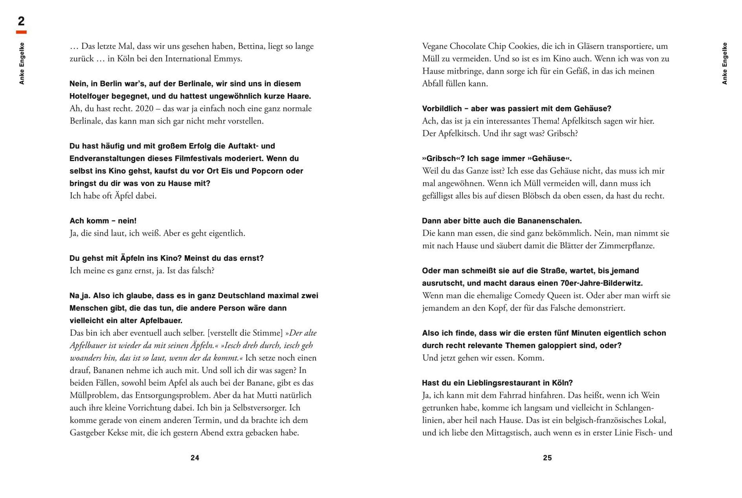 - Küchengeschichten von Iris Berben, Sandra Maischberger, Flake, Henry Hübchen, Sebastian Koch, Guido Maria Kretschmer, Anke Engelke, Haya Molcho, Barbara Schöneberger, Olli Schulz, Düzen Tekkal