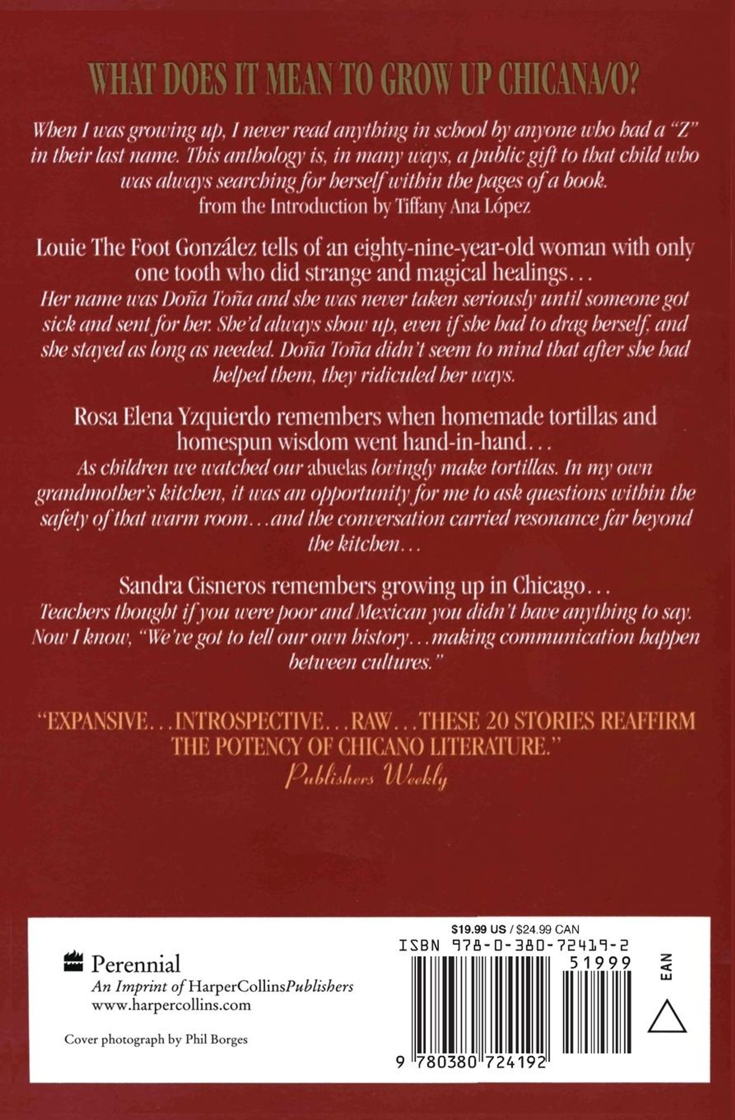 What Does It Mean To Grow Up Chicana / o?When I was growing up, I never read anything in school by anyone who had a "Z" in their last name. This anthology is, in many ways, a public gift to that child who was always searching for herself whithin the pages of a book. from the Introduction by Tiffany Ana Lopez