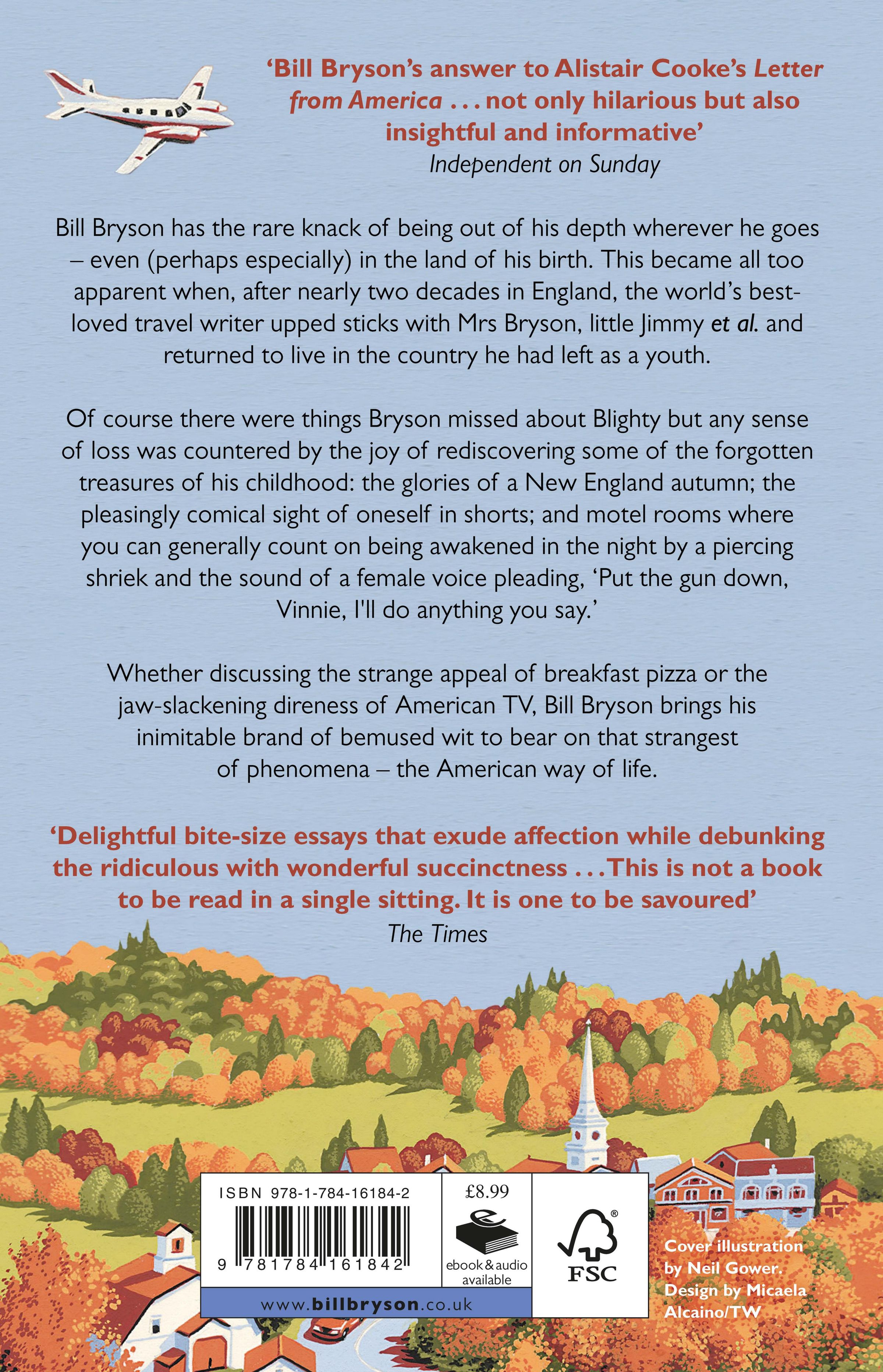 Bill Bryson has the rare knack of being out of his depth wherever he goes - even (perhaps especially) in the land of his birth. This became all too apparent when, after nearly two decades in England, the world's best-loved travel writer upped sticks with Mrs Bryson, little Jimmy et al. and returned to live in the country he had left as a youth. Of course there were things Bryson missed about Blighty but any sense of loss was countered by the joy of rediscovering some of the forgotten treasures of his childhood: the glories of a New England autumn; the pleasingly comical sight of oneself in shorts; and motel rooms where you can generally count on being awakened in the night by a piercing shriek and the sound of a female voice pleading, 'Put the gun down, Vinnie, I'll do anything you say.' Whether discussing the strange appeal of breakfast pizza or the jaw-slackening direness of American TV, Bill Bryson brings his inimitable brand of bemused wit to bear on that strangest of phenomena - the American way of life.