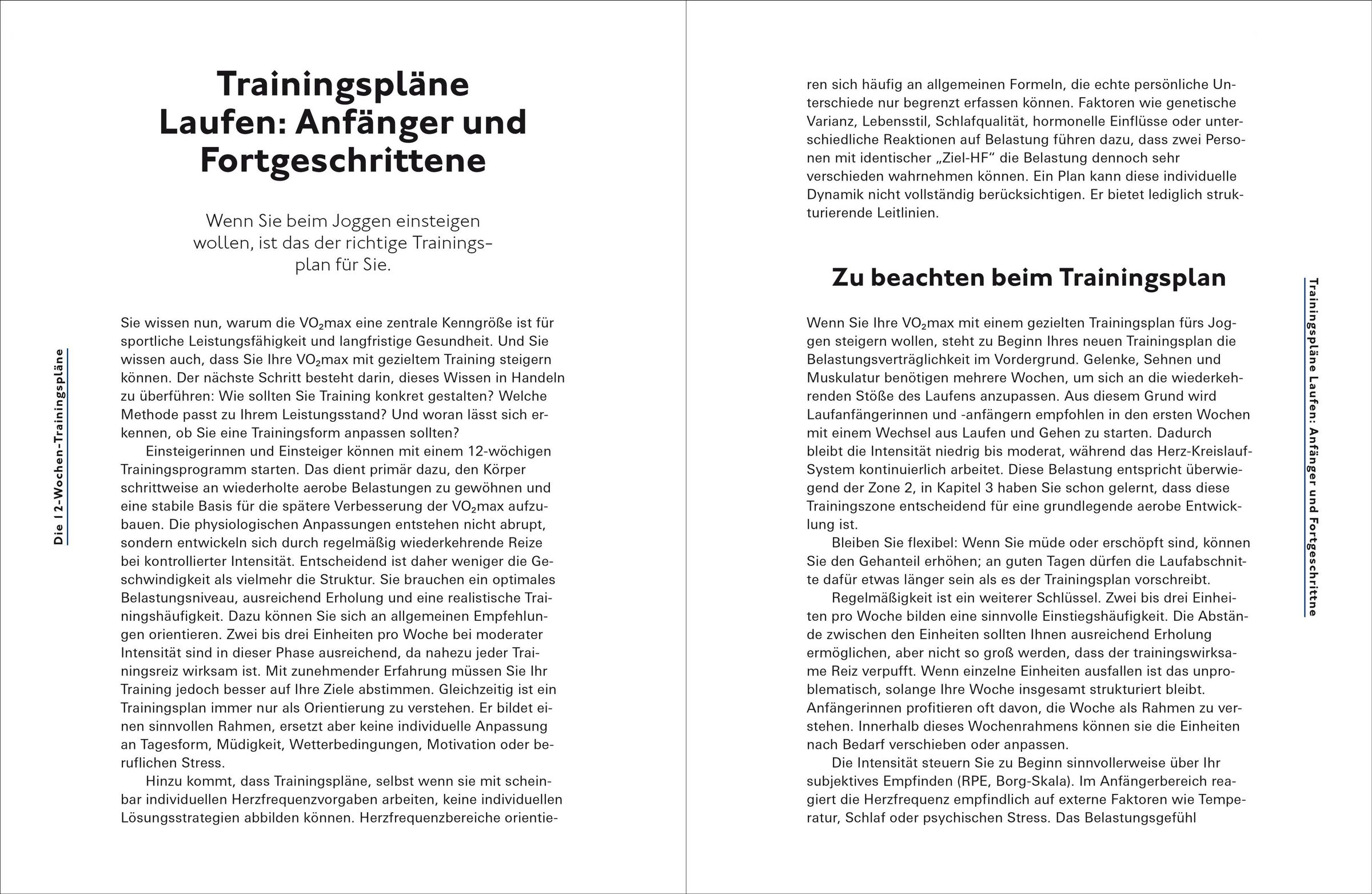 Das volle Potenzial ausschöpfen. Sportwissenschaftler Prof. Dr. Billy Sperlich zeigt, wie sich dieser Wert ermitteln und gezielt steigern lässt - mit Fitness-Tracker, Cooper-Test oder professioneller Spiroergometrie. Auf dieser Basis liefert das Buch passgenaue 12-Wochen-Trainingspläne für Laufen, Radfahren, Schwimmen und einen Mix aus allen drei Sportarten, jeweils für Einsteiger und Fortgeschrittene. Erprobte Methoden wie HIIT und Zone-2-Training sorgen für maximale Wirkung bei individuellem Aufwand.