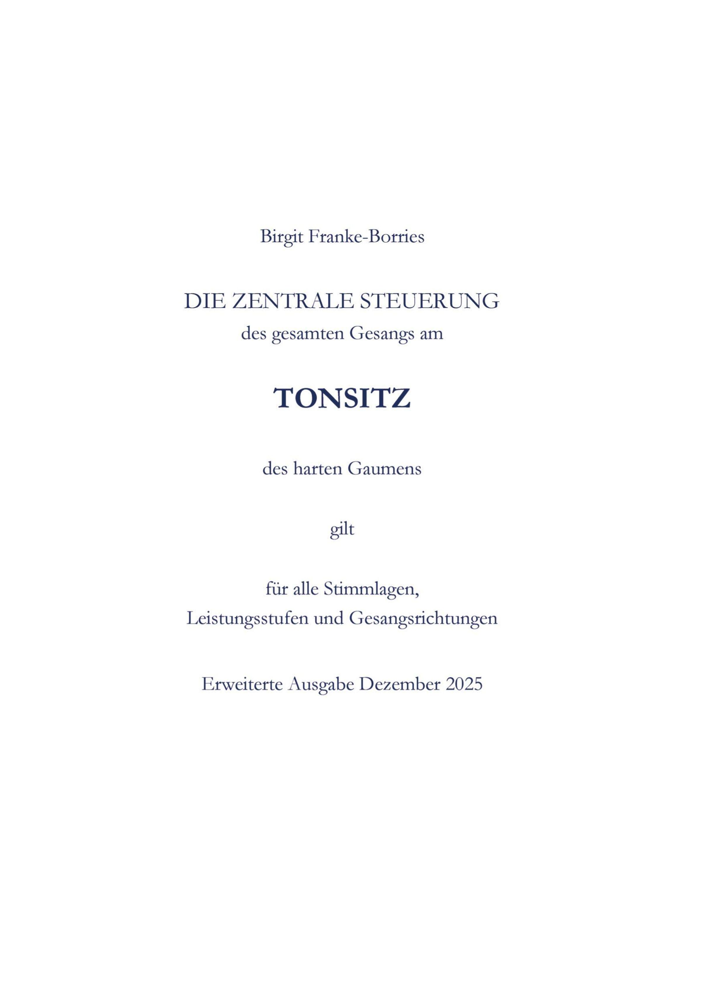 Hier erfahren Sie, wie alle gesangstechnischen Verläufe am Tonsitz des harten Gaumens so aktiviert werden, dass ein gesunder klangreiner, tragfähiger und ausdrucksstarker Gesang entsteht, der ohne Verspannungen und Fehlhaltungen bis in die hohen Gesangslagen das Publikum eines Konzert- oder Opernsaales bis hin zur letzten Reihe mühelos erreicht.