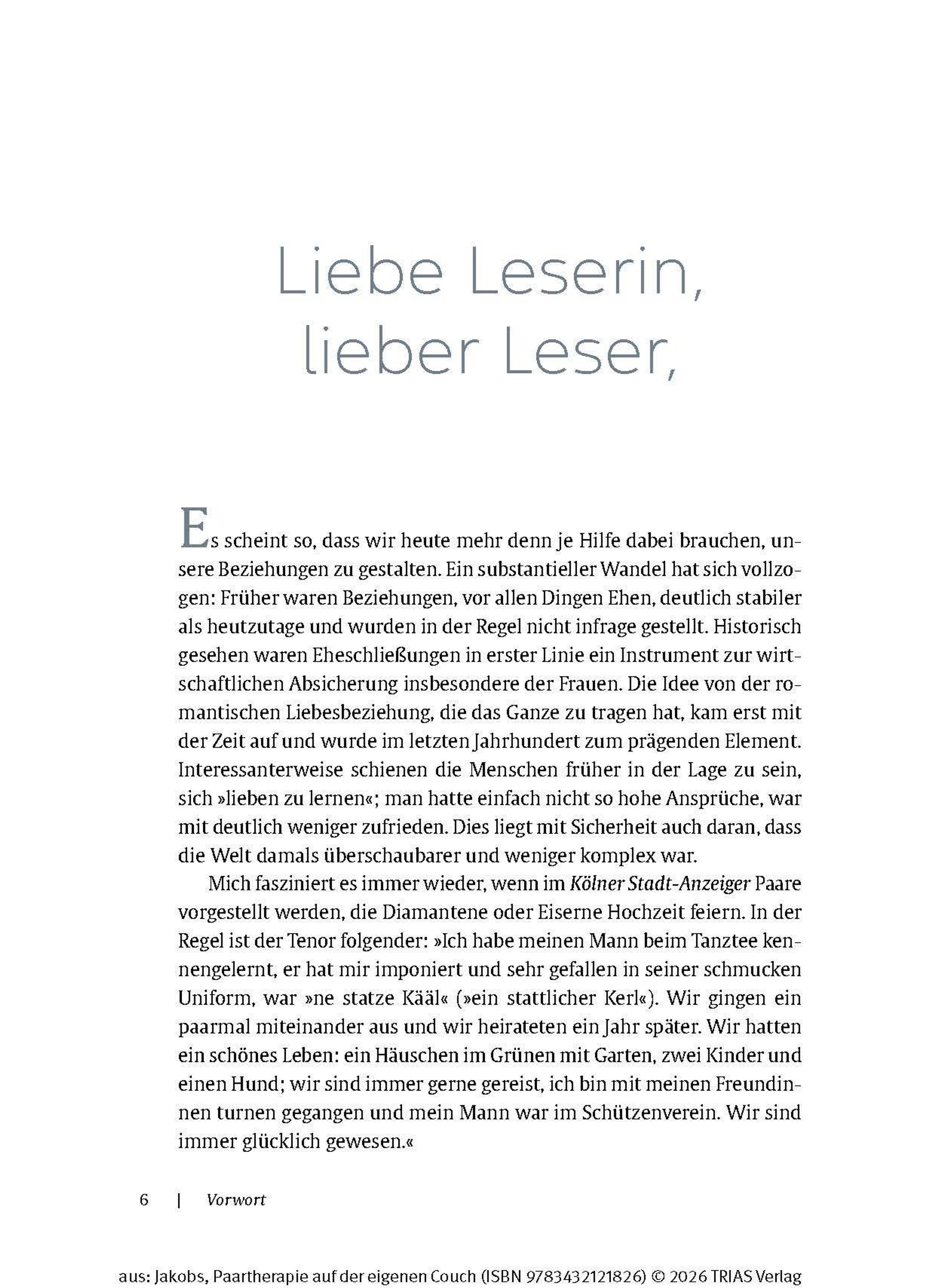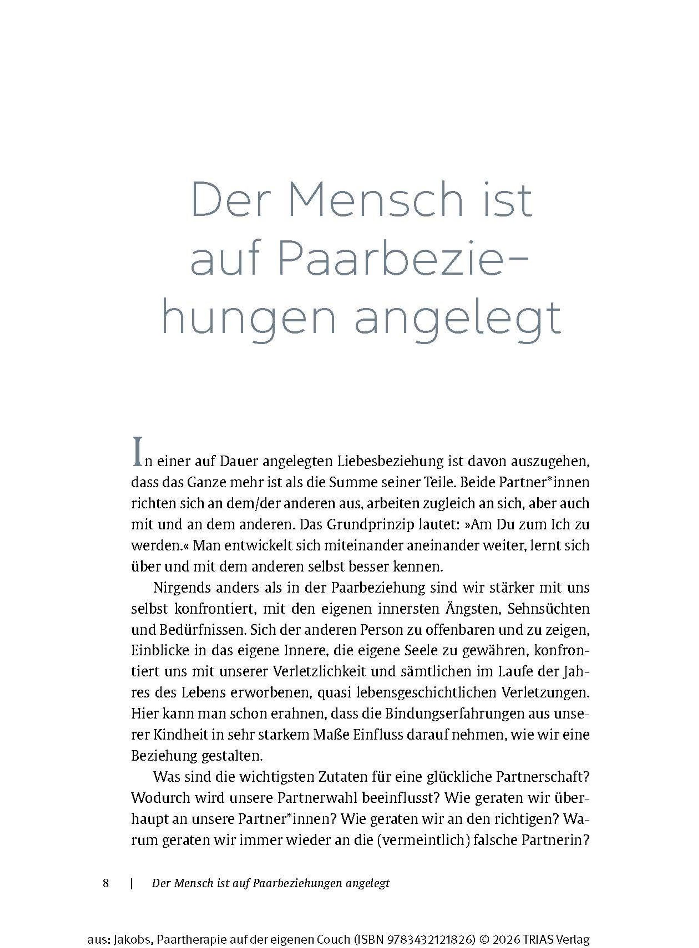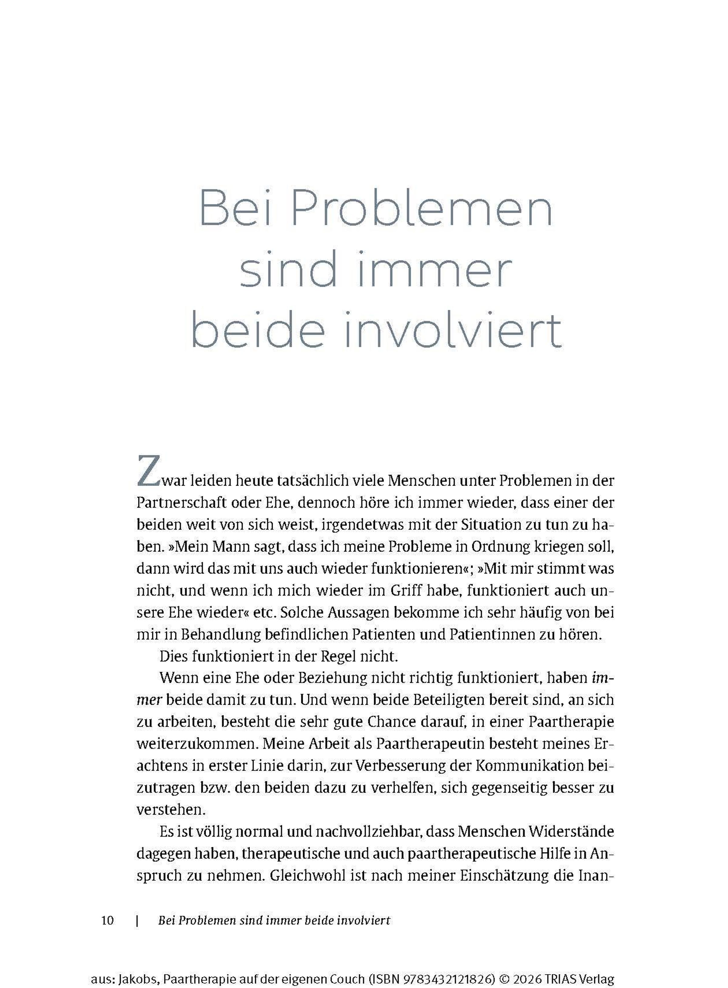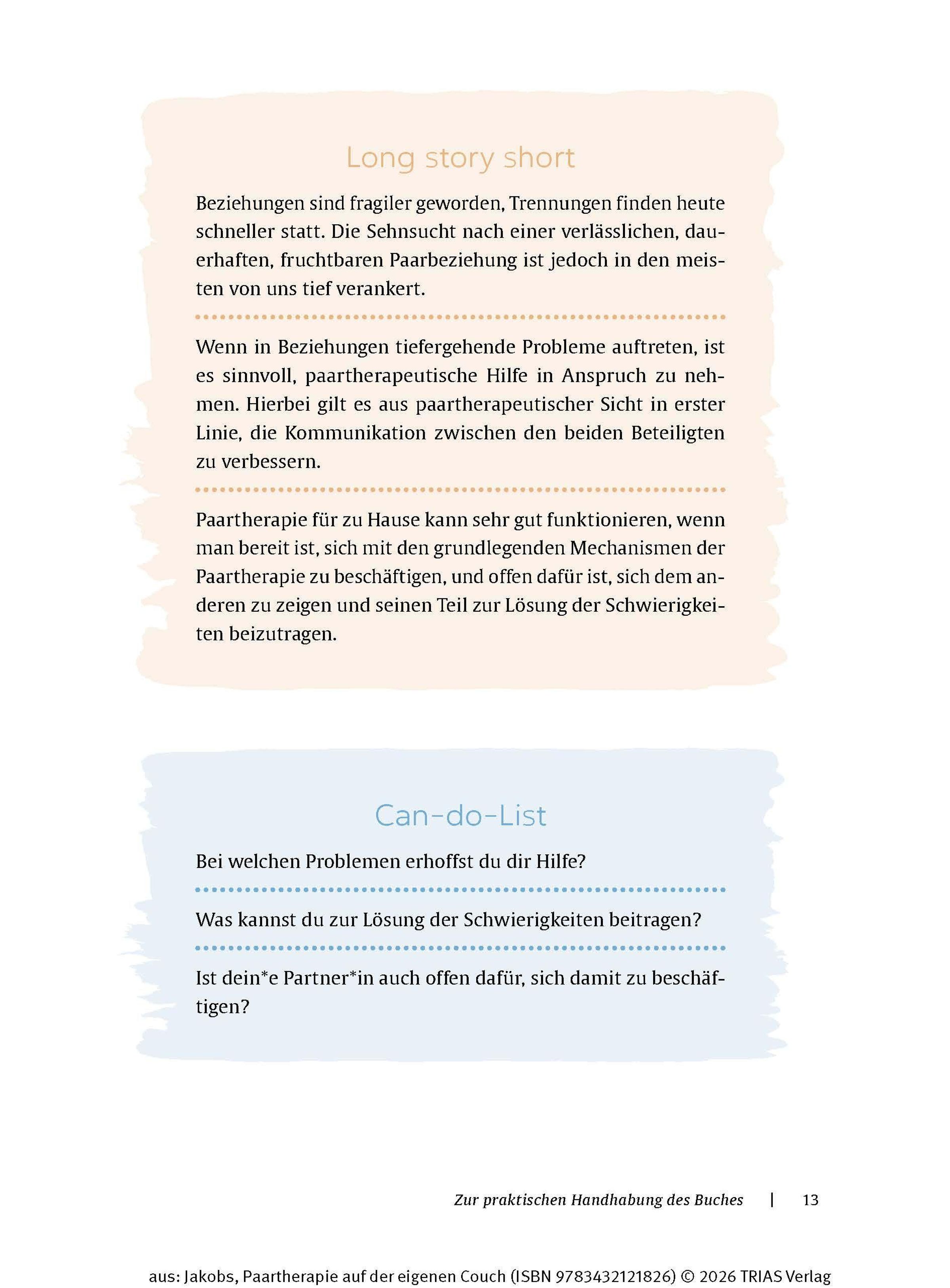 Steckt ihr als Paar in einer Krise und spürt, wie Streit, schlechte Kommunikation und Verletzungen eure Partnerschaft belasten? Habt ihr das Gefühl, nicht mehr richtig zueinanderzufinden? Wenn ihr gemeinsam aus der Krise herausfinden und euch gemeinsam weiter entwickeln wollt, bietet euch dieses Buch eine wertvolle Unterstützung. Die Ärztin und Psychotherapeutin Dr. med. Birgit Jakobs zeigt euch, wie ihr gemeinsam eure Beziehung stärken und Vertrauen wieder aufbauen könnt:
