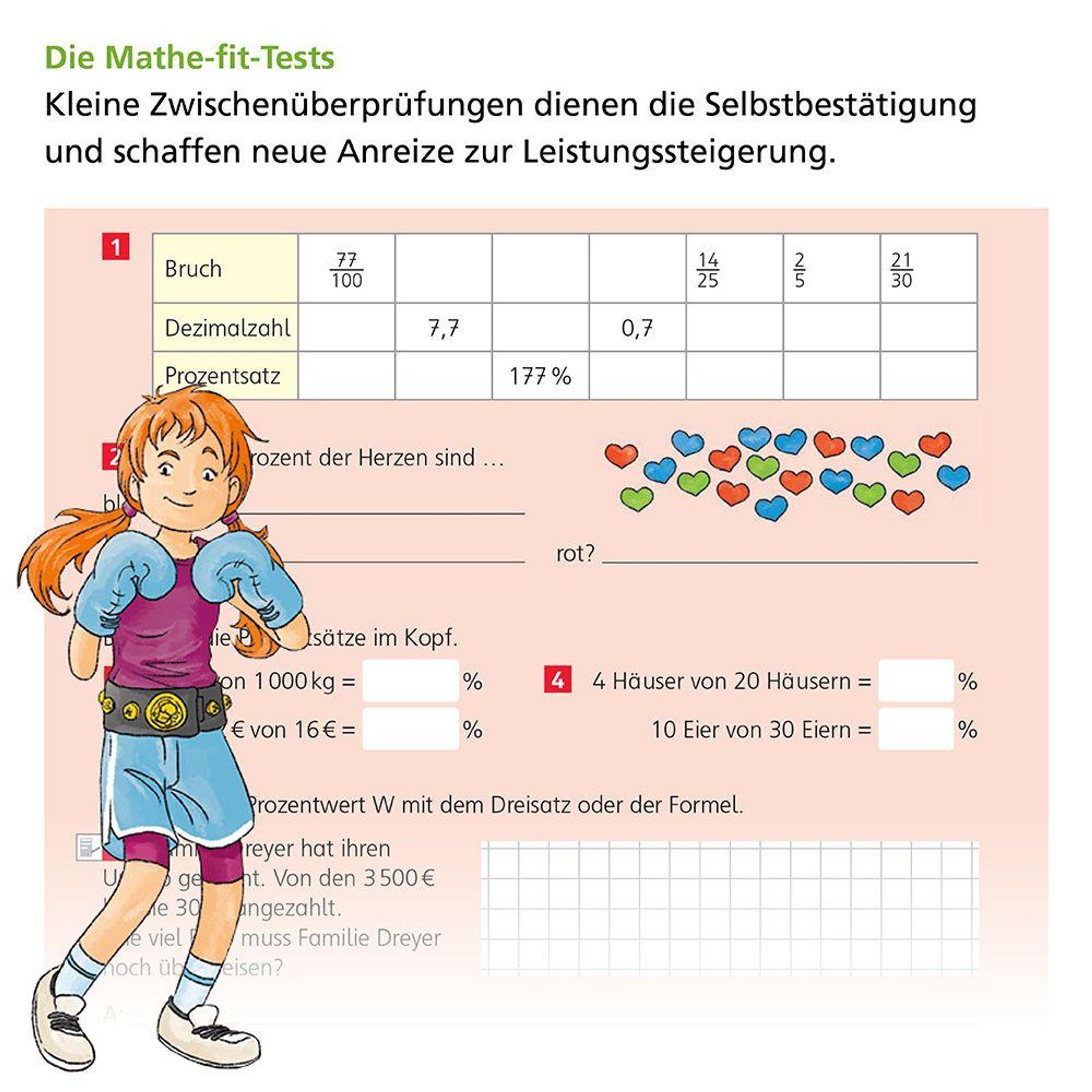 Weitere Themen sind die rationalen Zahlen, Terme und Gleichungen, der Dreisatz sowie das Prozent- und Wahrscheinlichkeitsrechnen.