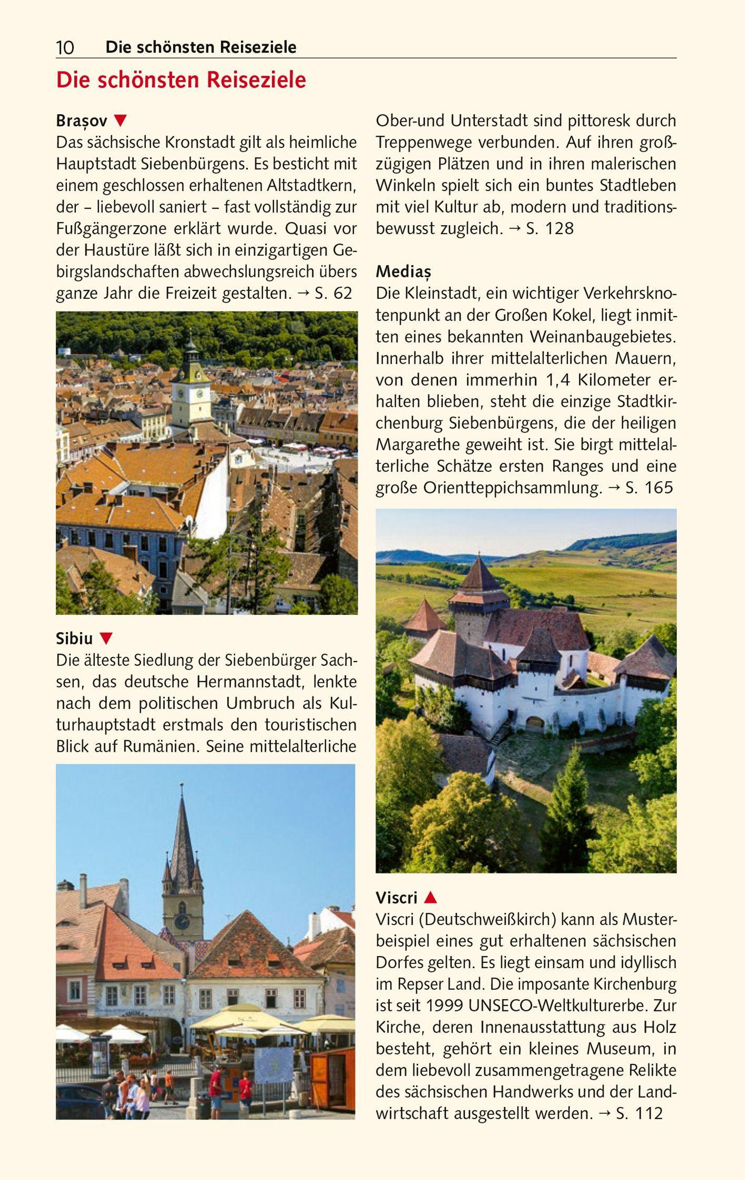 "Siweberjen" nennen die Siebenbürger Sachsen ihre Heimat am Karpatenbogen - ein ideales Urlaubsziel für Natur- und Kulturbegeisterte, Abenteuerlustige, Wanderer. Hier dehnen sich die letzten riesigen Urwälder Europas aus, viele davon in National- und Naturparks geschützt. In den Städten haben vor allem die Siebenbürger Sachsen ihre Spuren hinterlassen. Die heimliche Hauptstadt Bräov (Kronstadt) besticht mit ihrer malerischen Altstadt. Sighi¿oaras (Schäßburg) mittelalterliche Burganlage zählt zum UNESCO-Welterbe. Das historische Zentrum von Sibiu (Hermannstadt) erstrahlt ebenfalls wieder in altem Glanz, während in der Studentenstadt Cluj-Napoca (Klausenburg) buntes Nachtleben herrscht.