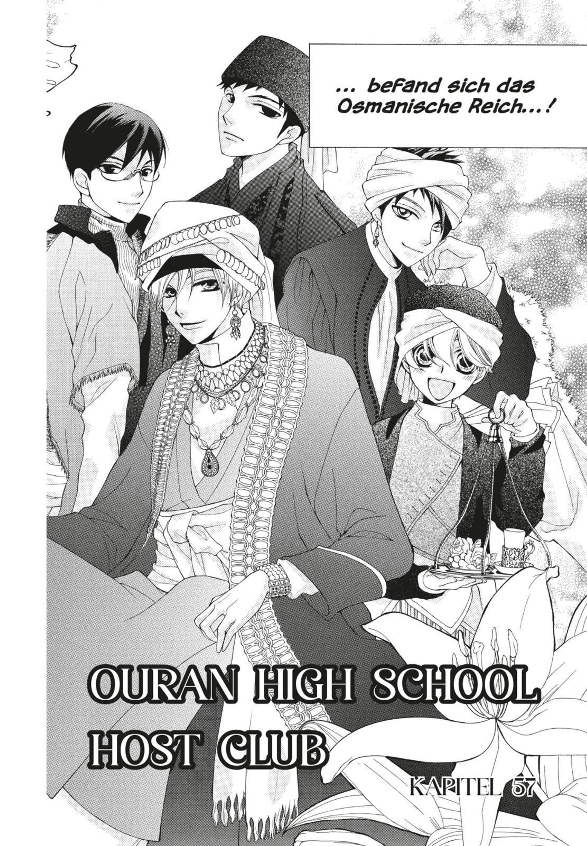Die Ouran High School ist eine Privatschule für die Sprösslinge der oberen Zehntausend. Als sich Haruhi Fujioka in das Musikzimmer 3 verirrt, steht sie plötzlich den sechs gut aussehenden Mitgliedern des 'Host Clubs' gegenüber. Vor lauter Aufregung stößt sie eine unfassbar teure Vase um. Nur gut, dass Haruhi dank ihres jungenhaften Aussehens selbst als Host durchgehen kann, und so wird sie verpflichtet neue Gäste anzuwerben, um ihre Schulden zu begleichen. Dabei darf natürlich nicht auffliegen, dass sie eigentlich ein Mädchen ist.