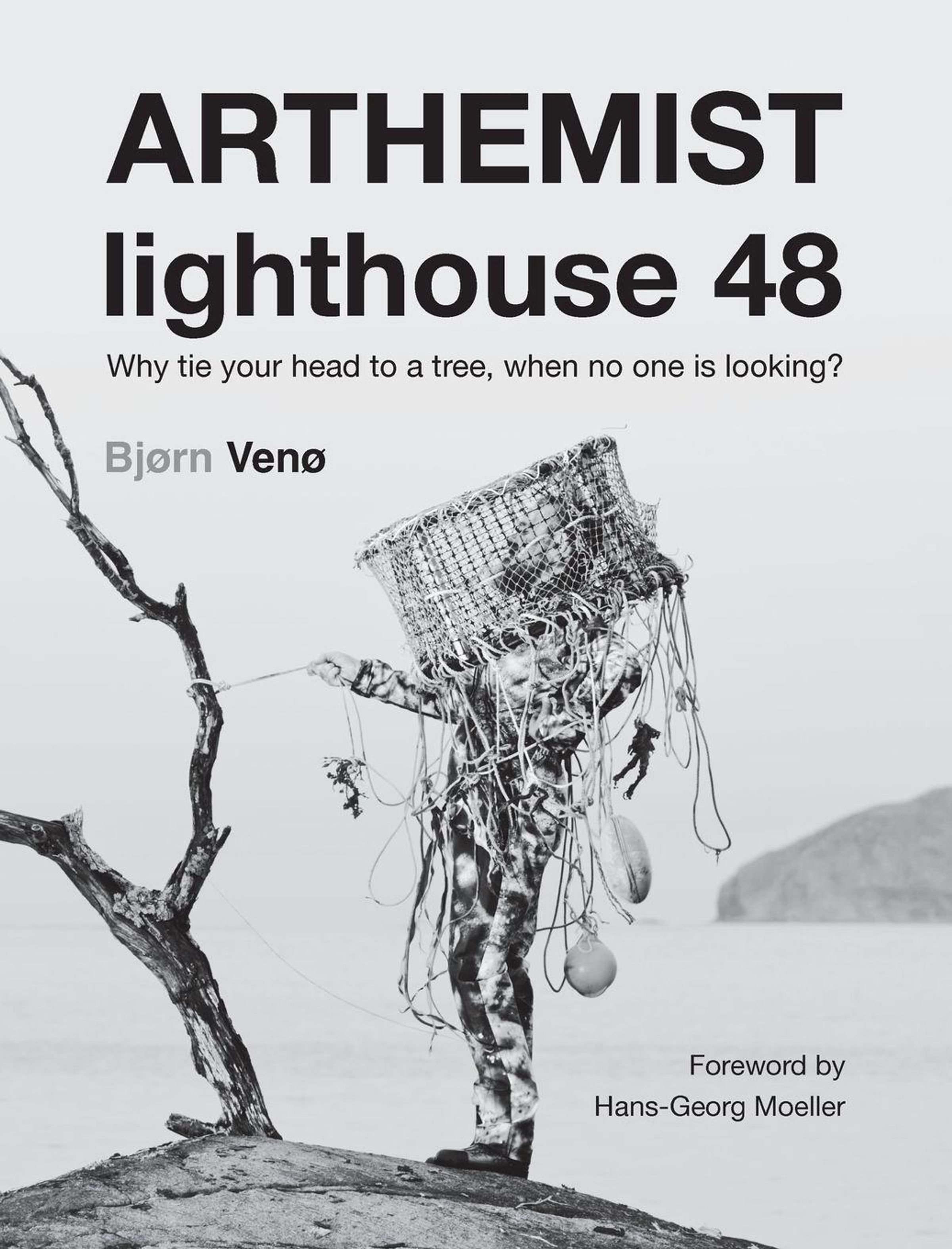 ARTHEMIST lighthouse 48. Why tie your head to a tree, when no one is looking? Bjørn Venø. Illustration eines verkleideten Menschen., Buch