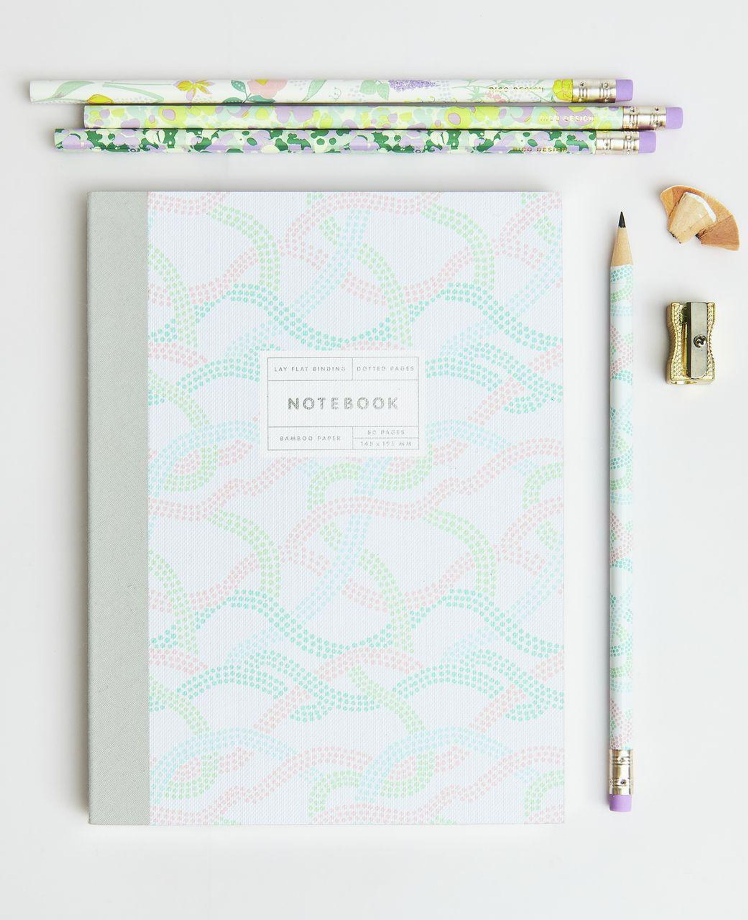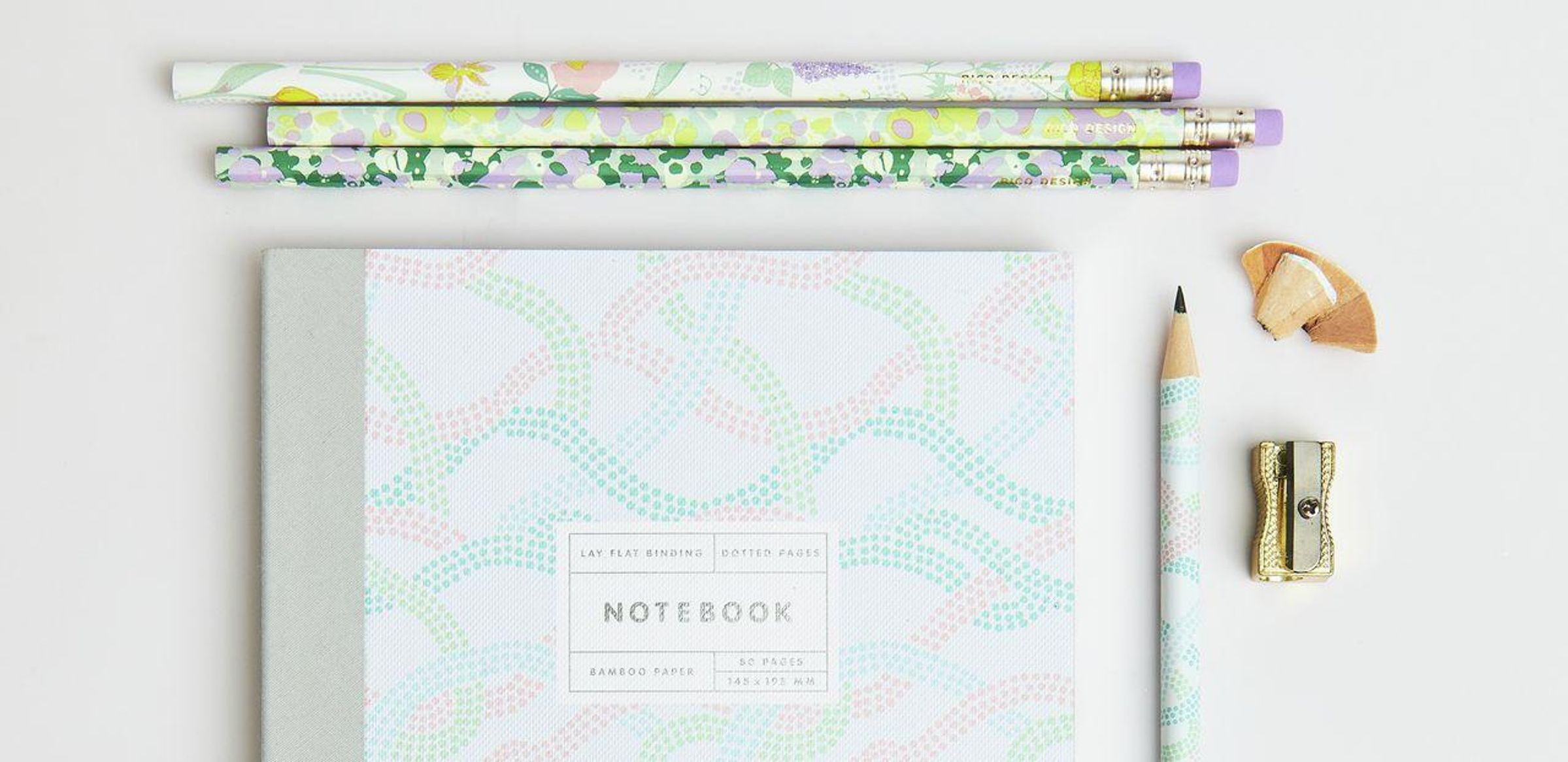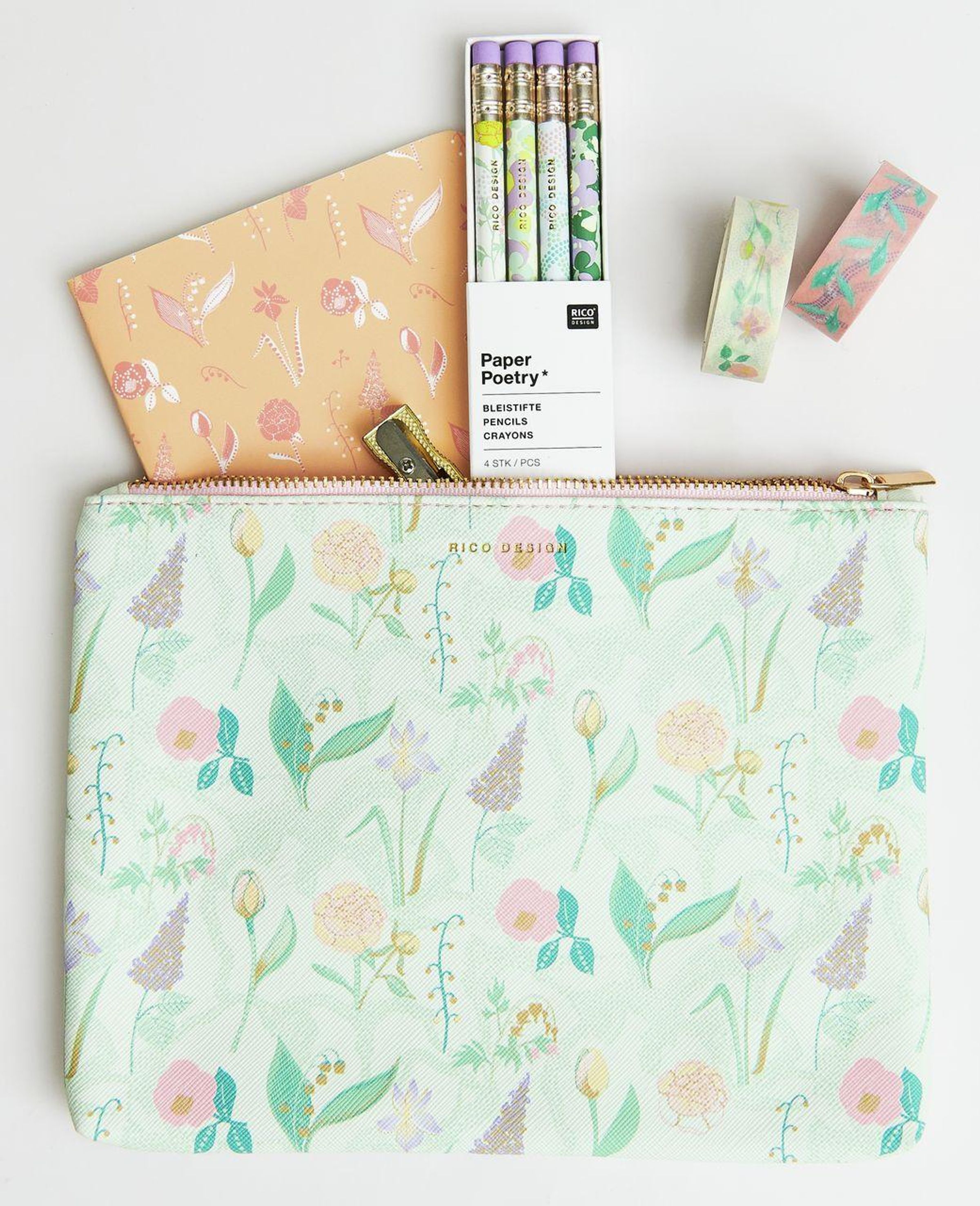 Das Bleistiftset umfasst vier Stifte mit floralen und marmorierten Designs. Die Stifte werden in einer plastikfreien Verpackung geliefert. Die Maße des Sets betragen 3, 2 × 17, 5 × 1 cm.- Set mit 4 Bleistiften