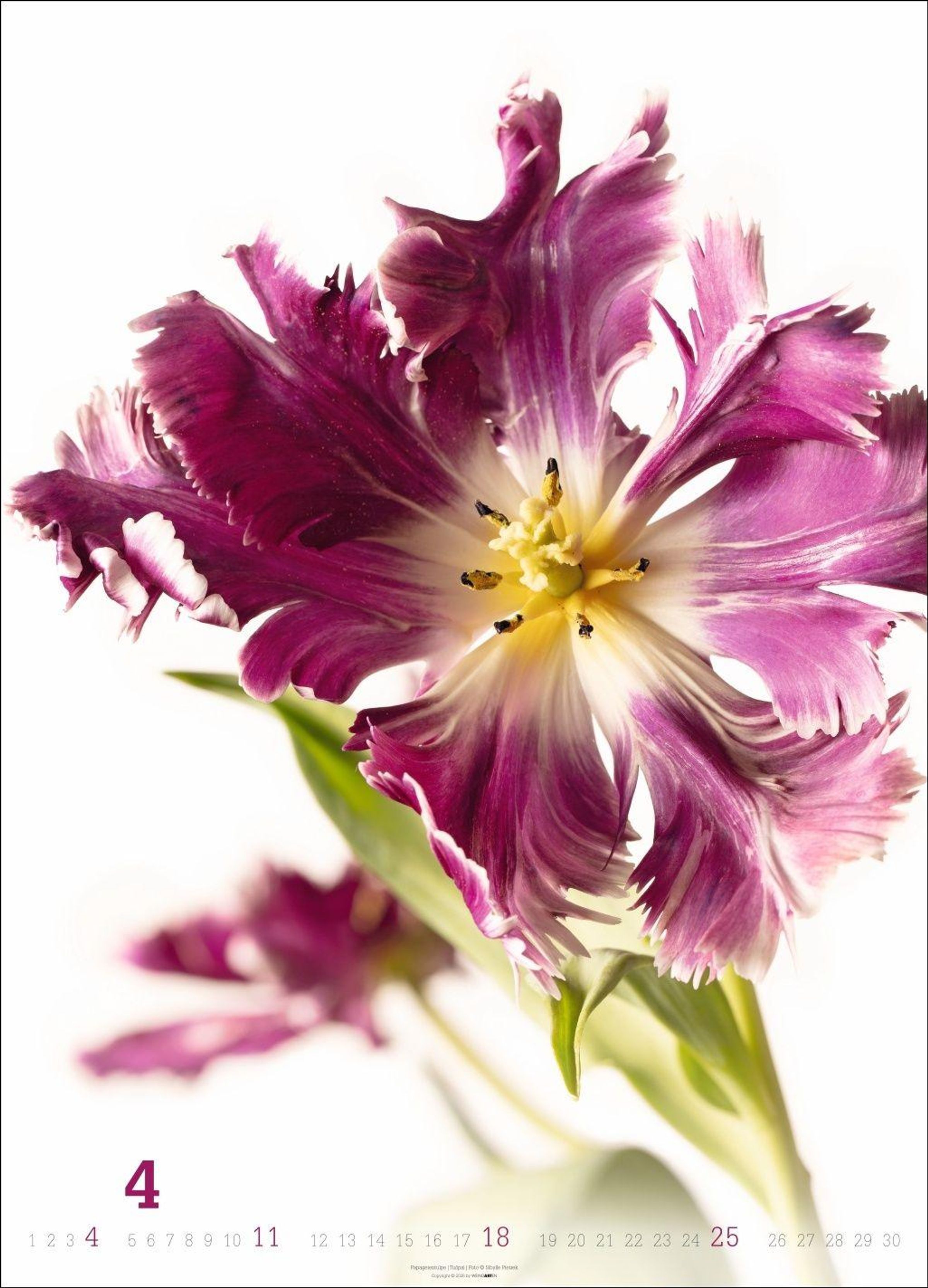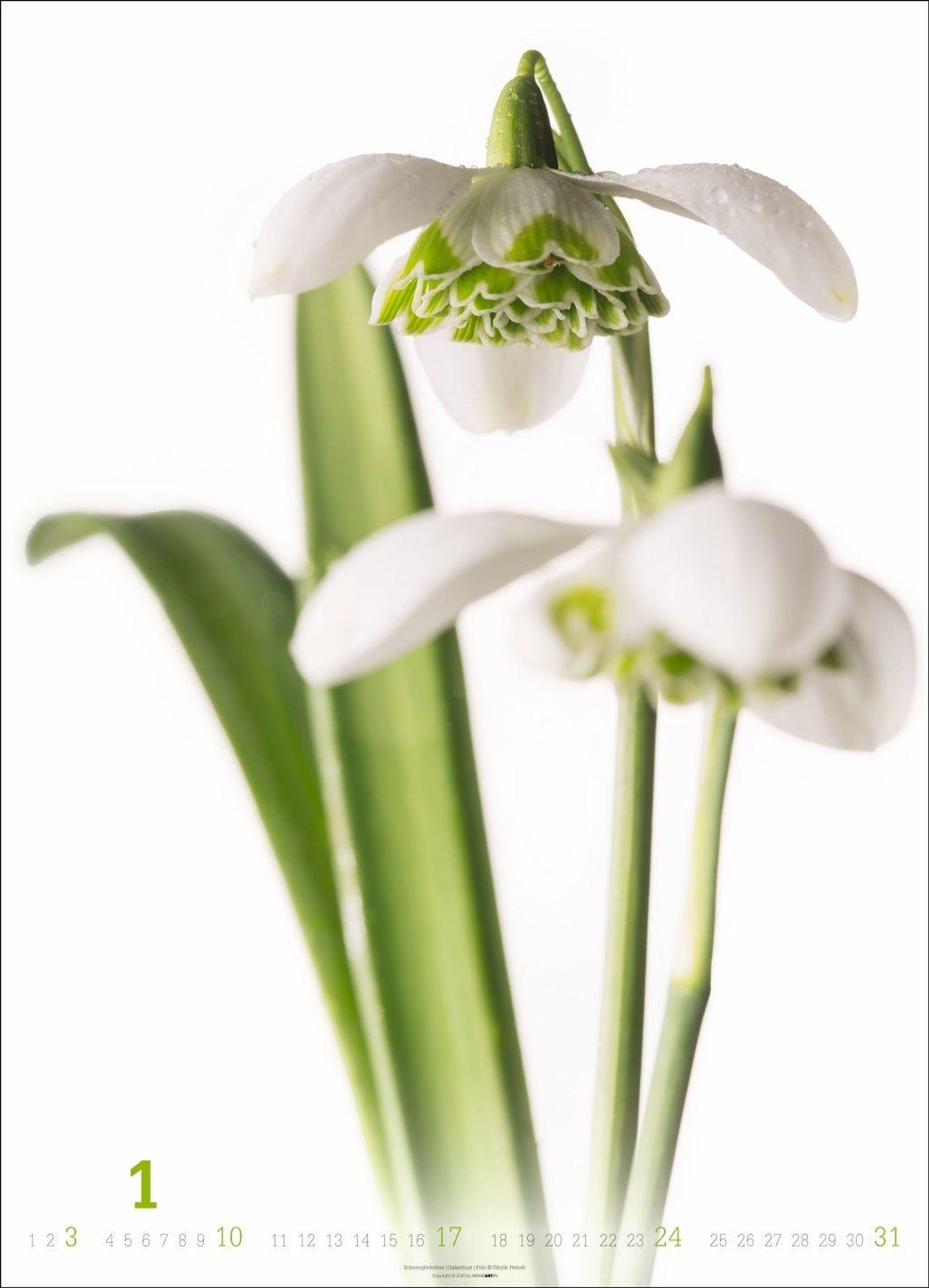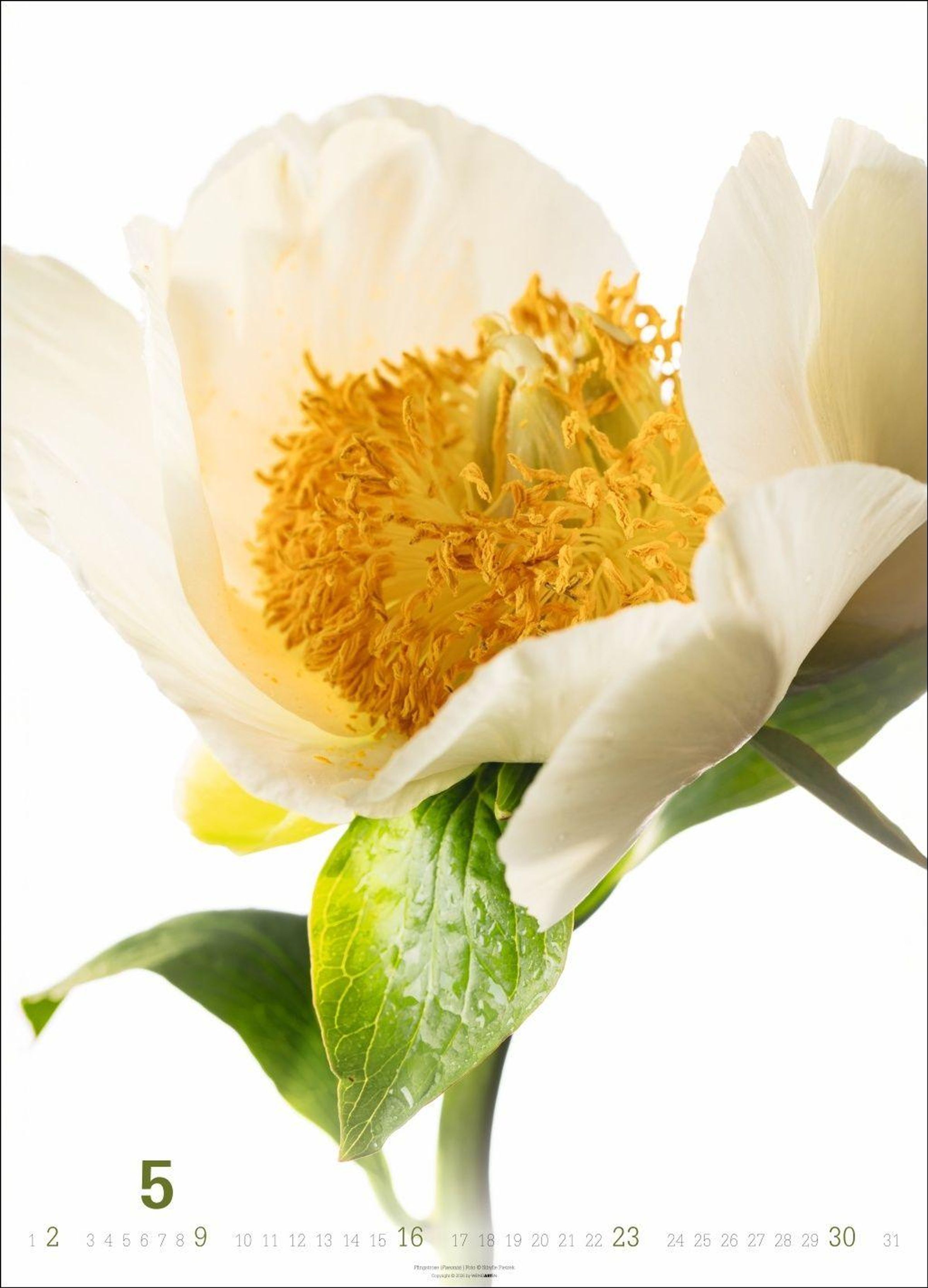 "Sibylle Pietrek, BLÜTEN BILDER, 2027 Flowers." Weiße Blüte mit gelbem Inneren auf hellem Hintergrund., Kalender