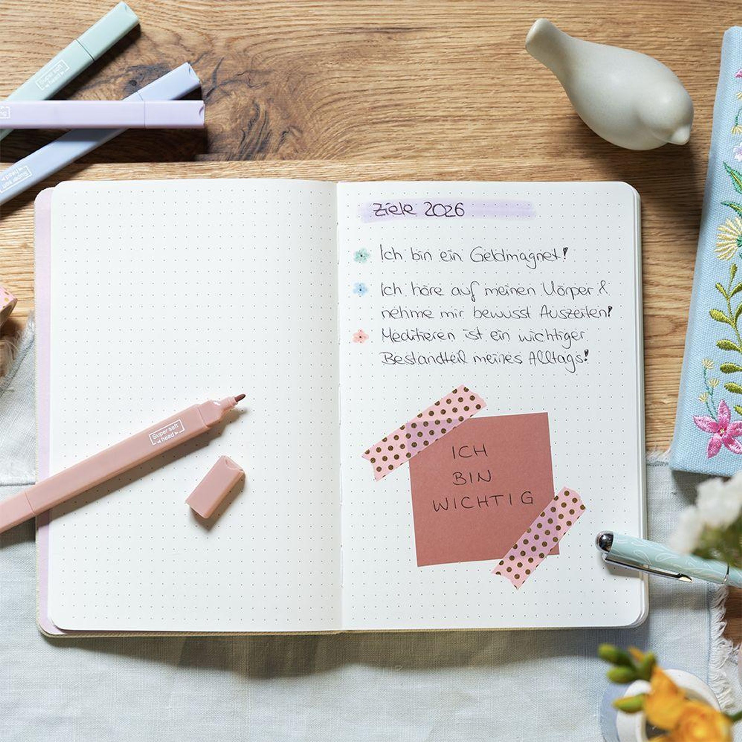 - Toll als Journal oder Tagebuch. Notebook A5 dotted mit hochwertigem Leineneinband und farbenfroher Blumen-Stickerei
