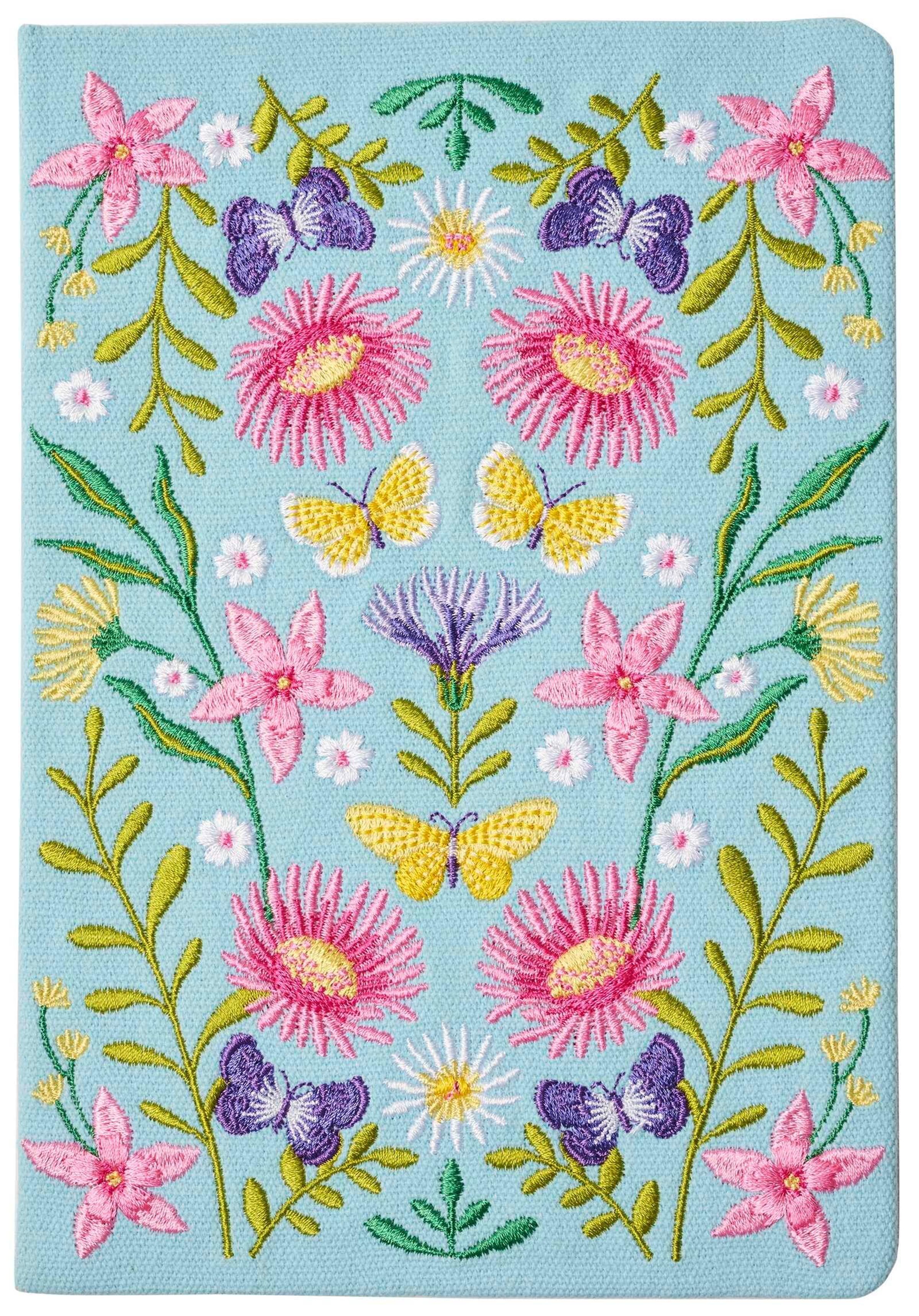 - Dein Journal, Diary oder Tagebuch. DIN A5-Format & punktkariert. Hochwertiger Leineneinband mit farbenfroher Blumen-Stickerei